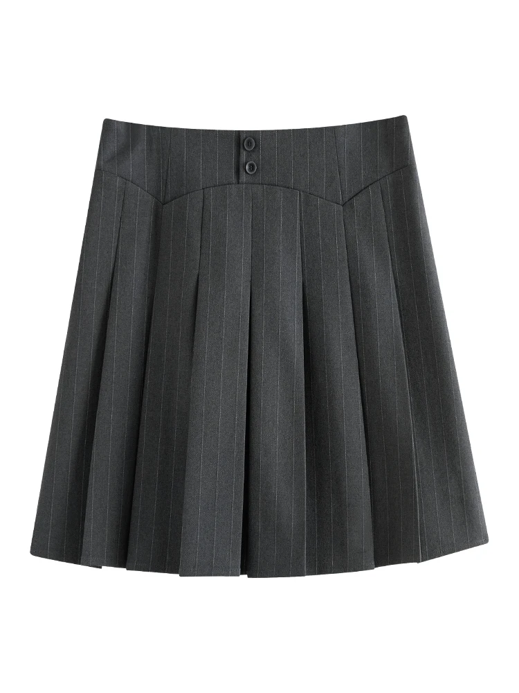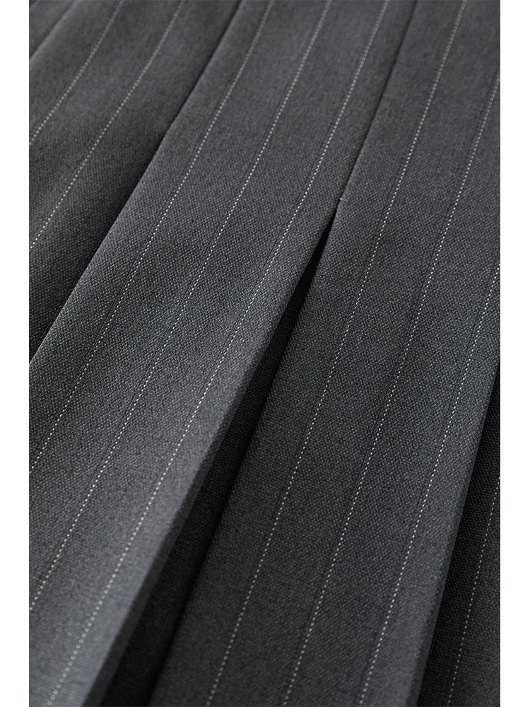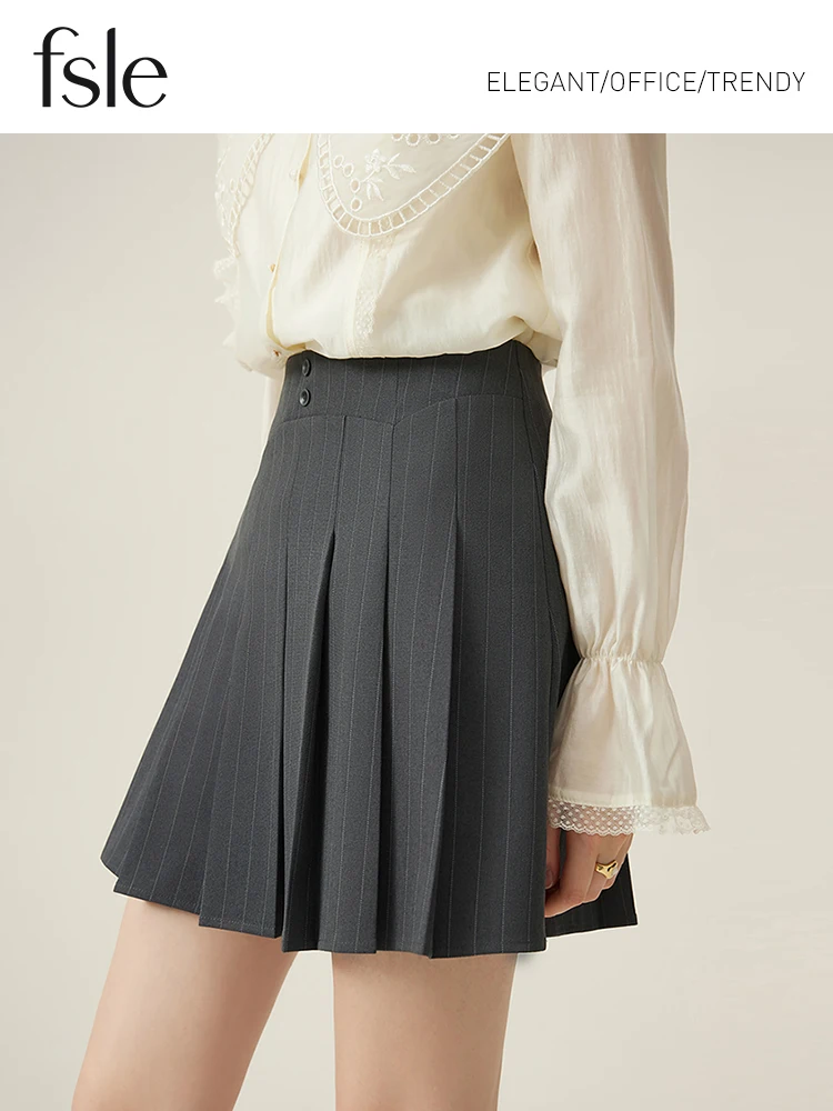 FSLE Age-reducing College Style Grey Pleated Skirt for Women Summer High-waist Design Striped A-line Skirt Female 24FS12081