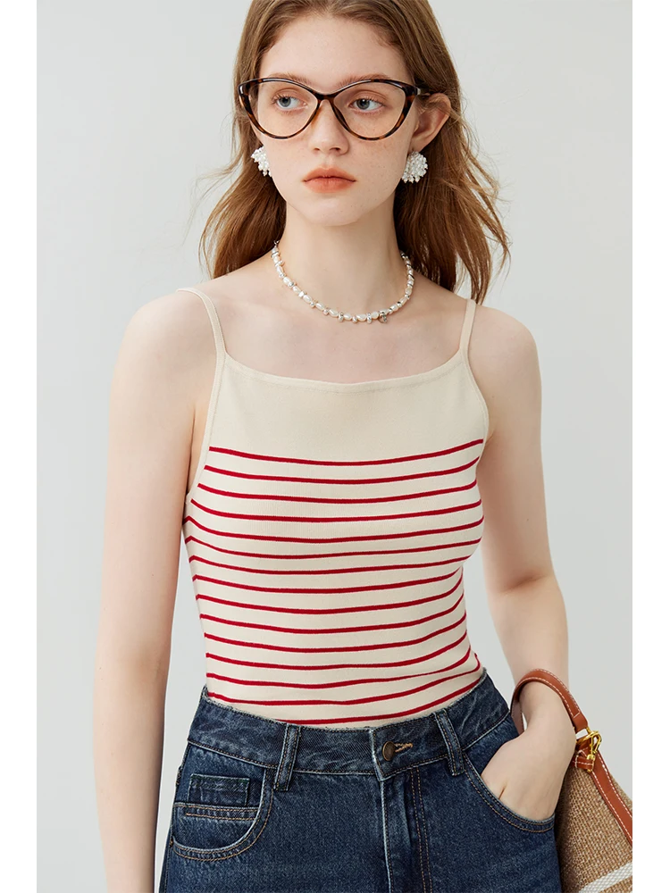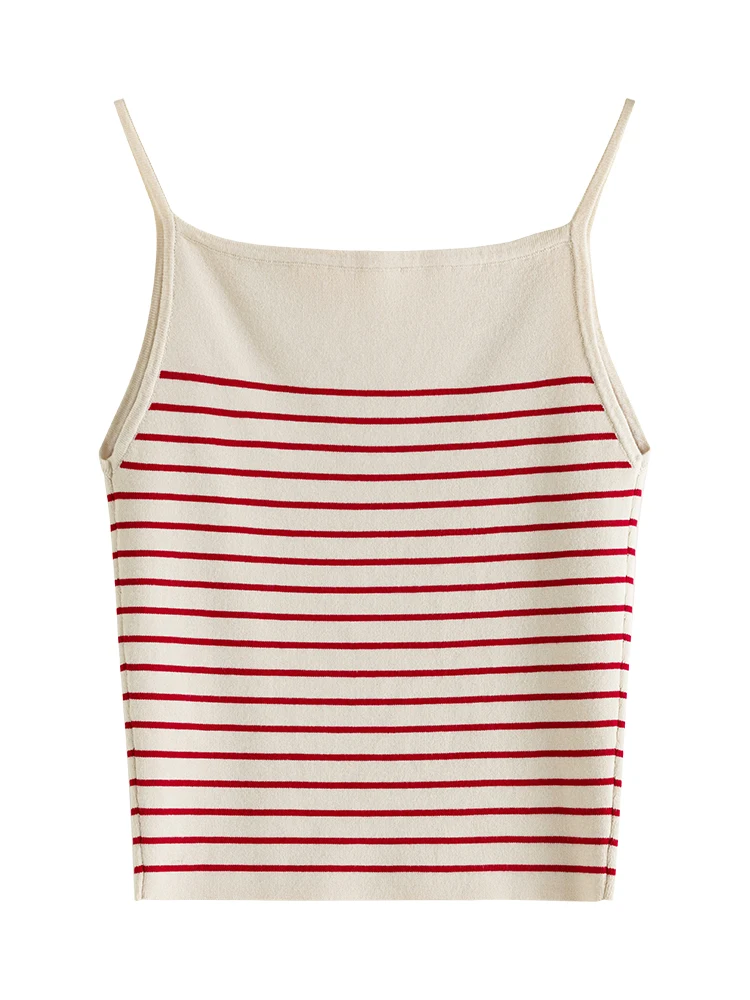 FSLE American Retro Style Striped Camisole for Women 2023 New Autumn Short Slim Casual Sleeveless Knitted Top Tank Female