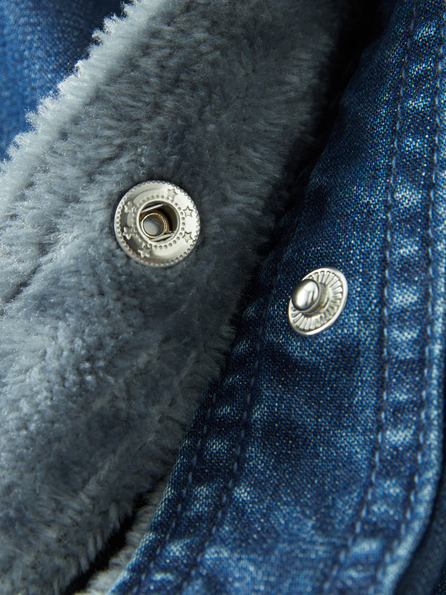 FSLE Cotton Padded Thickened Denim Blue Shirt For Female Fall Winter 2024 New Design Commuter Loose Blouse Cardigan 24FS14296