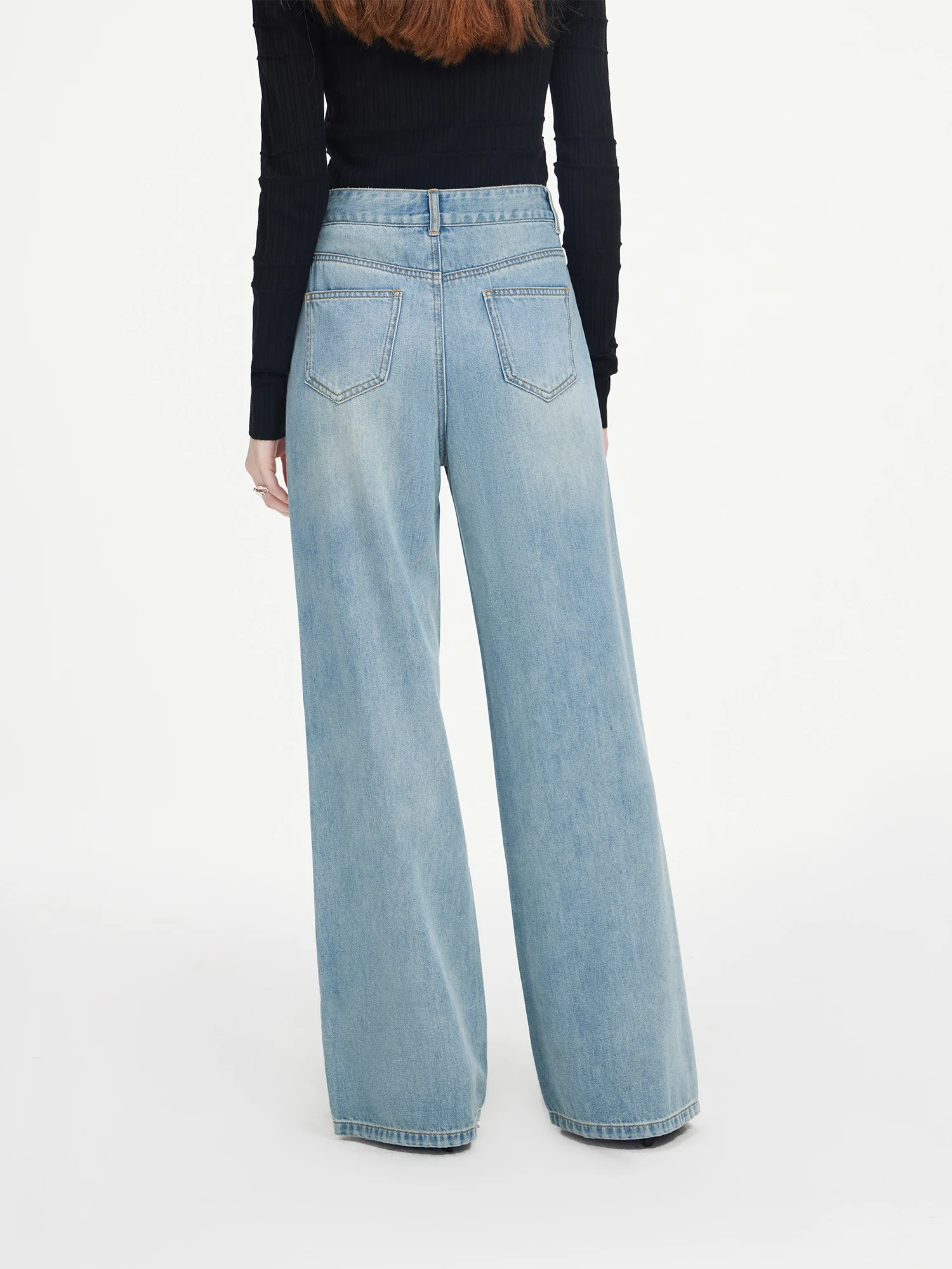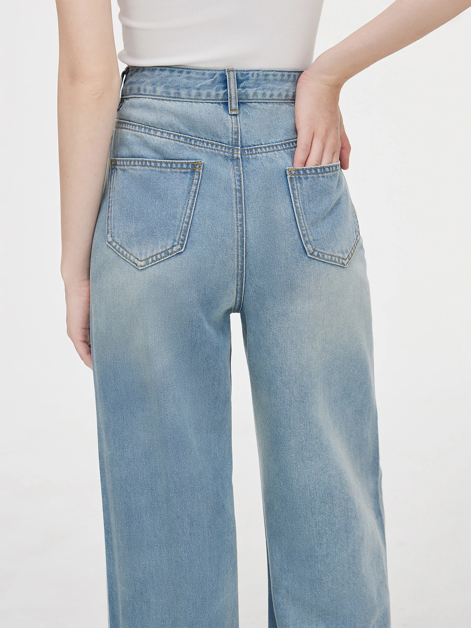FSLE Diamond Tencel Straight Jeans Women Autumn 2024 New All-match Casual Chunse Loose Solid Wide-leg Pants 24FS13021 24FS13022
