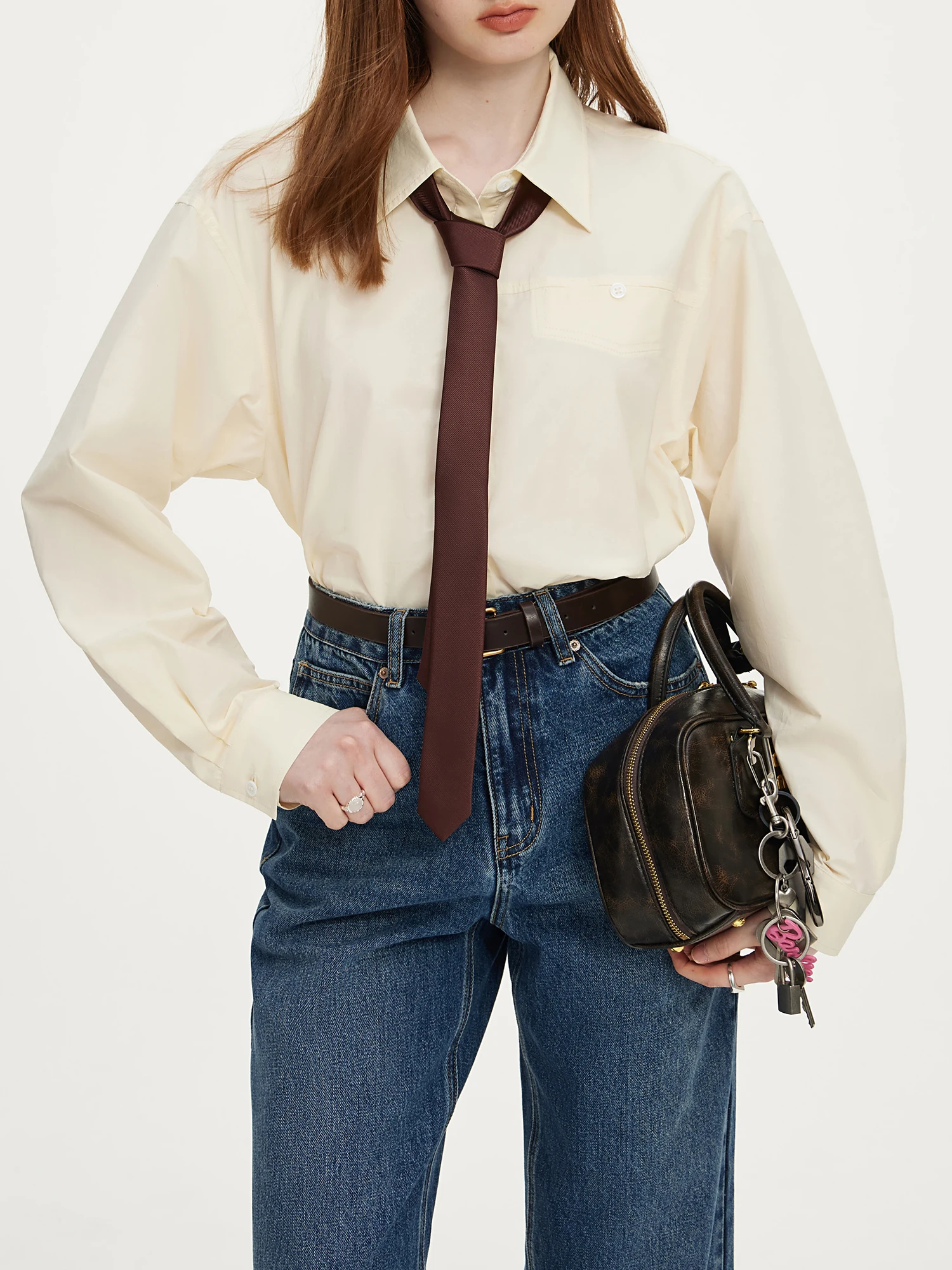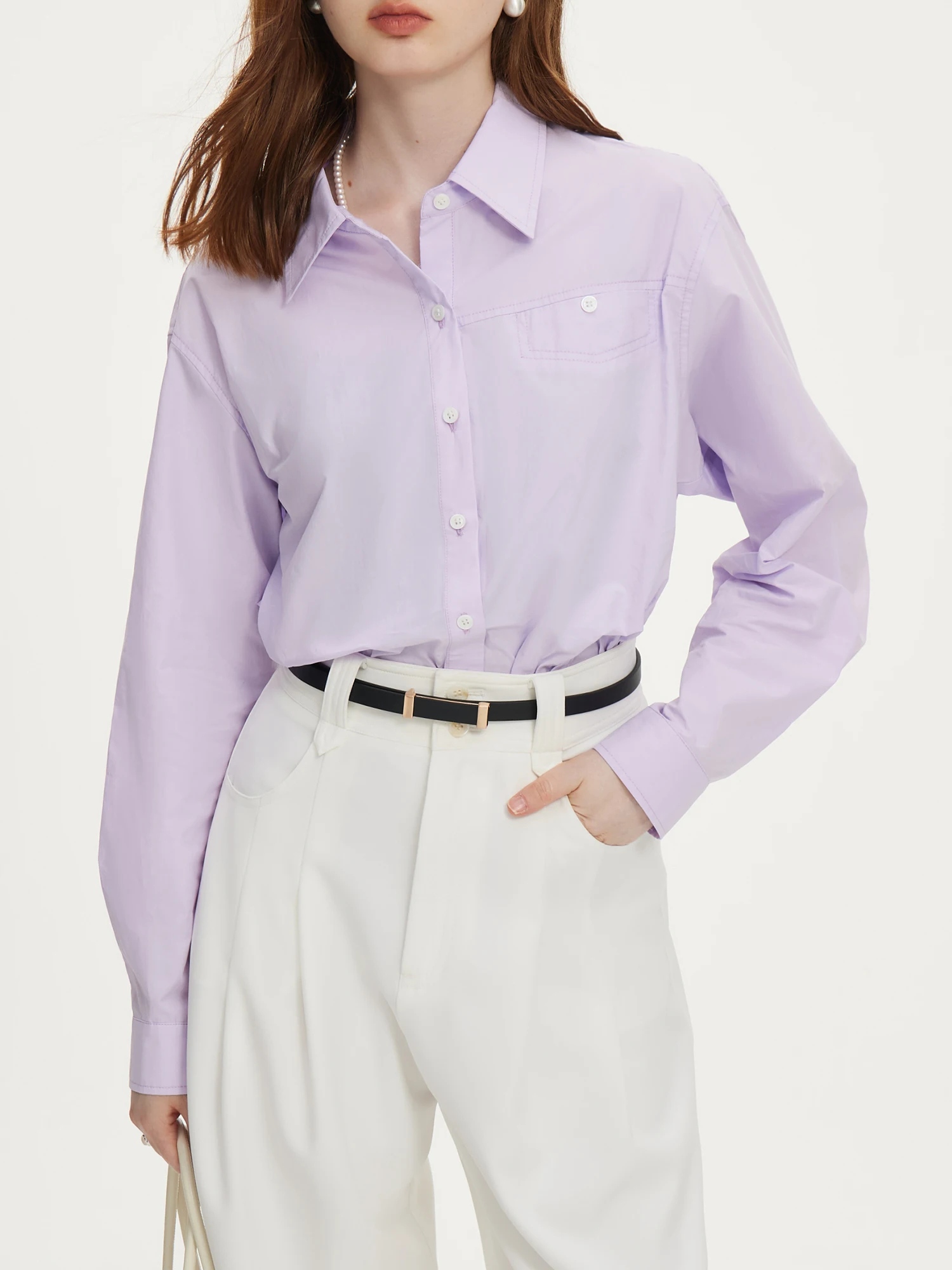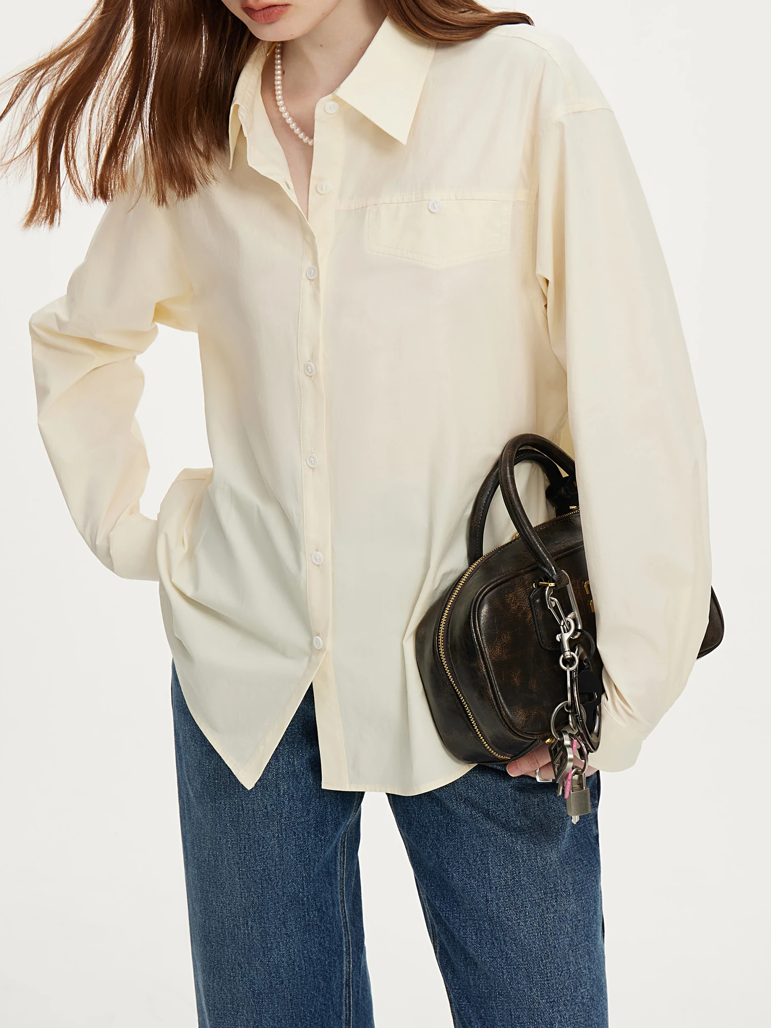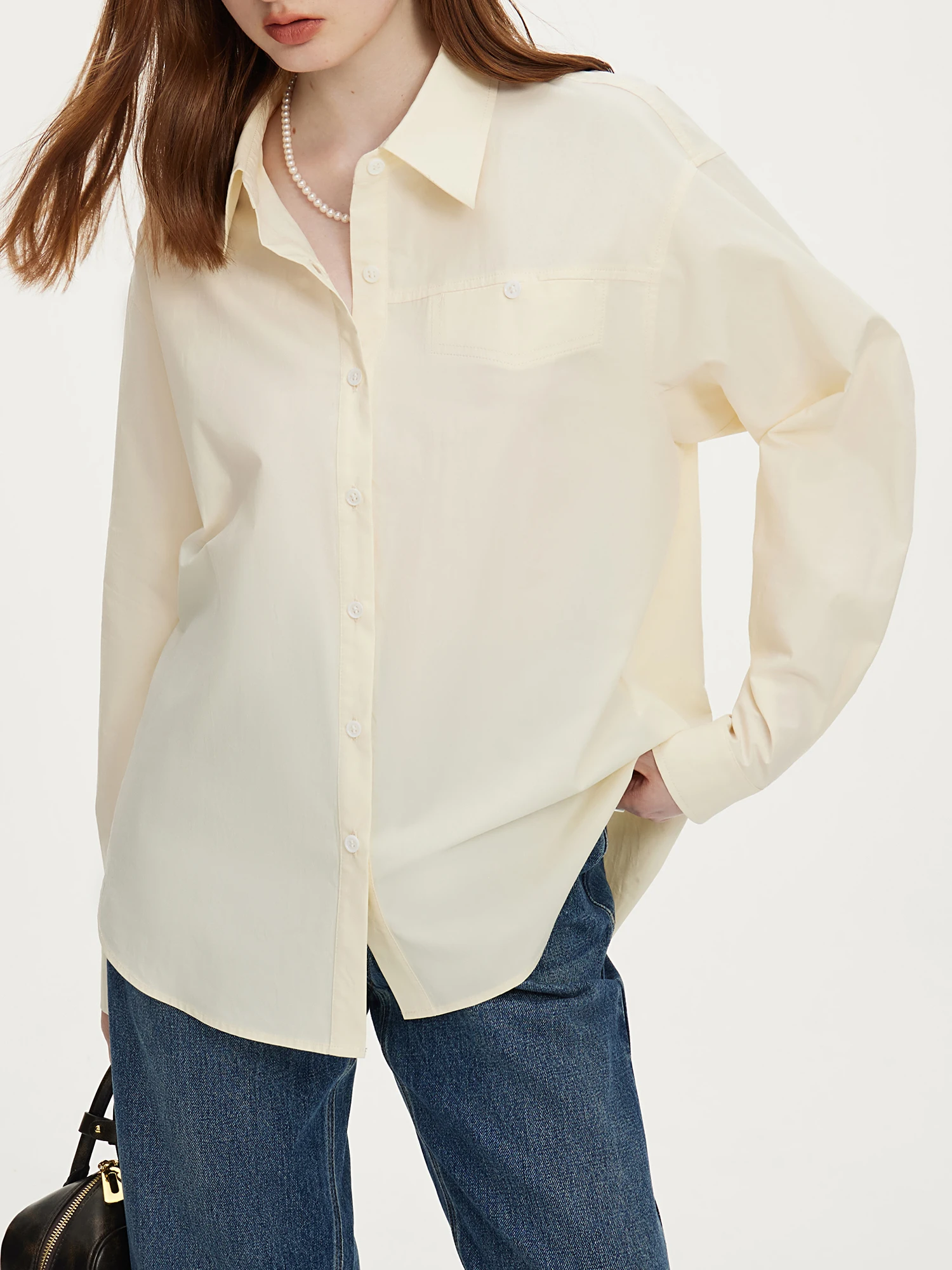 FSLE French Pure Cotton Long Sleeved Shirt for Women's Autumn 2024 New Loose Women Top Casual Loose Women Tops 24FS13094