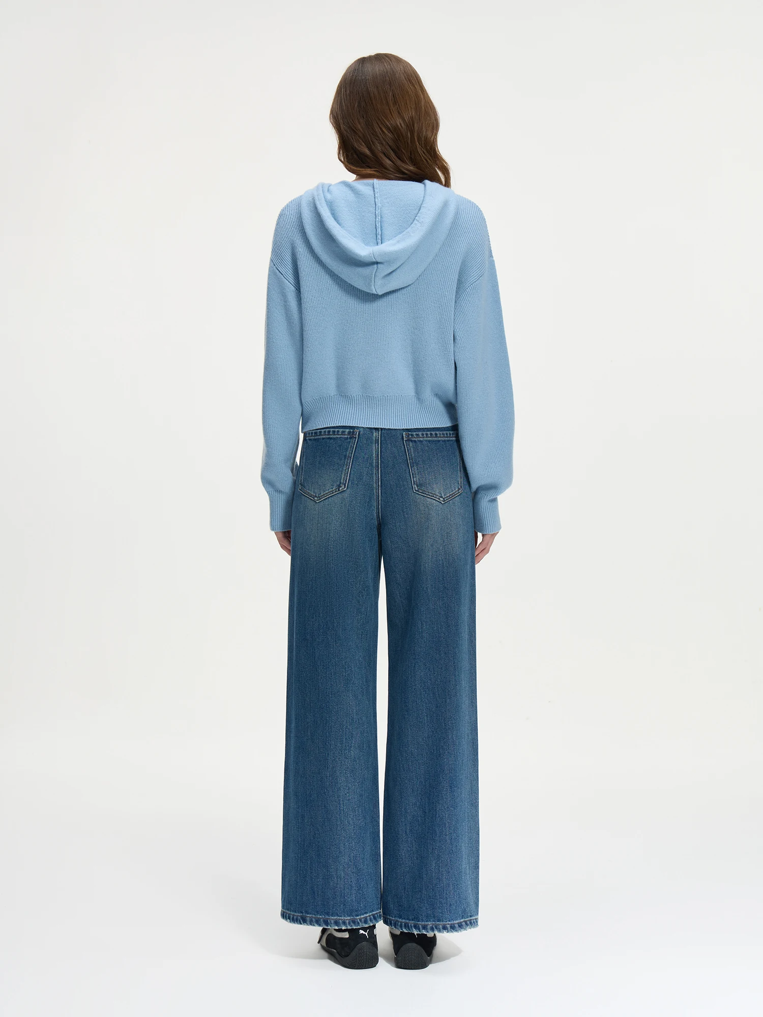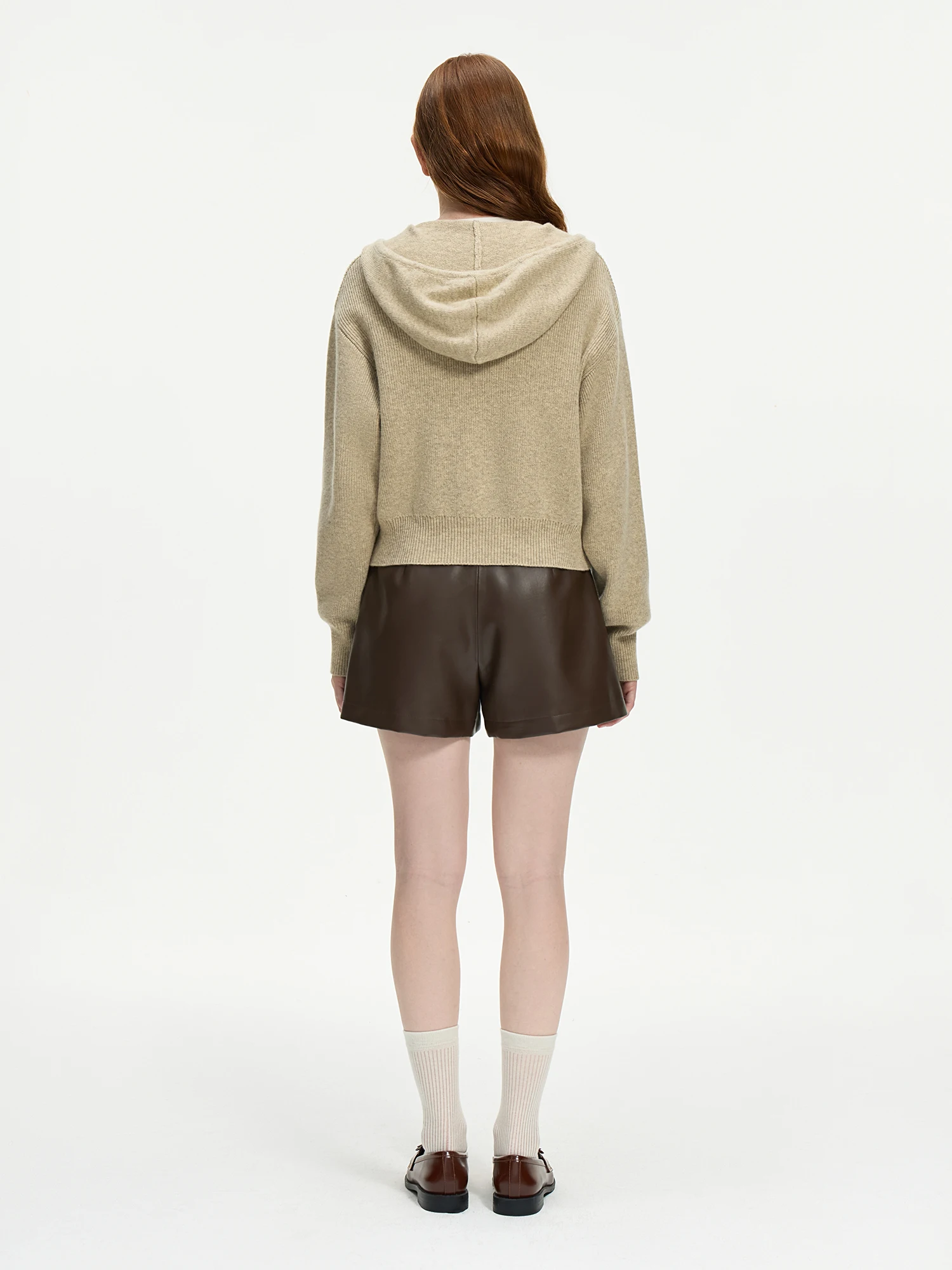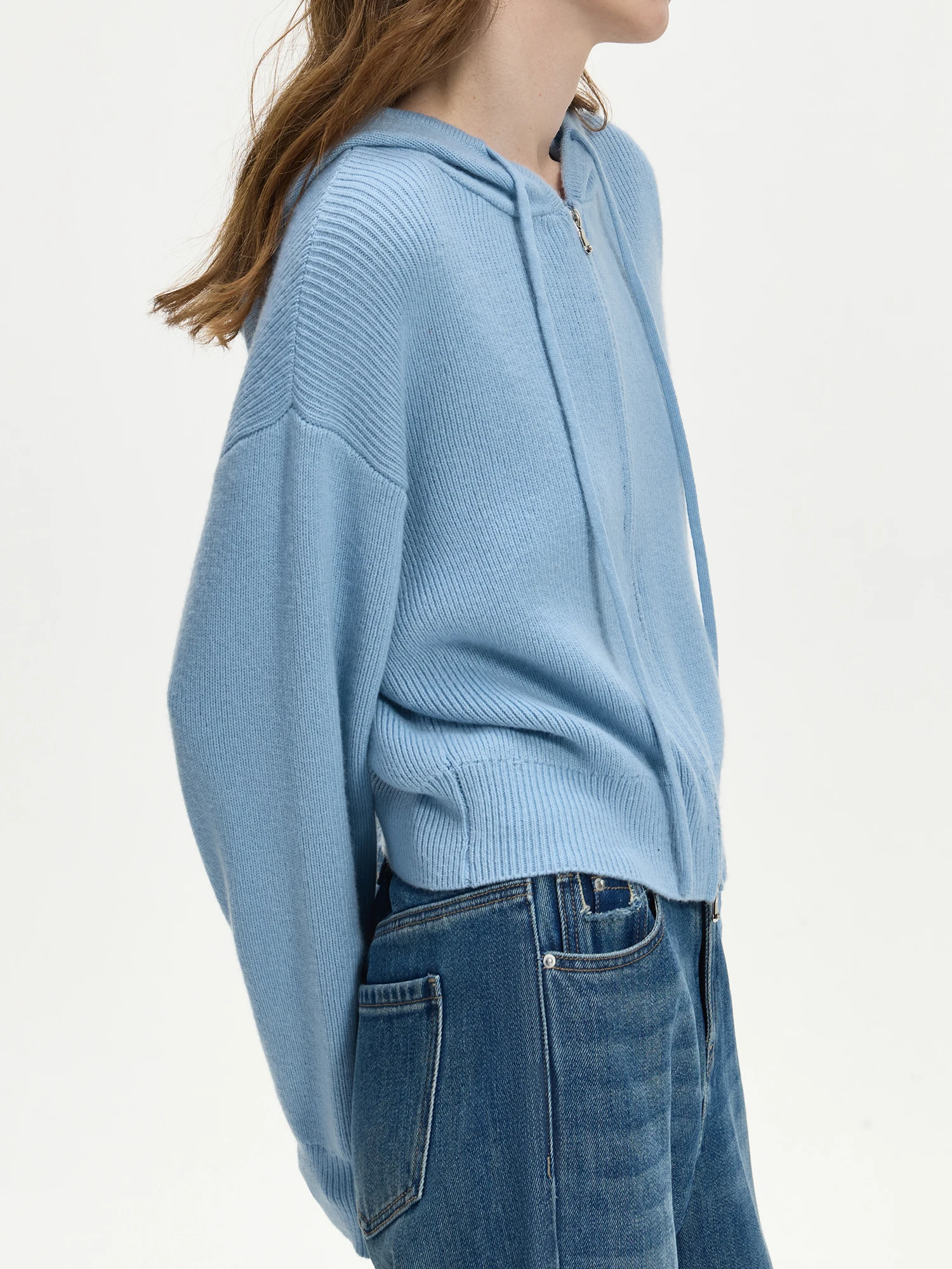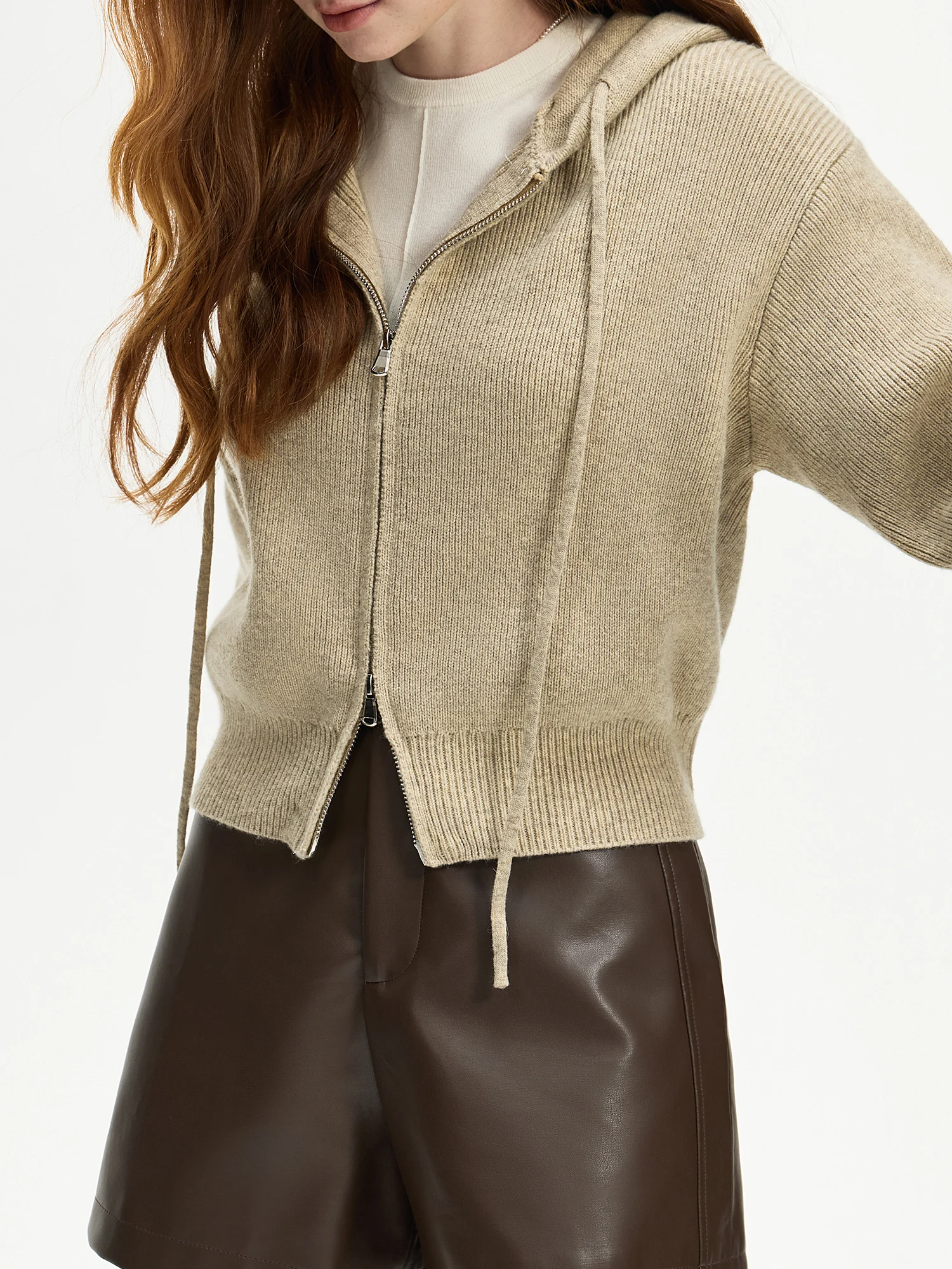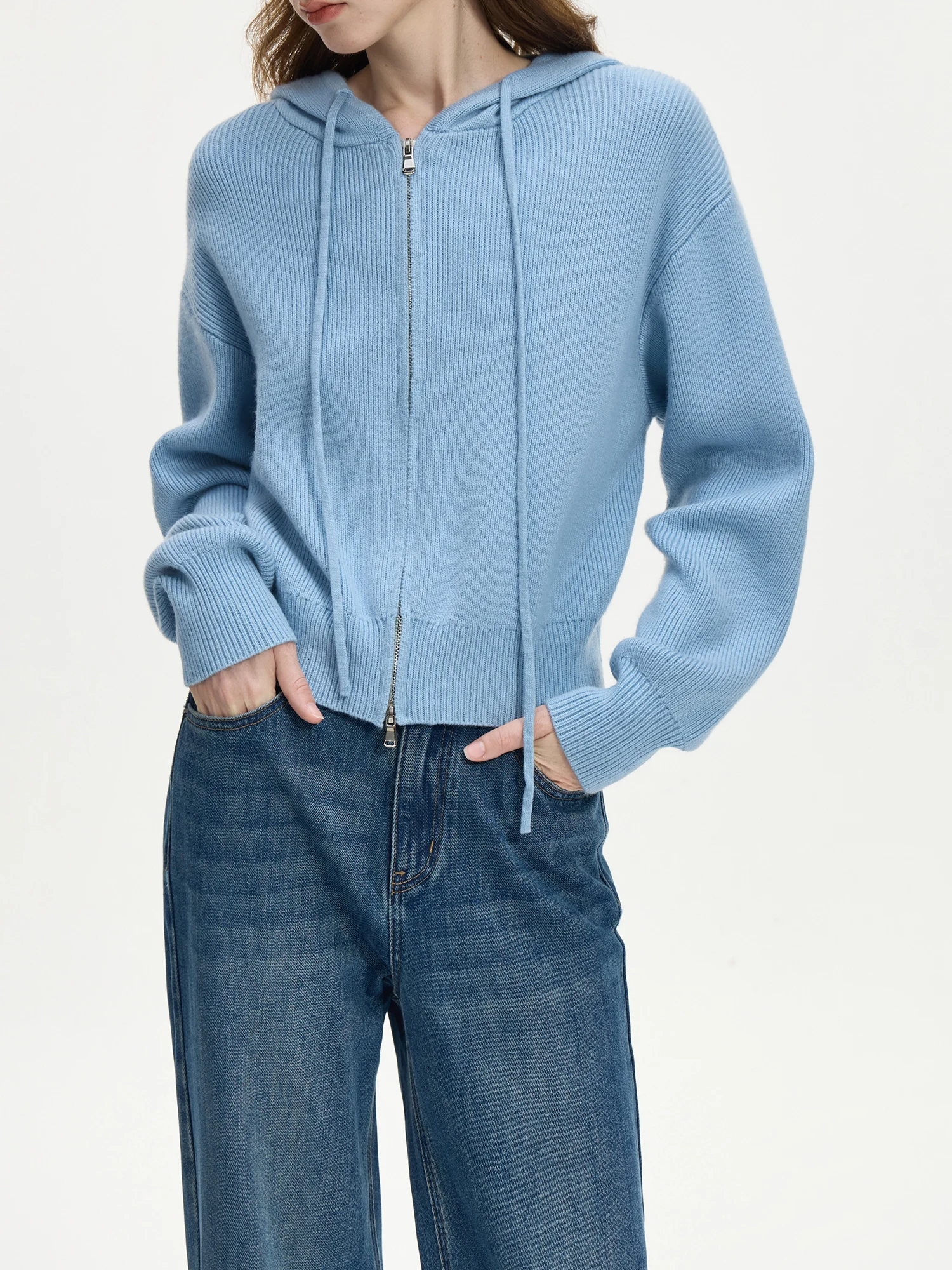 FSLE Office Lady Casual Knitted Hooded Cardigan Jacket for Women 2024 Autumn/Winter New Style Double Headed Zipper Loose