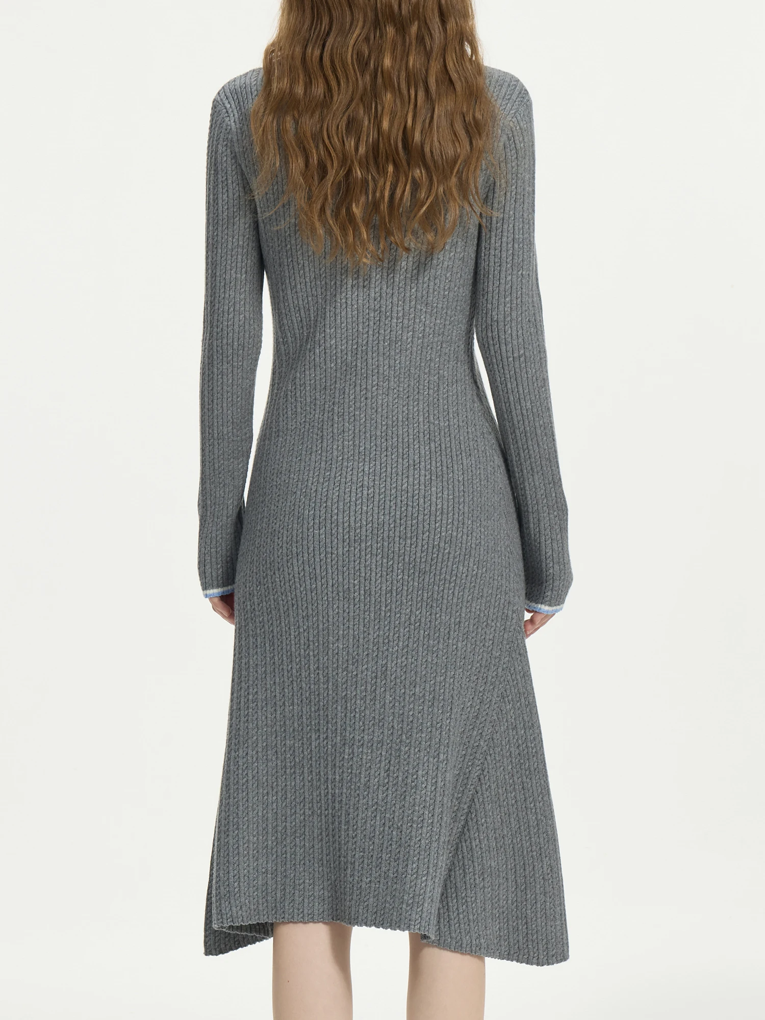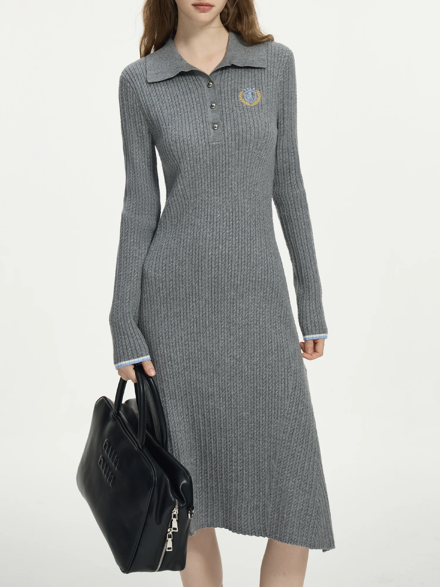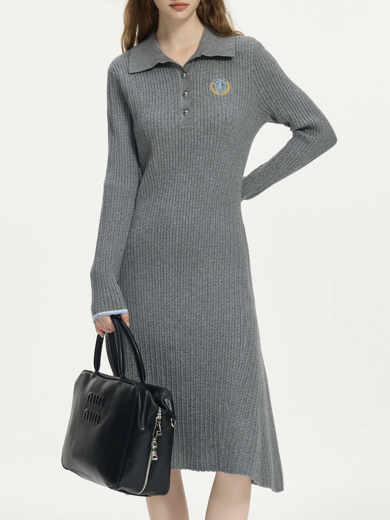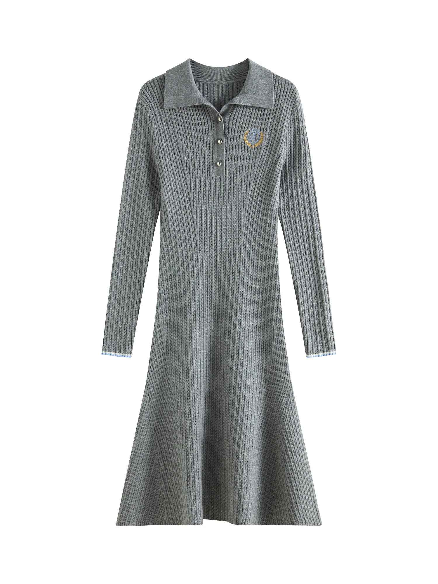 FSLE Office Lady College Style Embroidered Lapel Slim Fit Solid Color Knitted Dress 2024 Winter New Style Interior 24FS14353