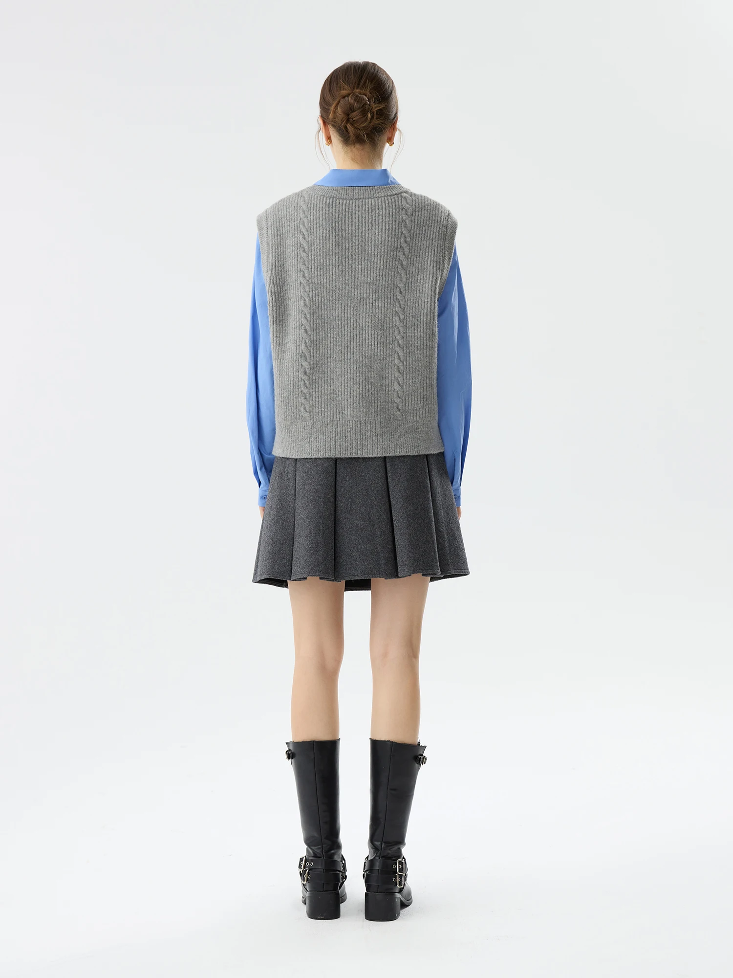 FSLE Office Lady Commuter Versatile Grey Round Neck Twisted Flower Casual Vest Women's Autumn/Winter 2024 New 24FS14579