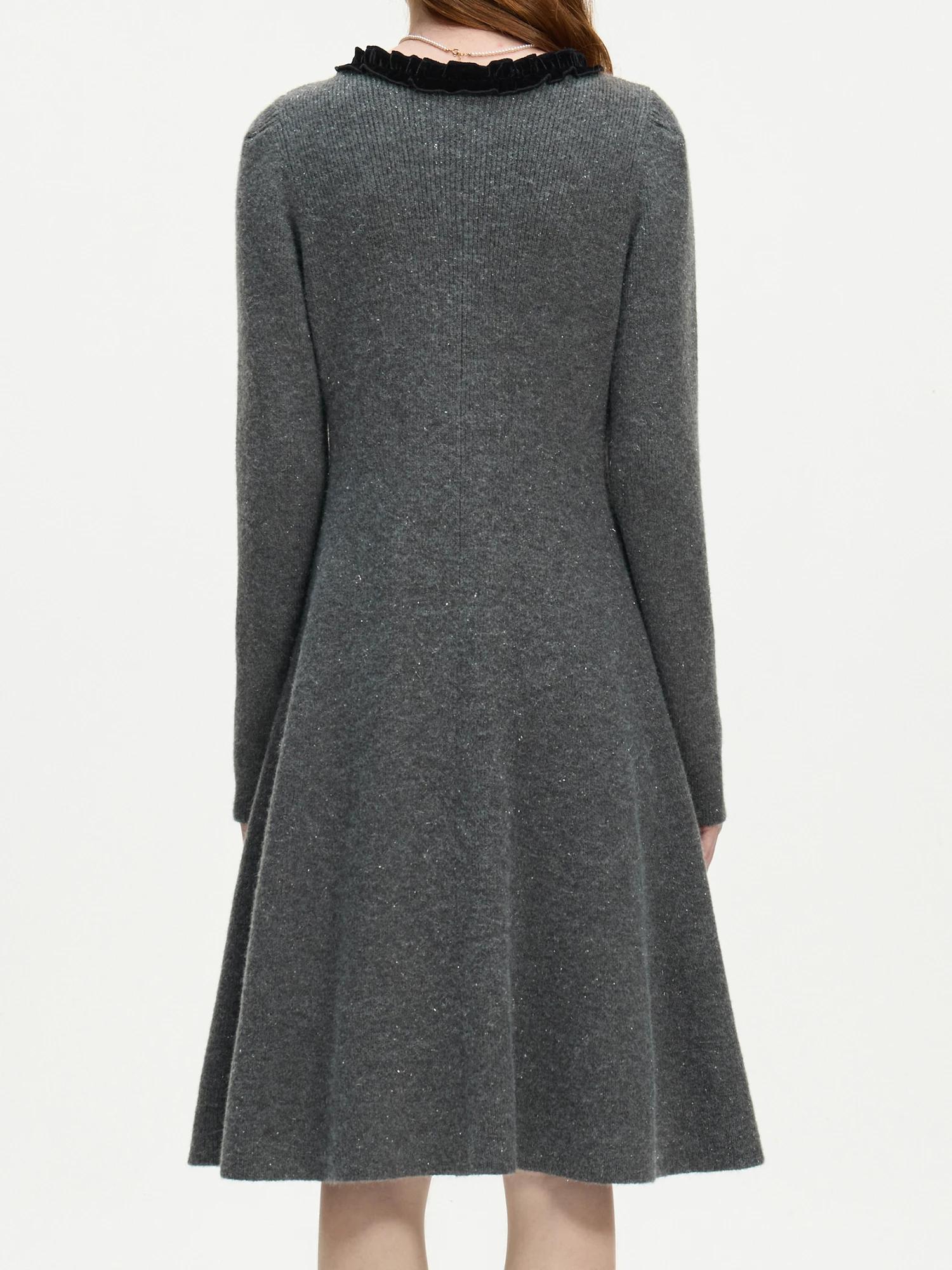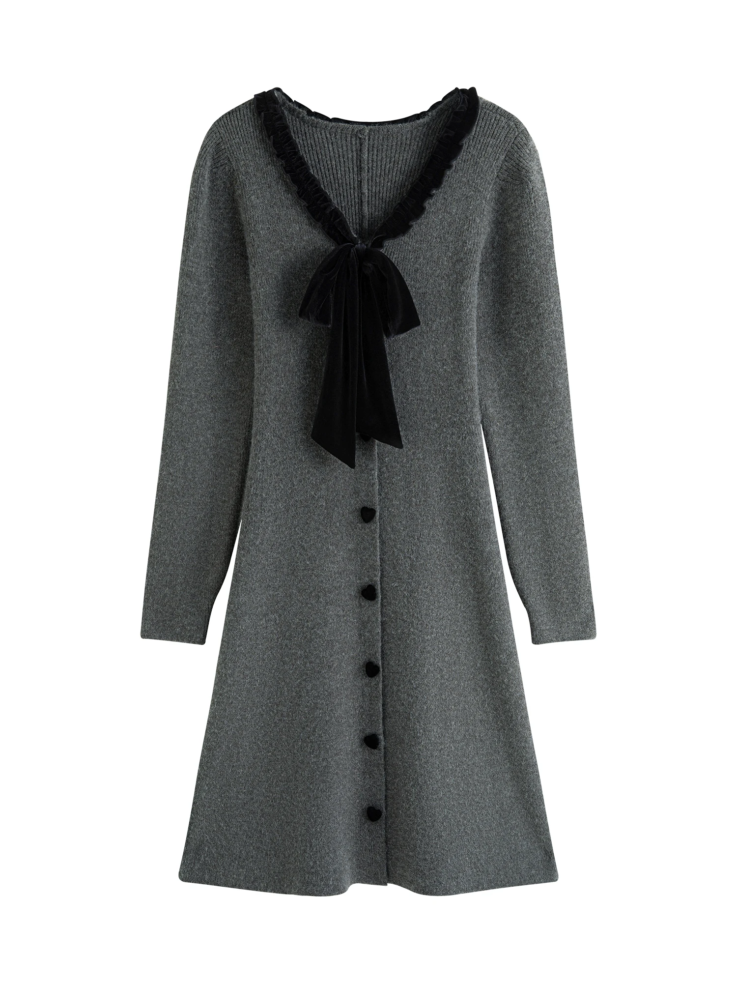 FSLE Office Lady French Romantic Knitted Dress for Women 2024 Autumn/Winter New Long Sleeve Interior Dress 24FS14371