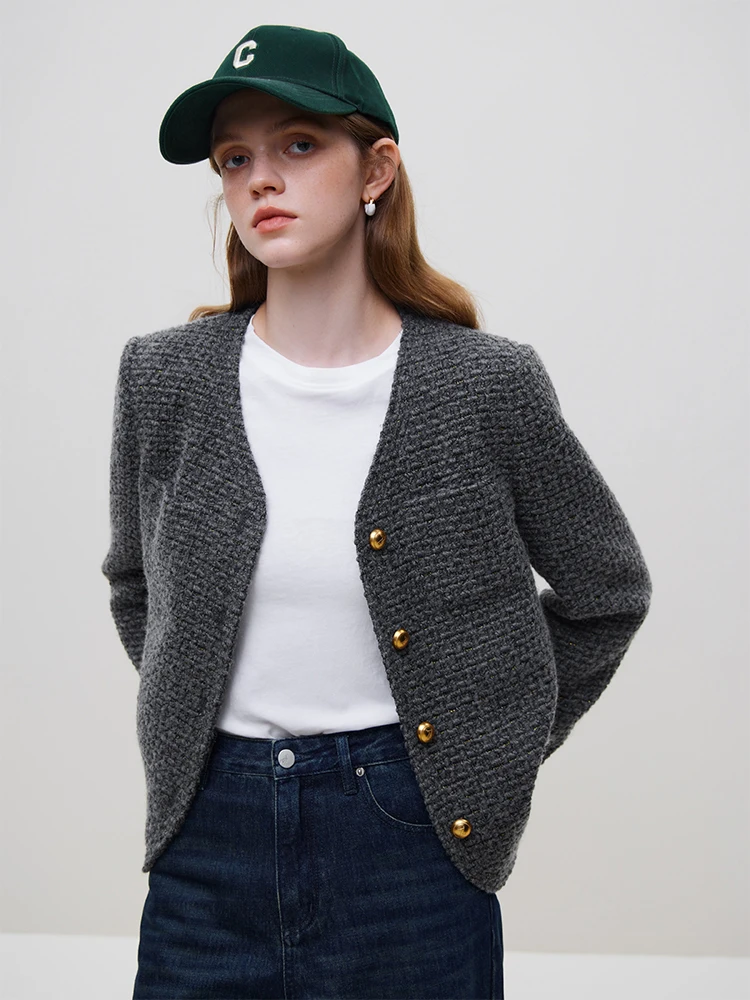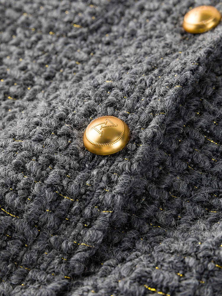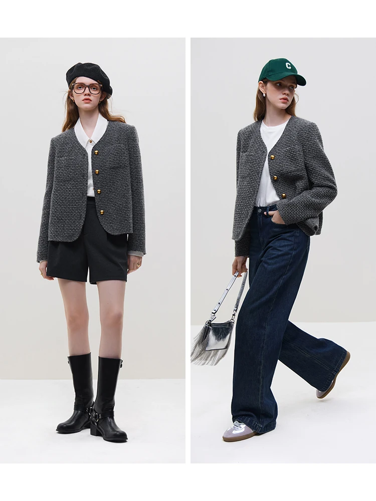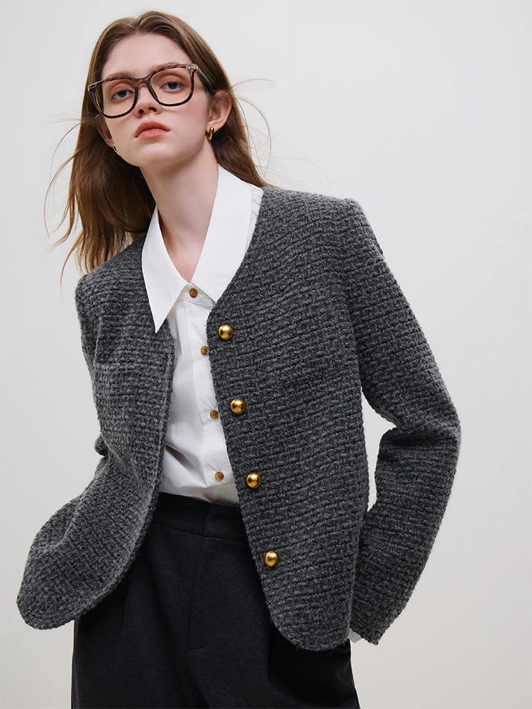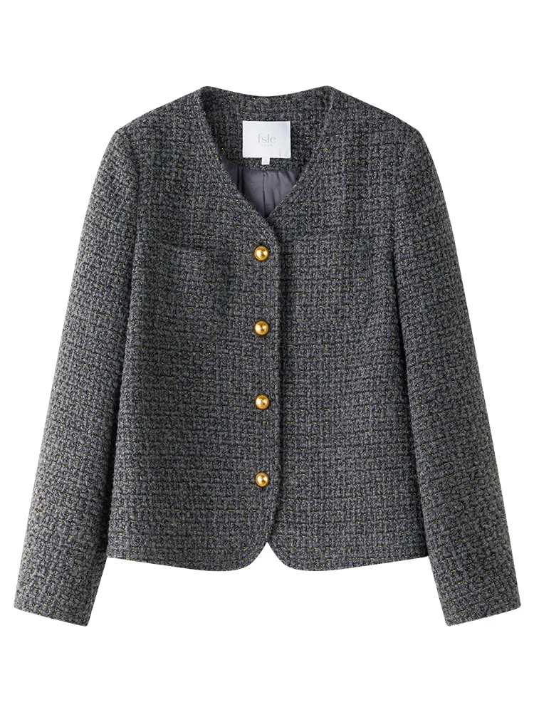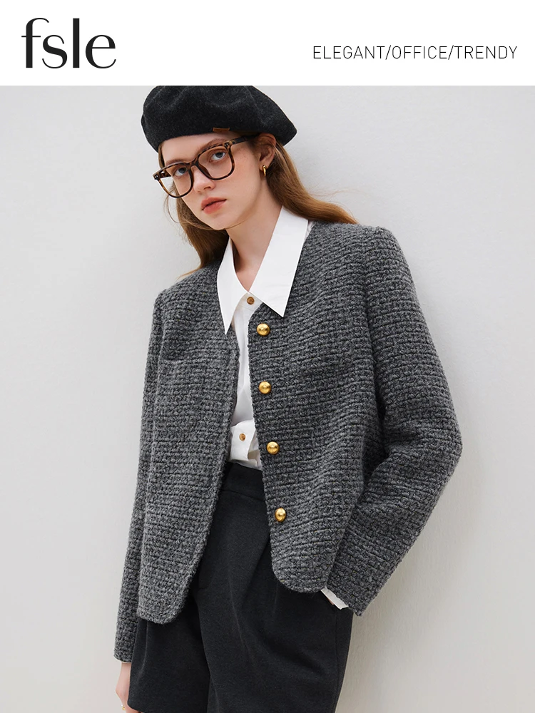 FSLE Office Lady French Style Fragrance Jacket Women's Autumn Winter 2023 New Wool Tweed Jacket For Women Grey Casual Coats