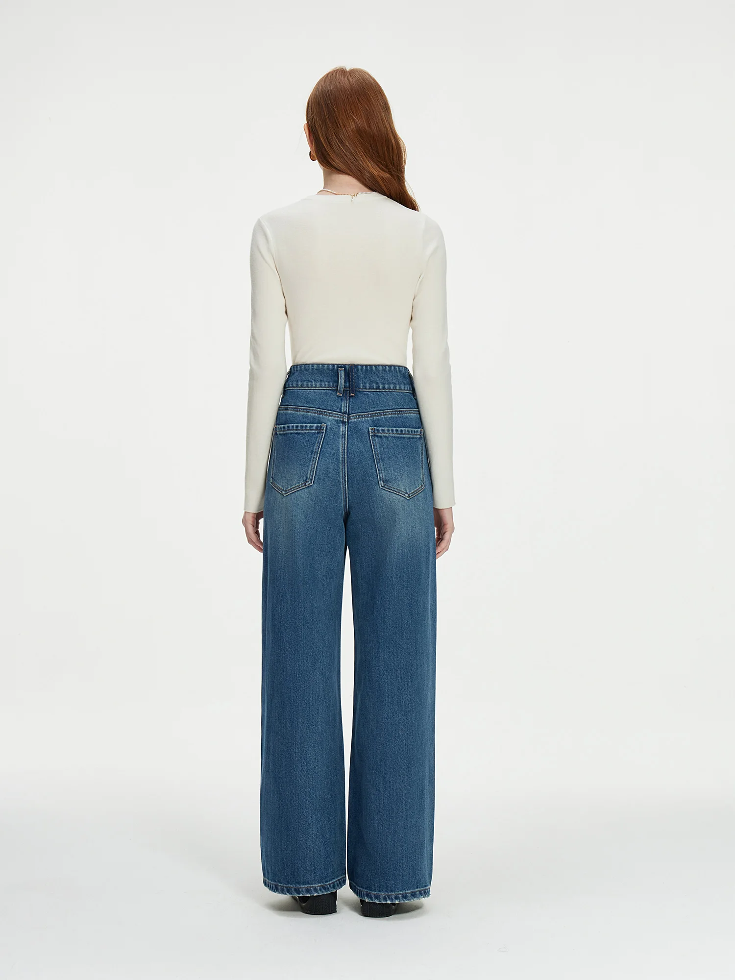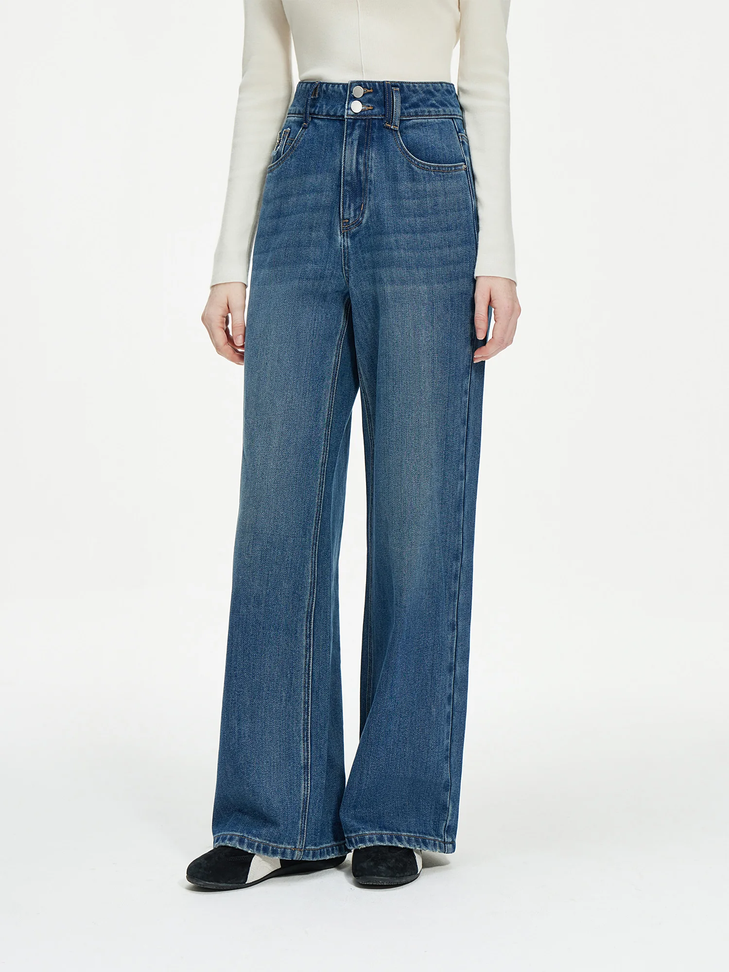 FSLE Office Lady Retro High Waisted Straight Leg Wide Leg Jeans for Women 2024 New Casual Slimming Versatile 24FS14300