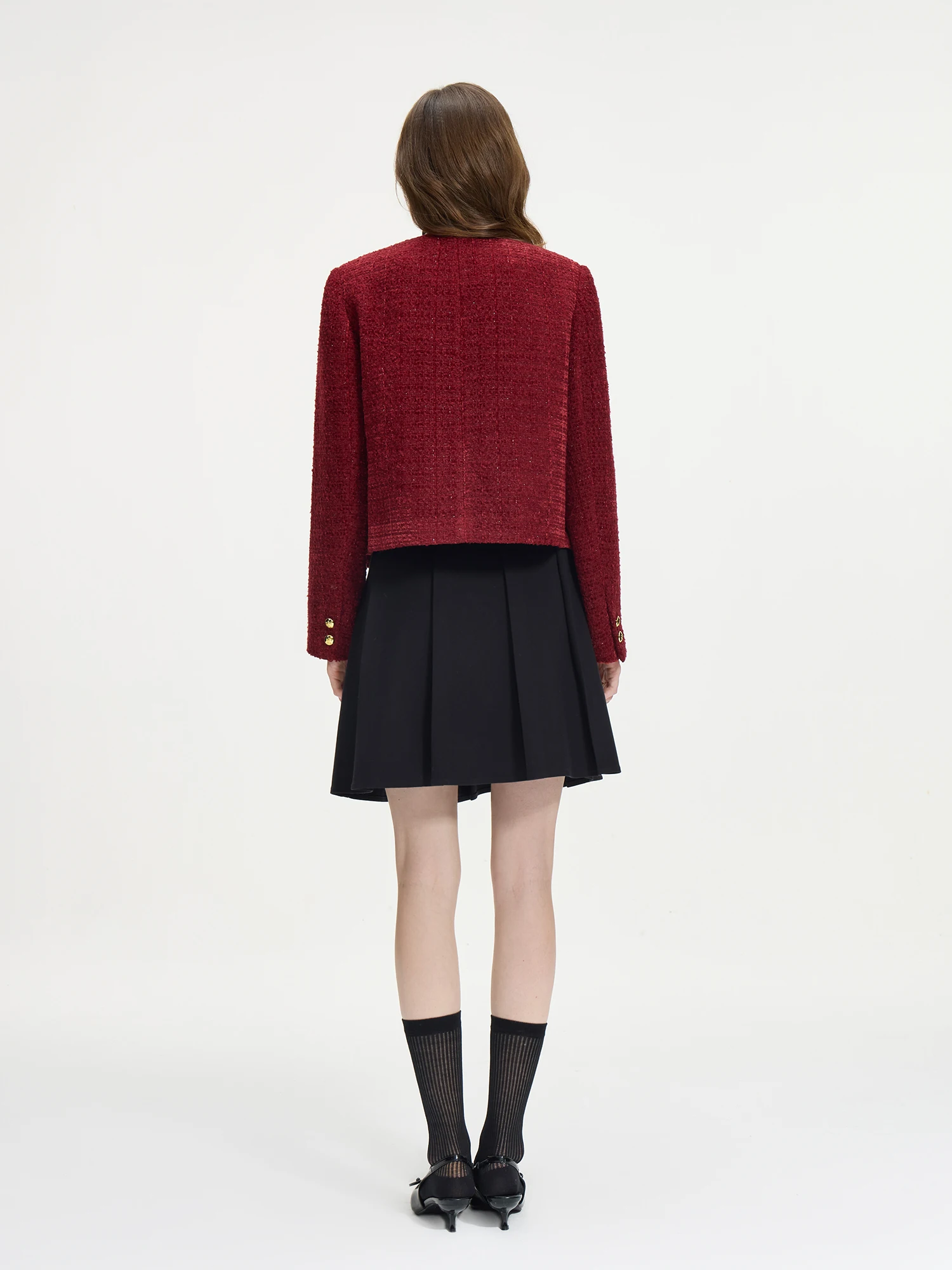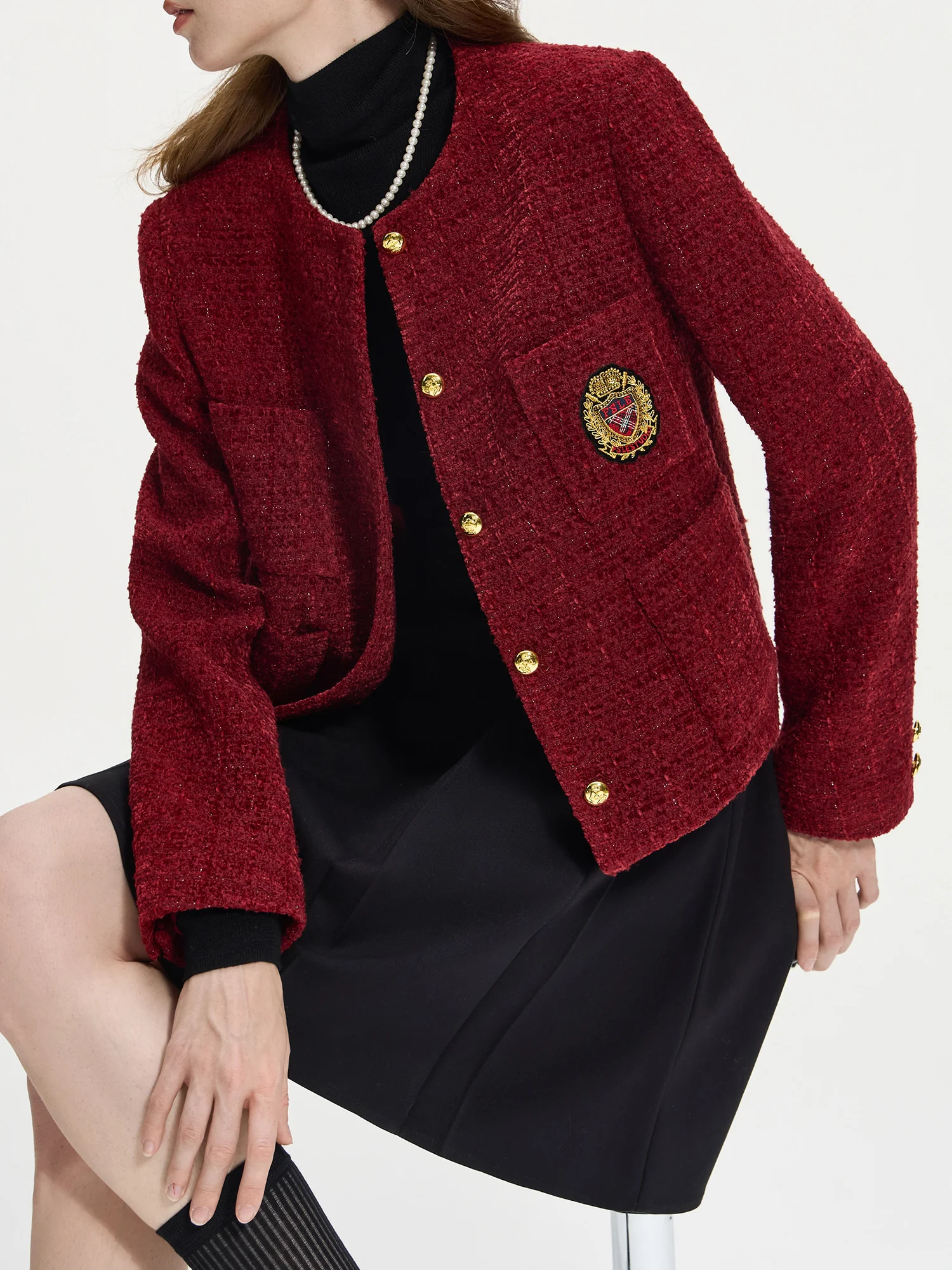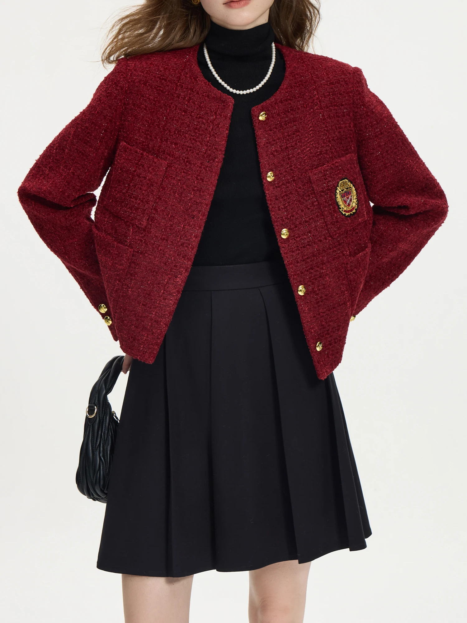 FSLE Office Lady Wool Academy Short Coat 2024 Winter New Light Commuter Embroidered Coat Casual Loose 24FS14263