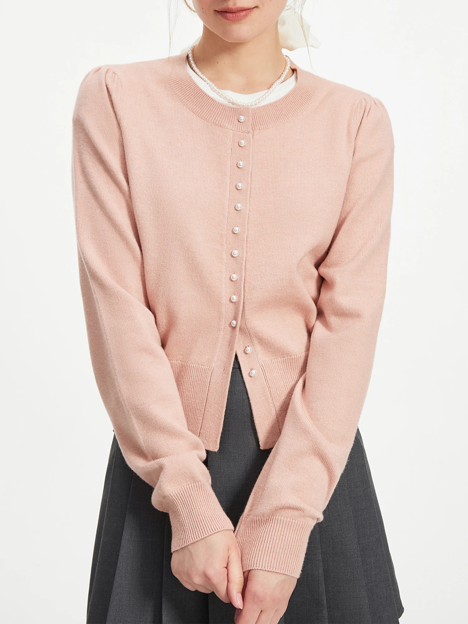 FSLE Pearl Button Elegant Long-sleeved Knitted Sweater Tops For Women 2024 Autumn New Design Round Neck Versatile Top 24FS13123
