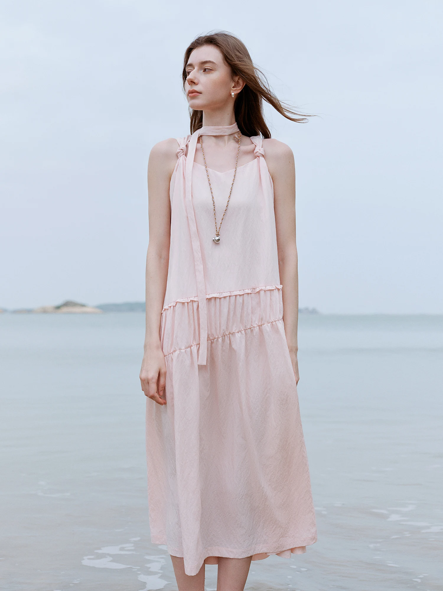 FSLE 【Premium Series】 Twisted Straps Flowing Dress - 2025 Summer New Collection Pink Sweet Dresses