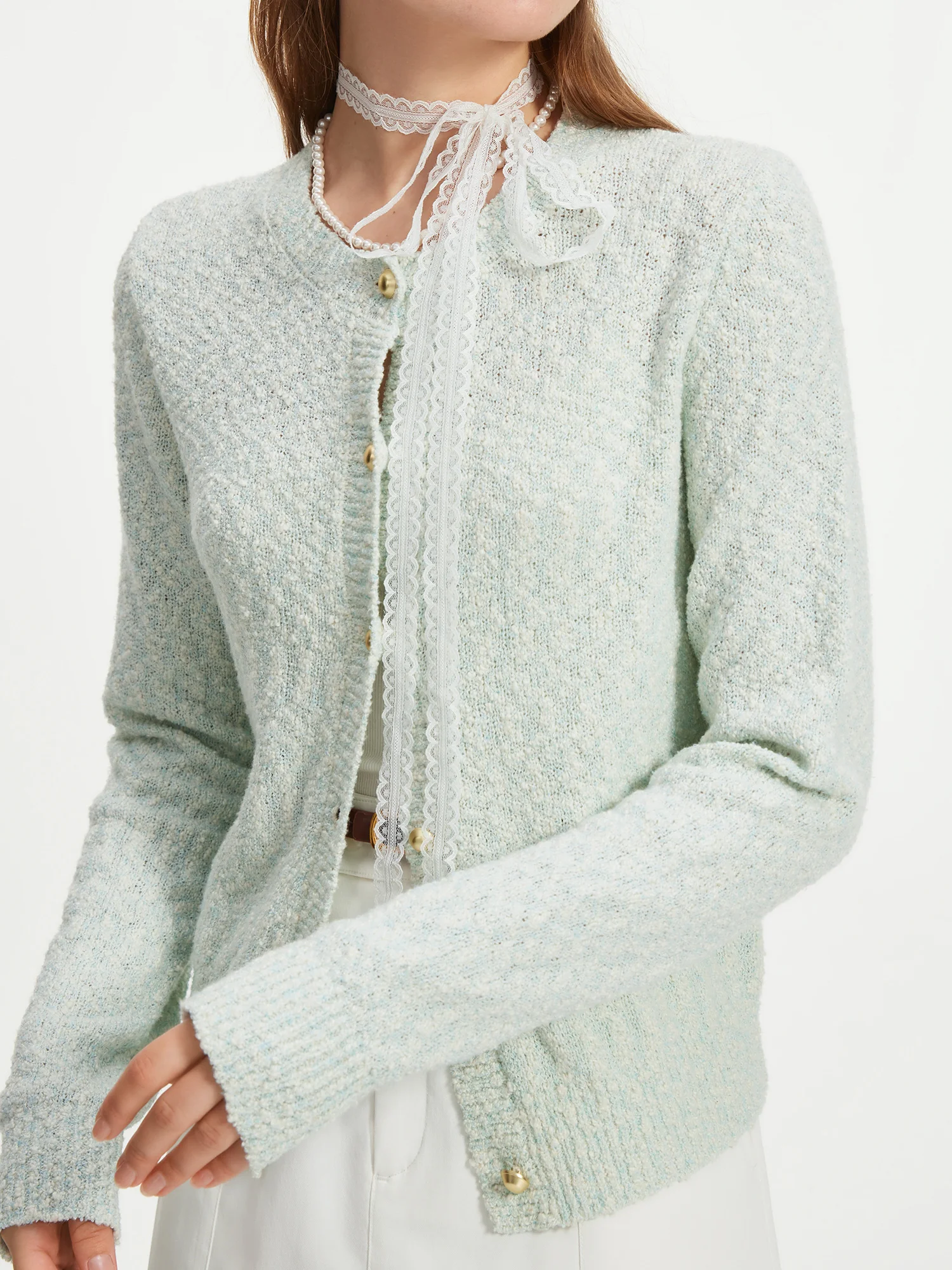 FSLE Round Neck Long Sleeve Knitted Cardigan For Women 2024 Autumn New Design French Style Elegant Floral Yarn Top 24FS13141