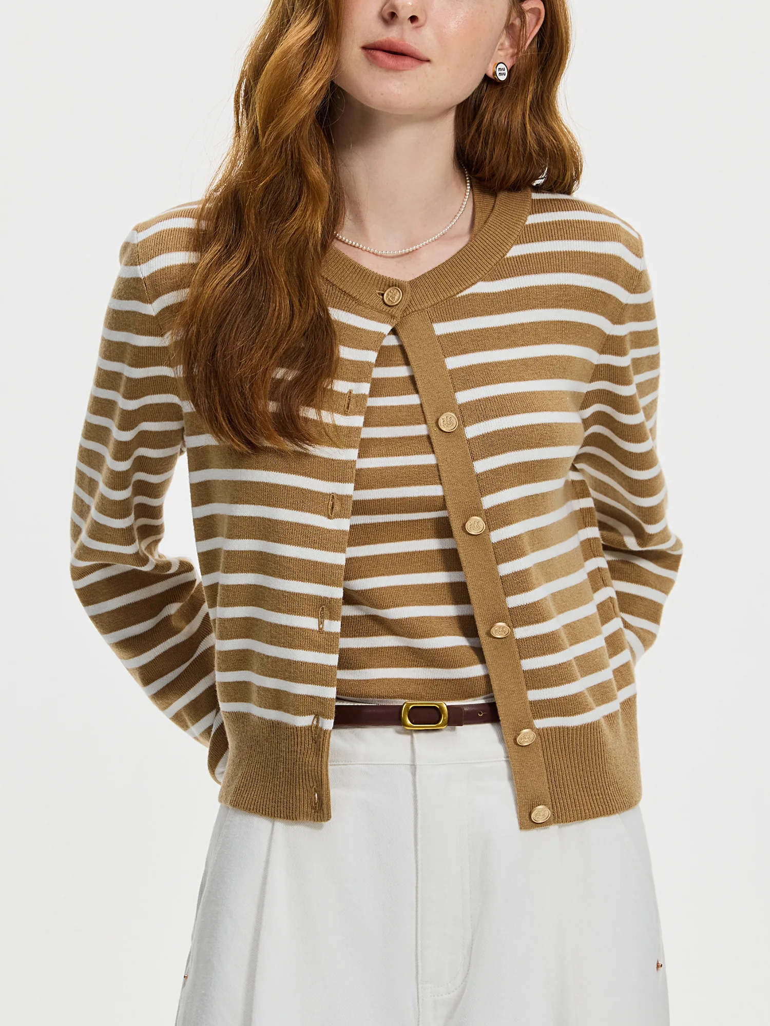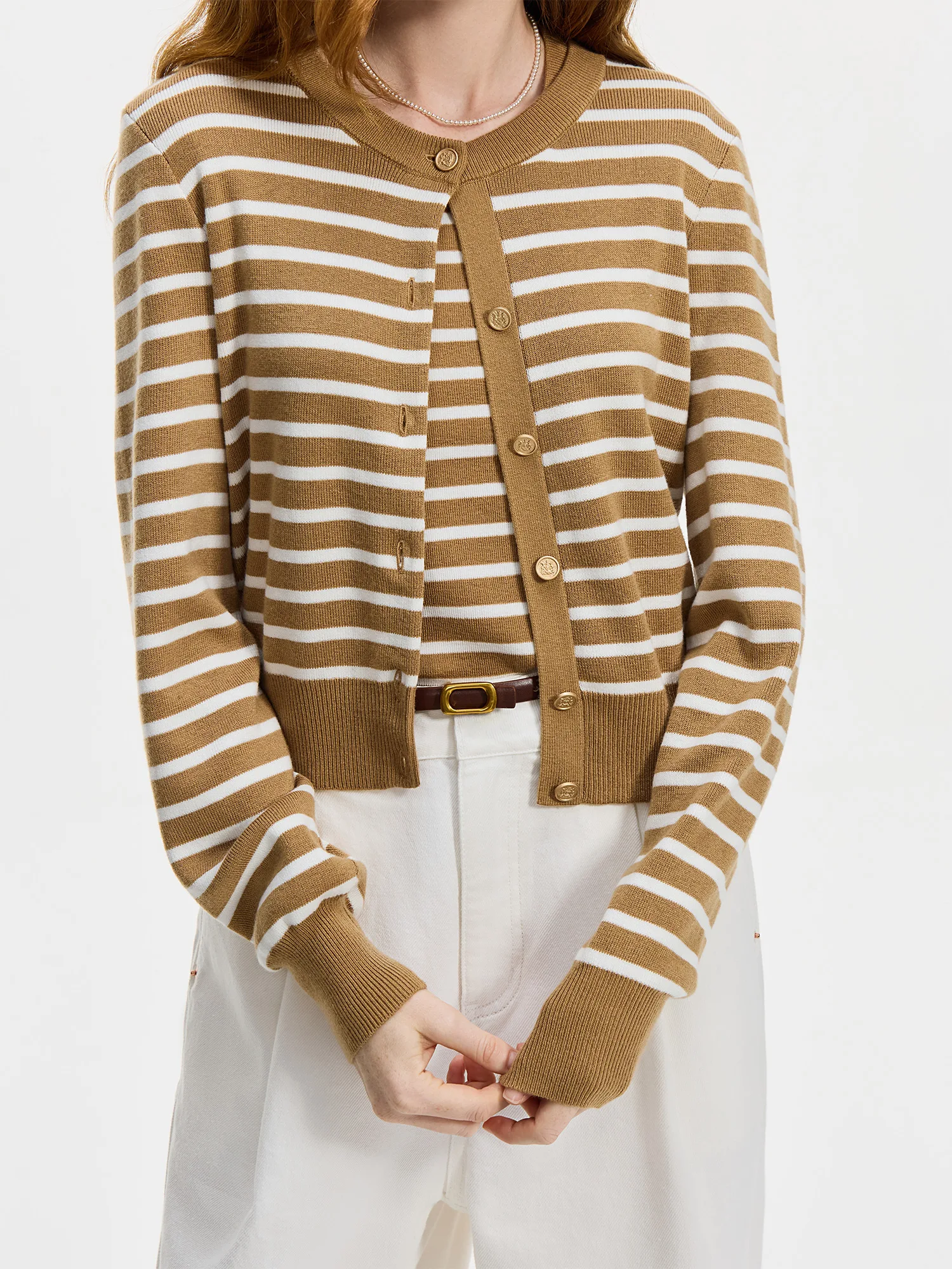 FSLE Striped Knit Cardigan Jacket Vest For Women 2024 Fall Winter New Sweater Undershirt Two-pieces Coat Set 24FS14105 24FS14232