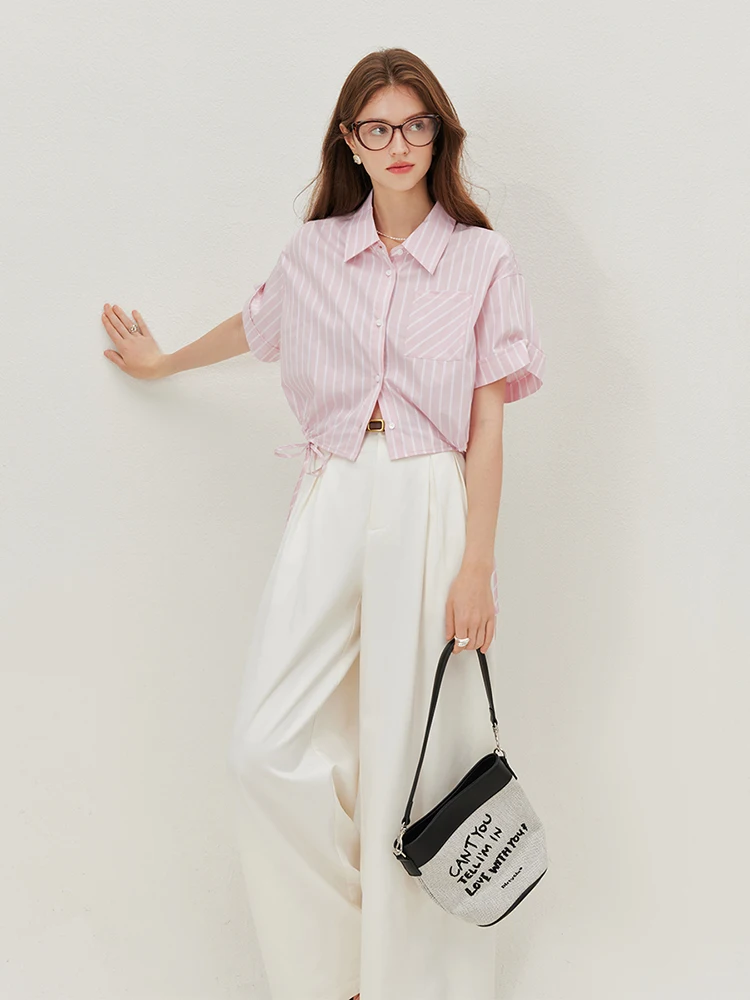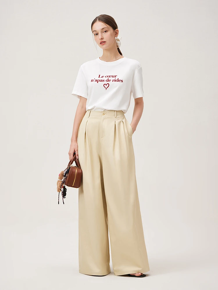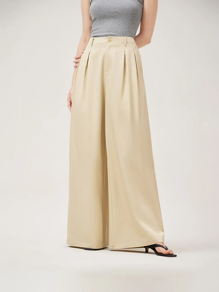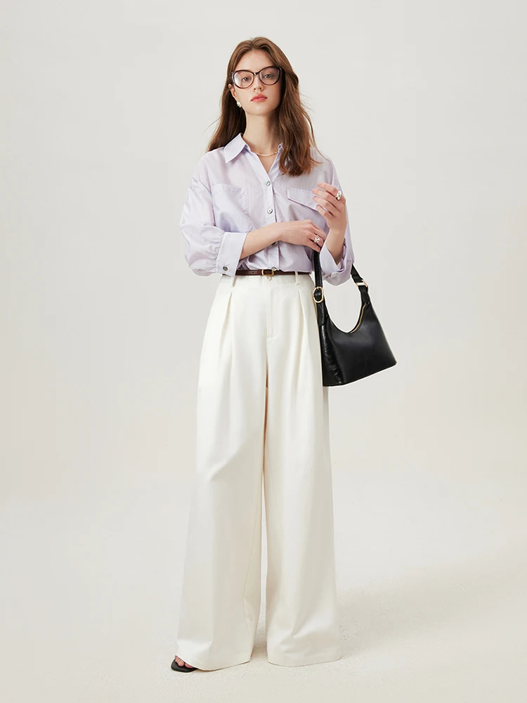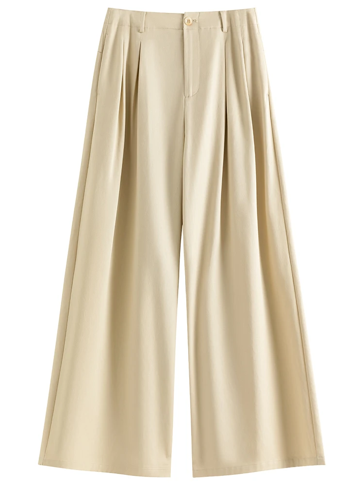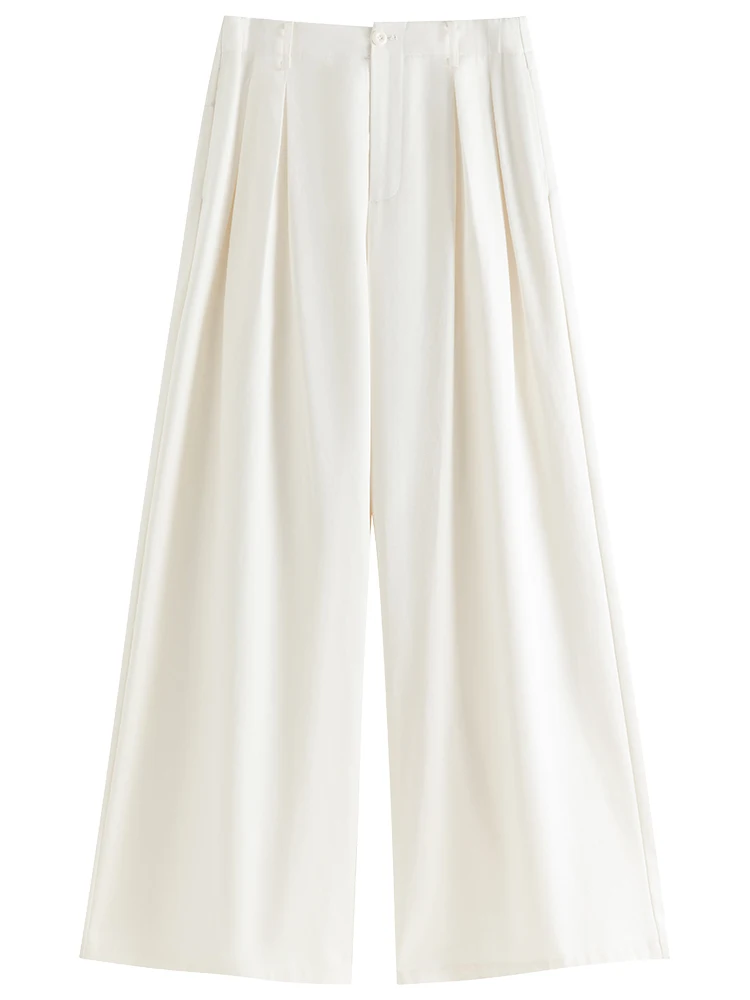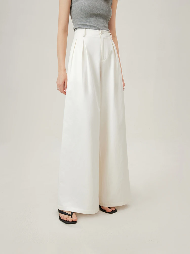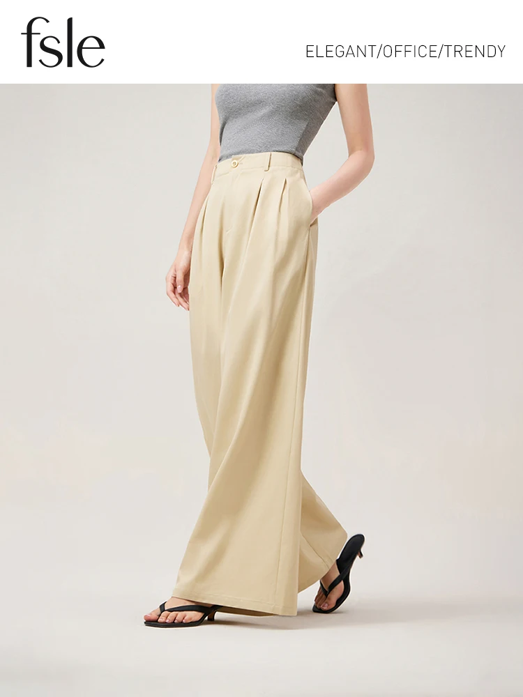 FSLE Women Full Length Summer Pants Commuter Wide Leg White Long Trousers Pleated Design Female Khaki Loose Thin Pant 24FS12900