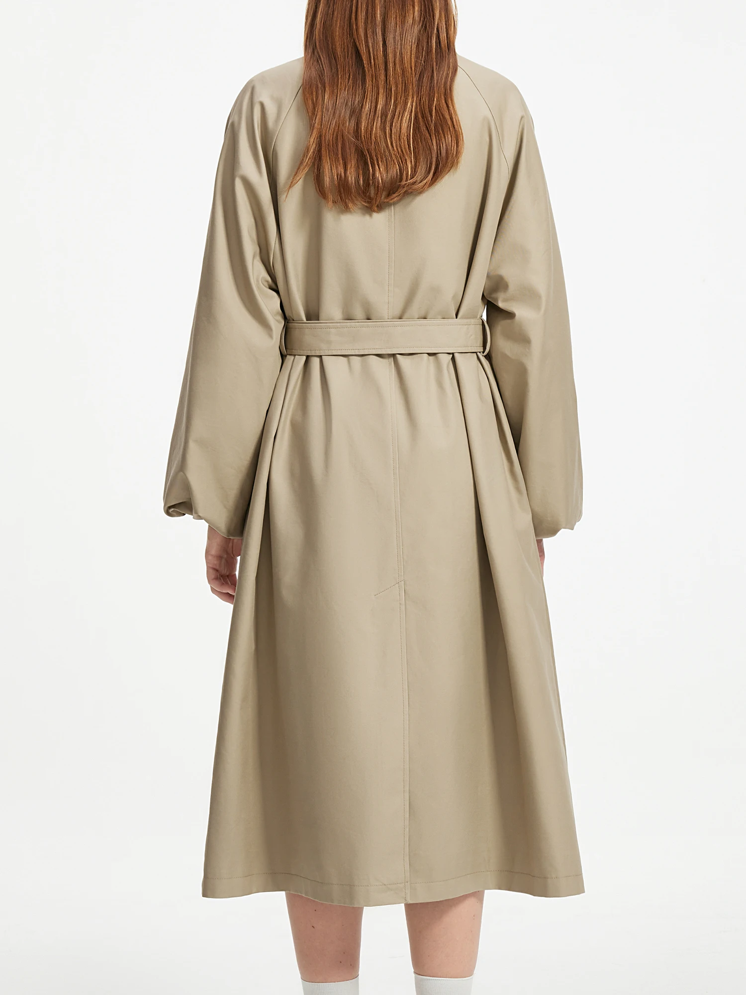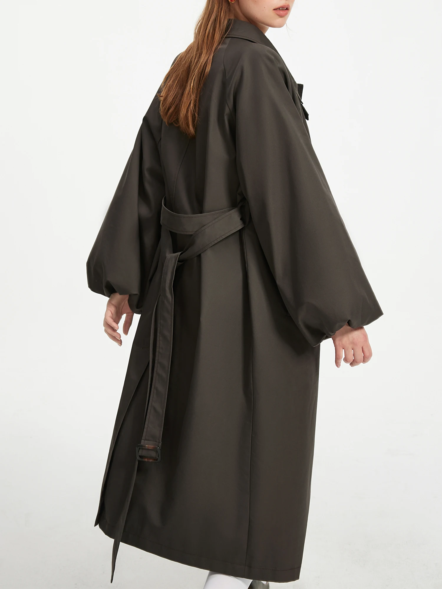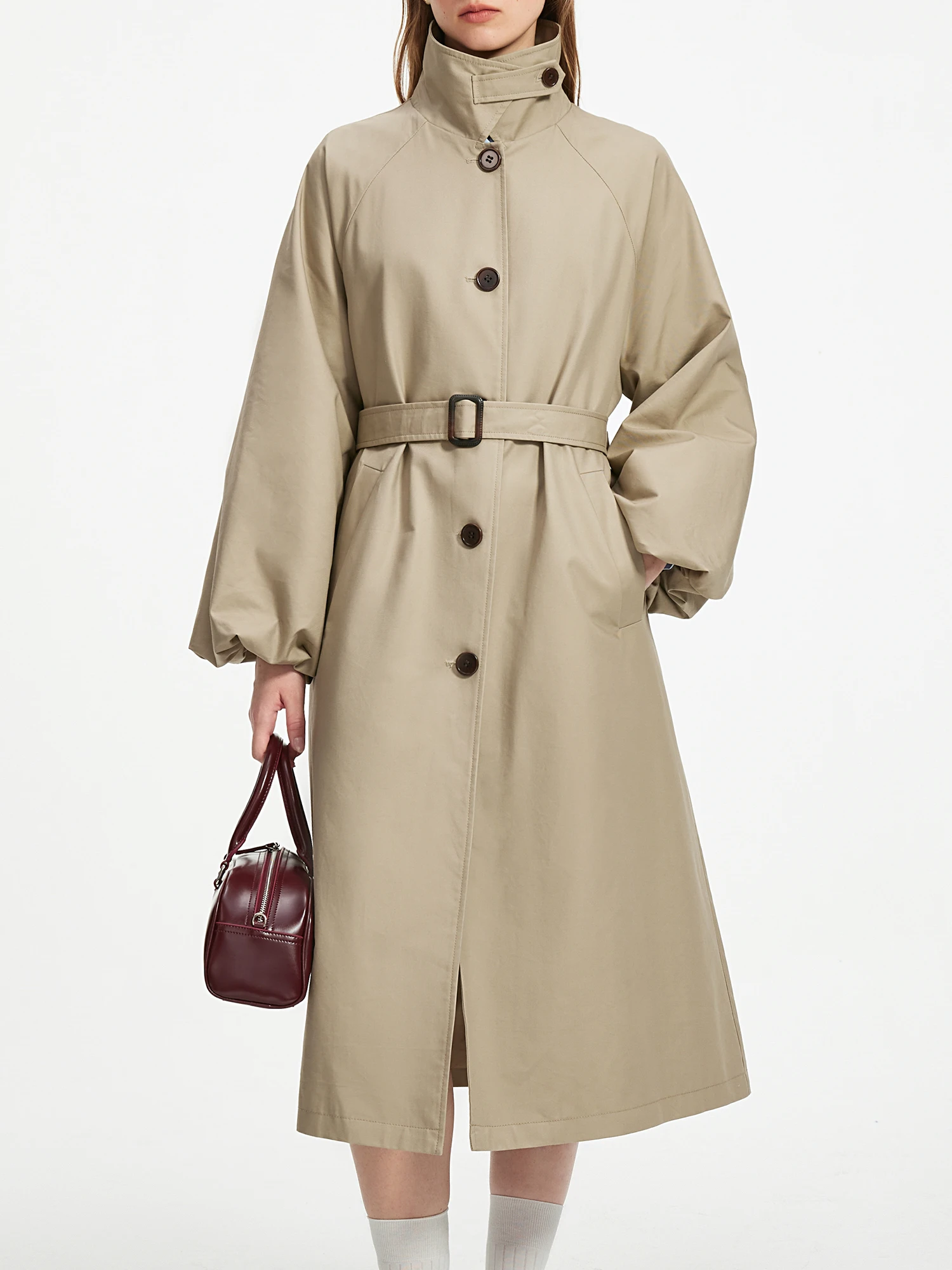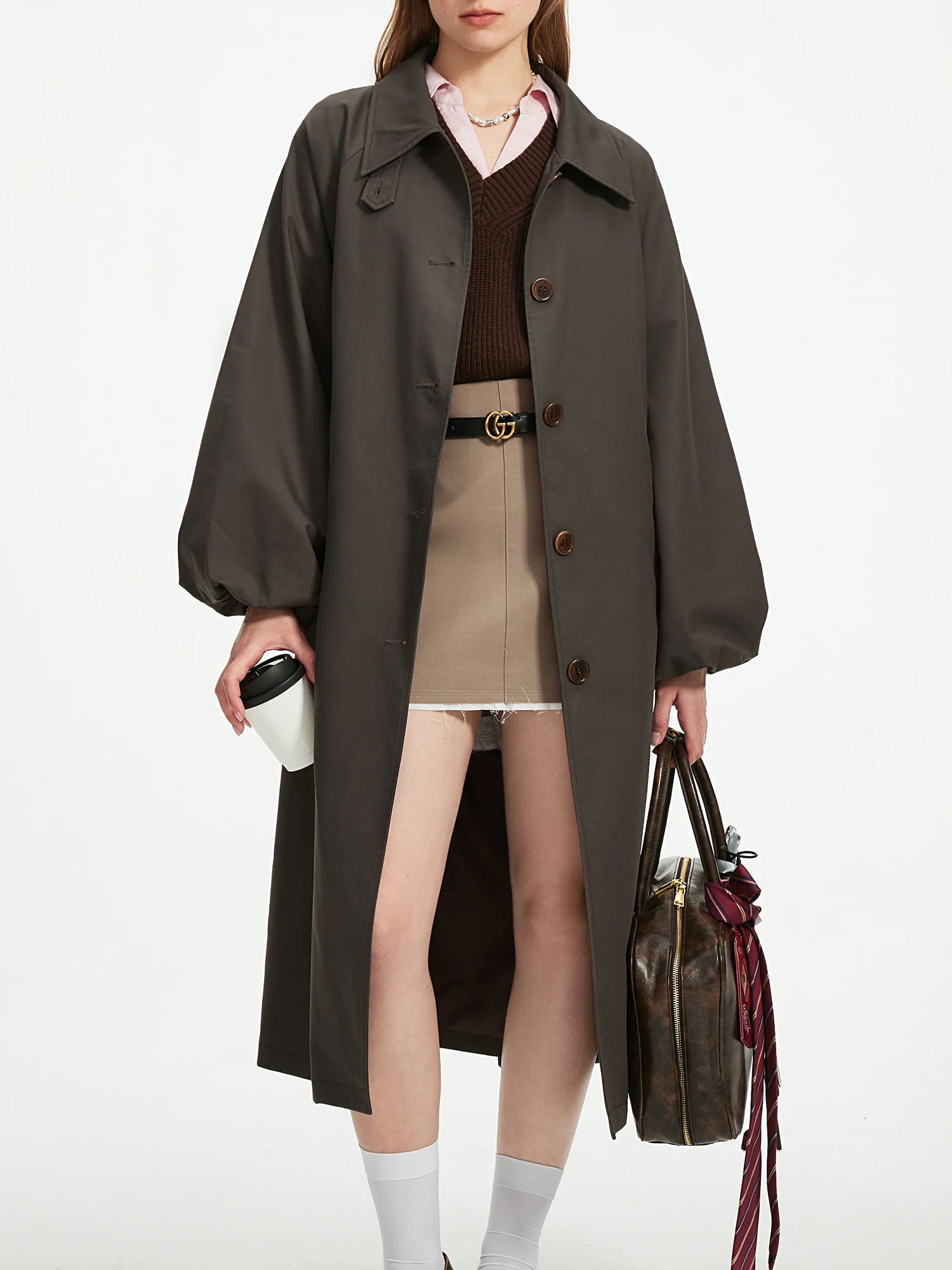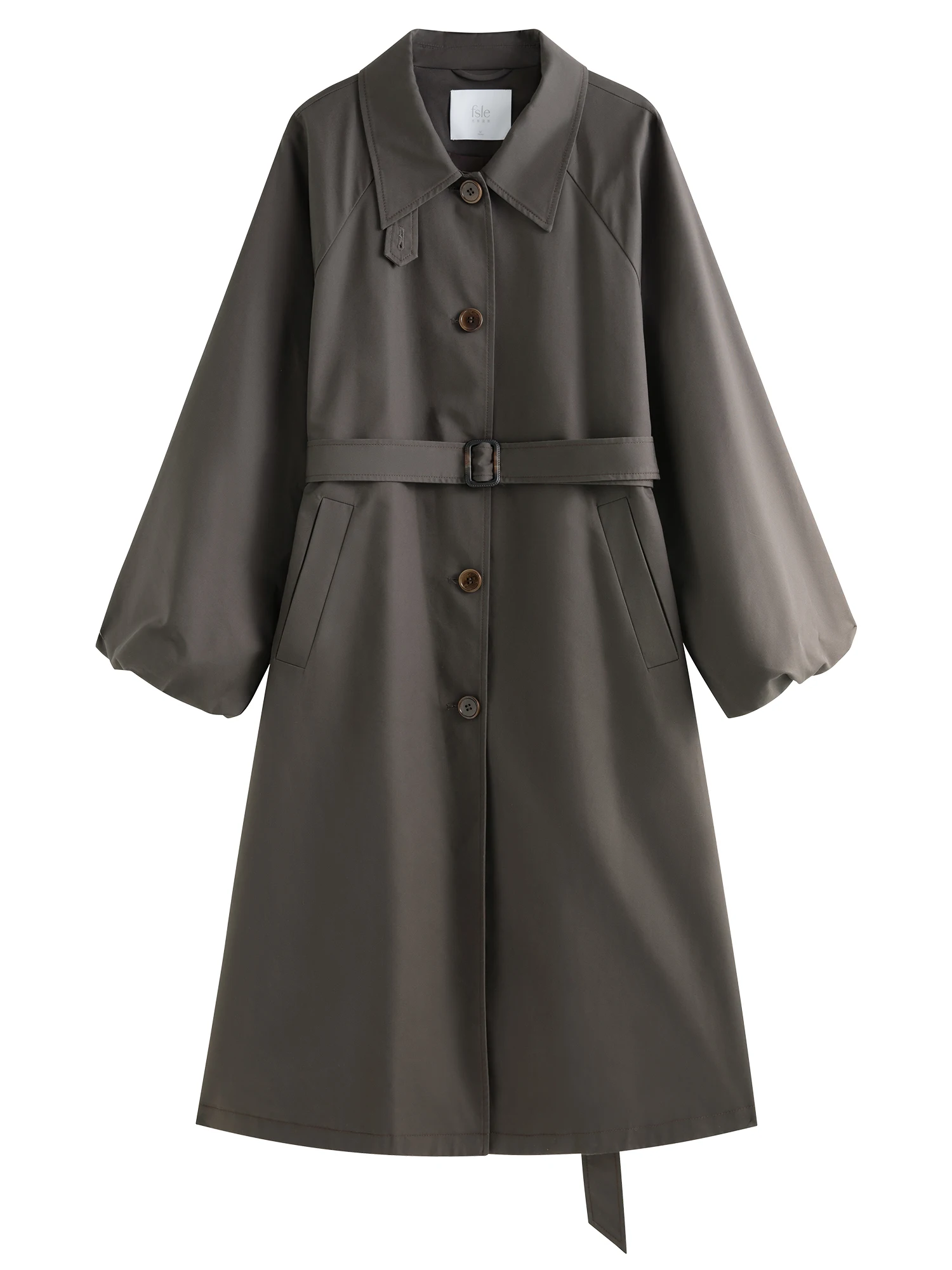 FSLE Women Grey Khaki Long Trench Polo Neck Single Breasted Autumn Female Trench Coat With Sashes Raglan Sleeve Coats 24FS13341
