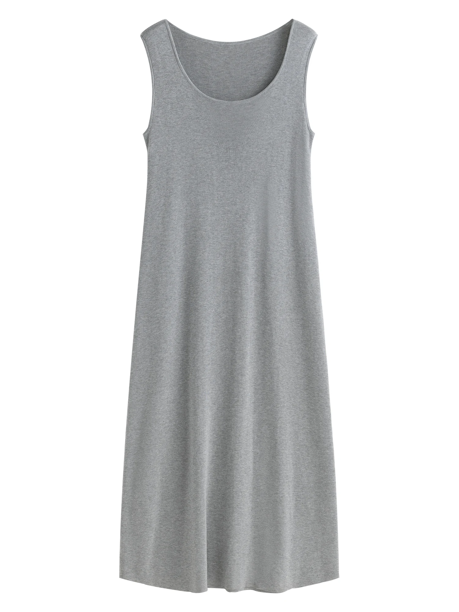 FSLE Women Grey Sleeveless Knitted Dress U-Neck Temperament 2024 Autumn All-Match Yellow Midi Long Lyocell Dresses 24FS13186