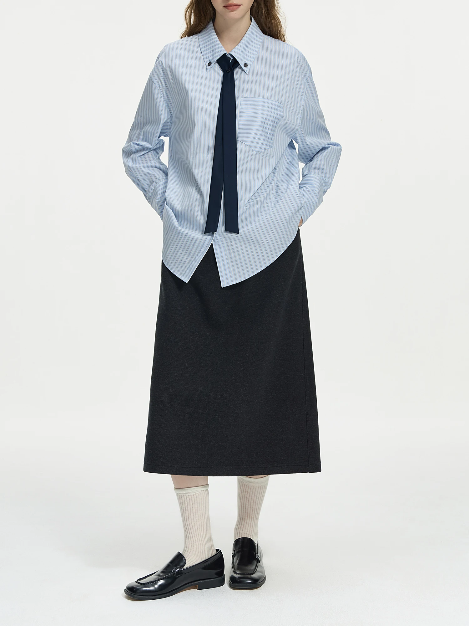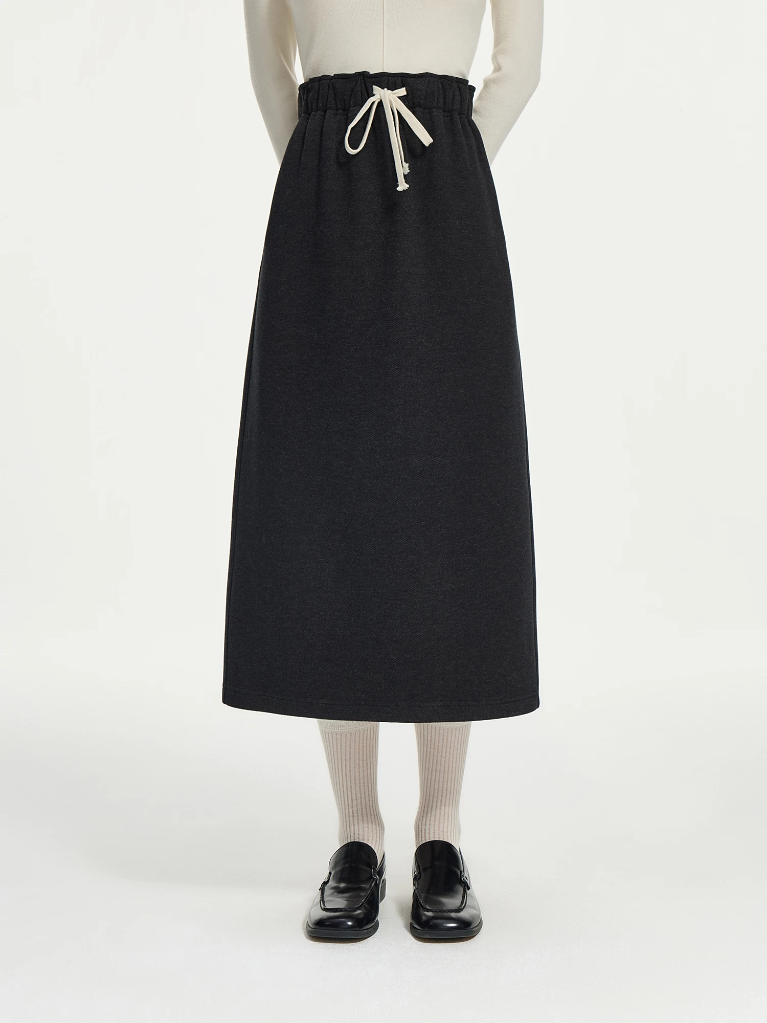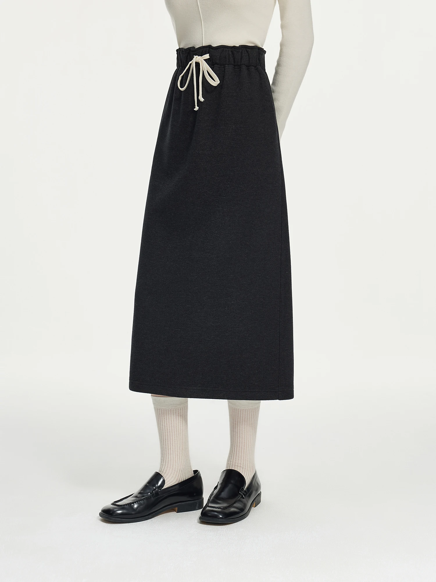 FSLE Women Long Skirts Winter Thick Waist Drawstring Dark Grey Commuter Straight Skirts Lightvelvet Liner Female Skirt 24FS14566