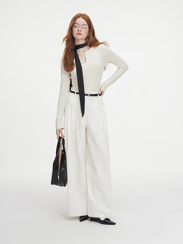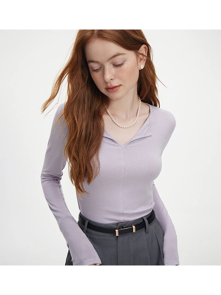 FSLE Women Pullover Long Sleeve Tops Sweater For Women V-Neck Slim Cotton Grey Pullover Beige Sweaters Autumn Top 24FS13097