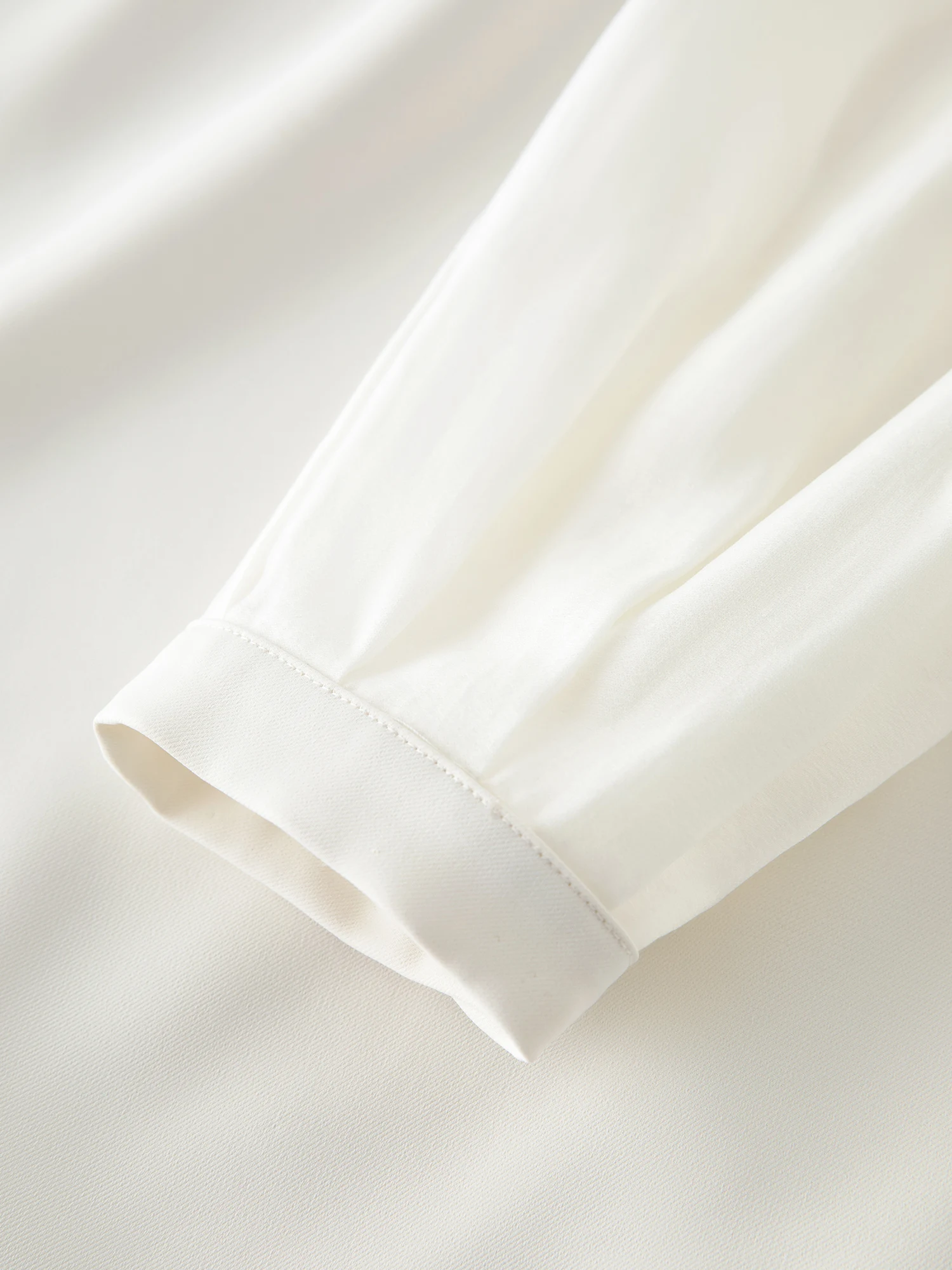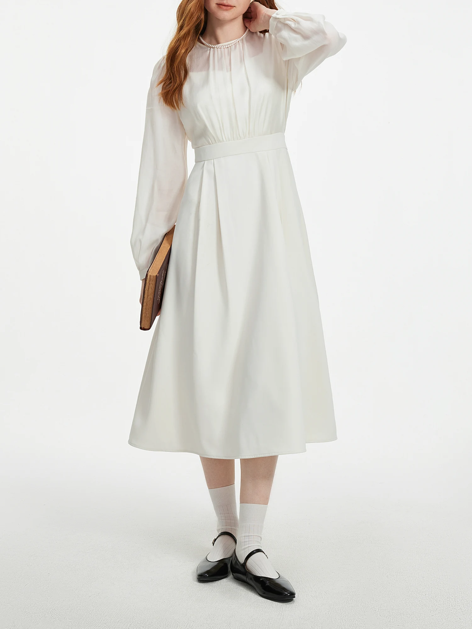 FSLE Women White Long Dress Autumn Temperament Patchwork Design Female Long Puff Sleeve Round Neck X-LINE Dresses 24FS13362