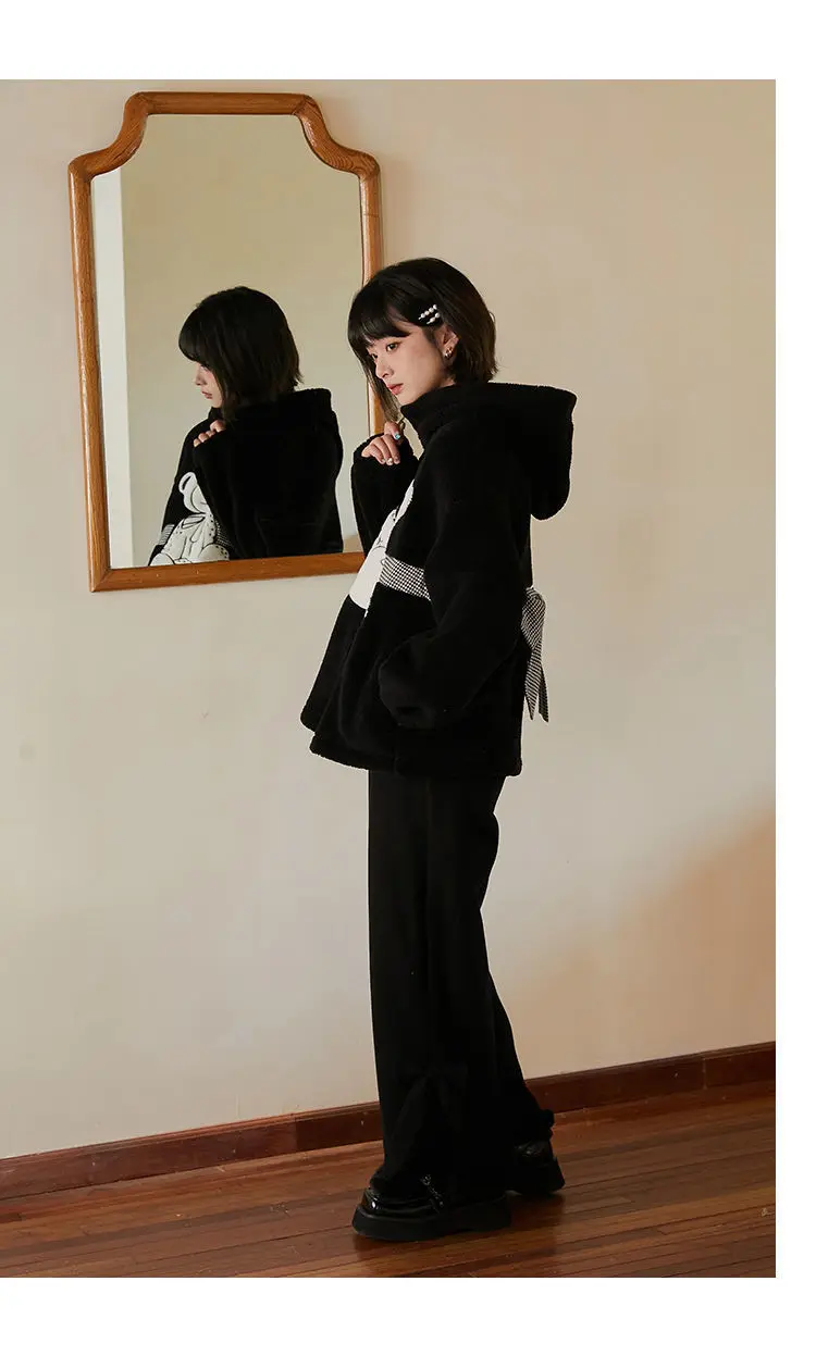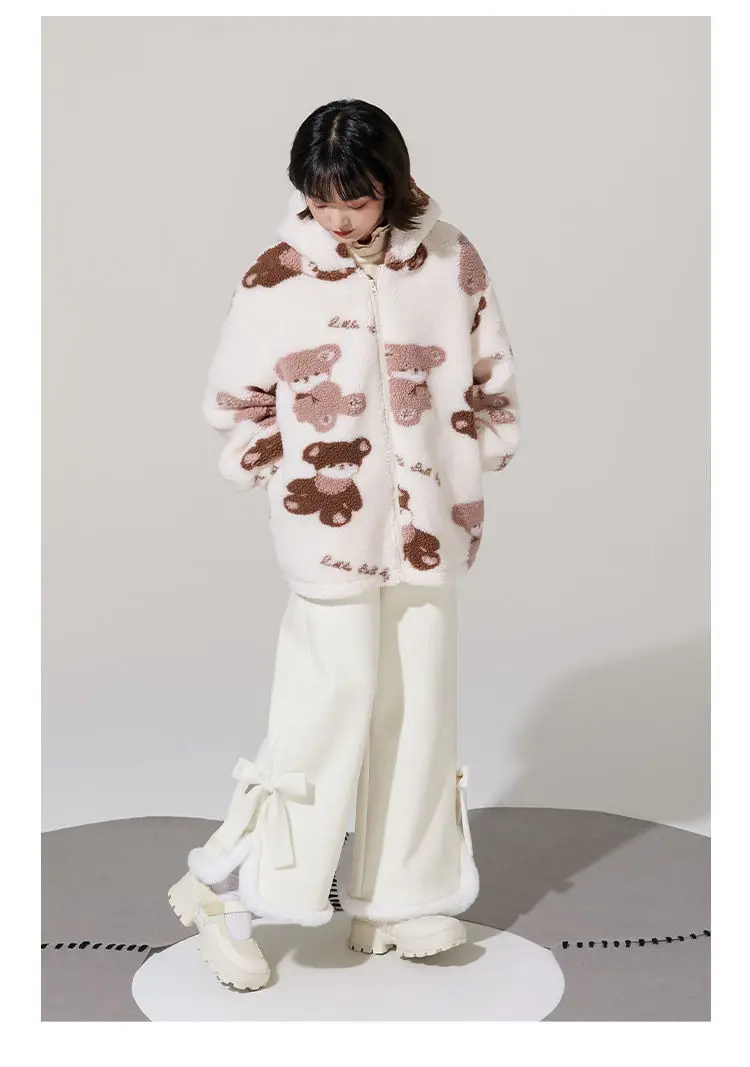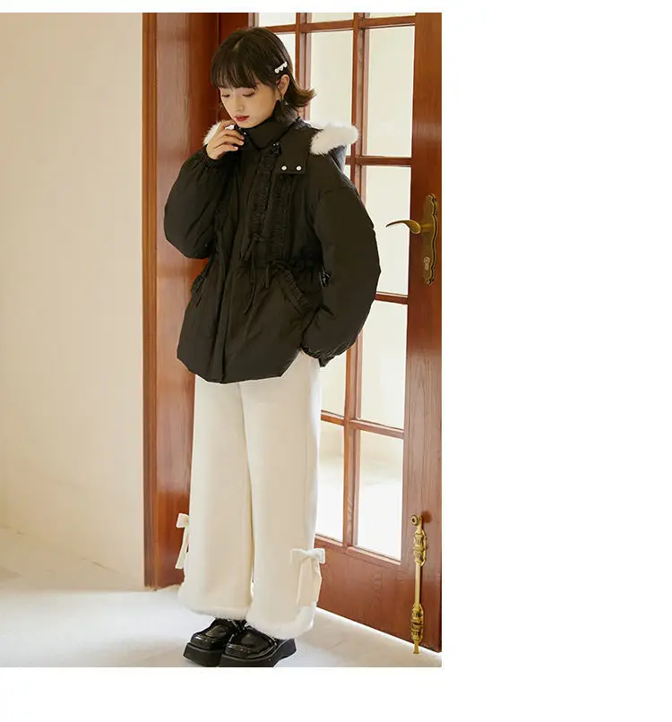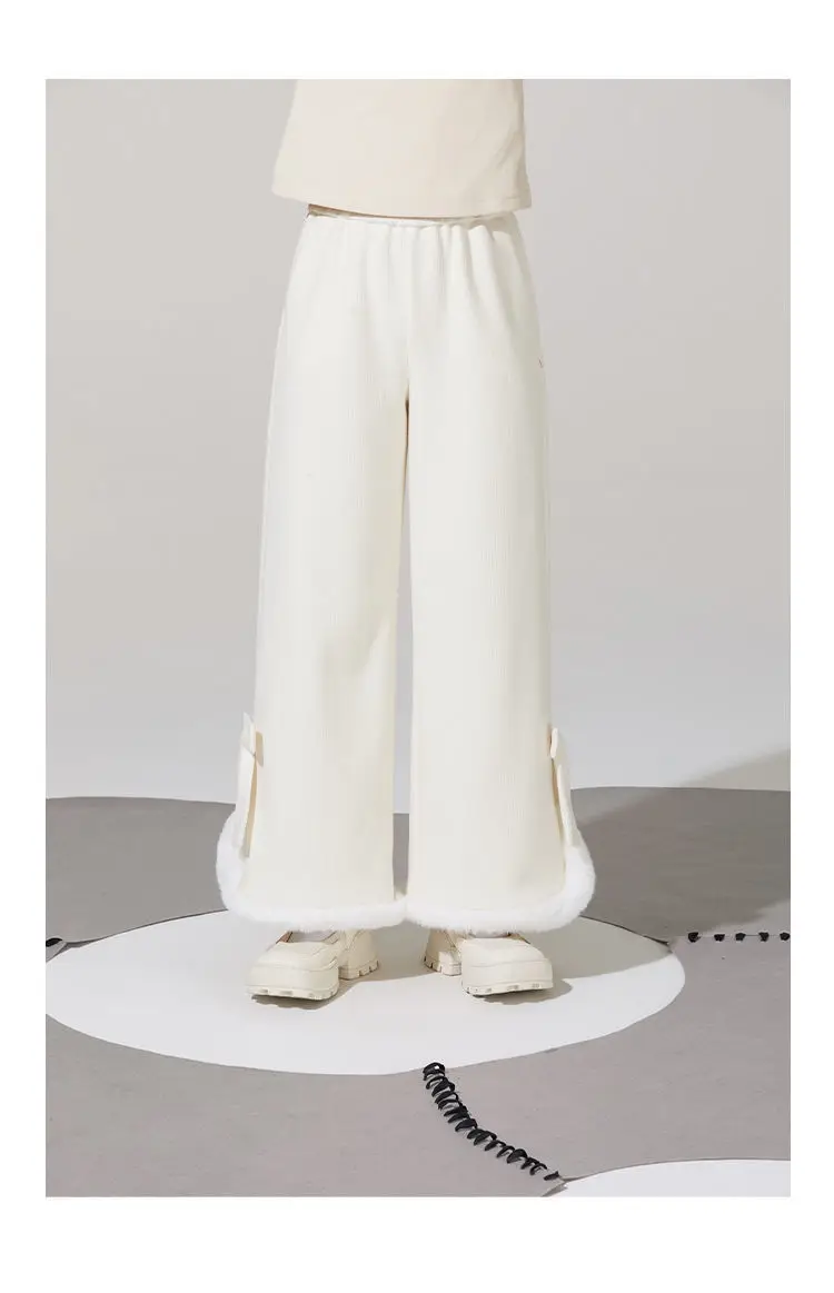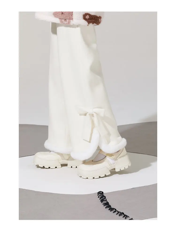 Japanese Kawaii Warm Wool Pants Women Korean Style Sweet Wide-legged Pants Female Bow Loose Casual Elegant Cute Pants Winter New