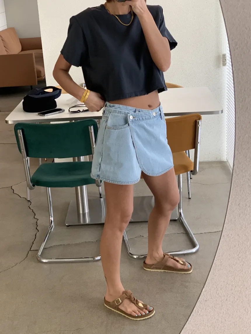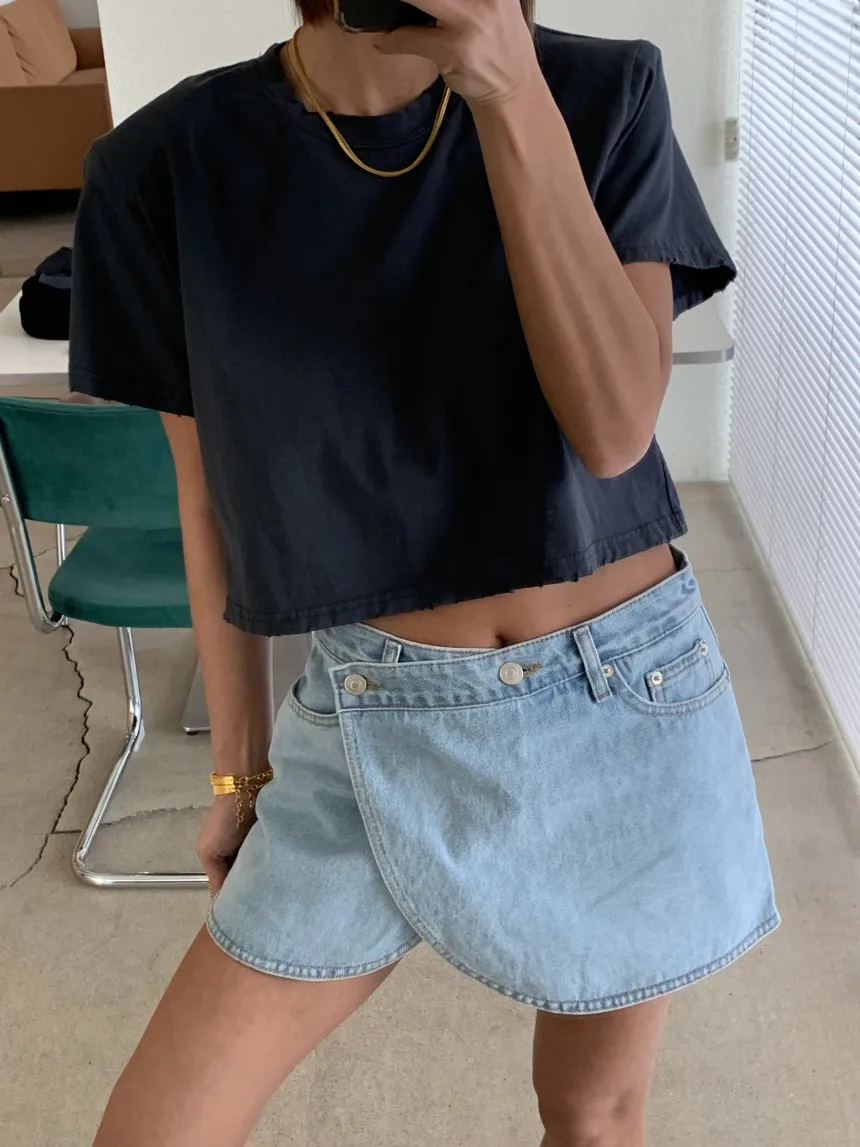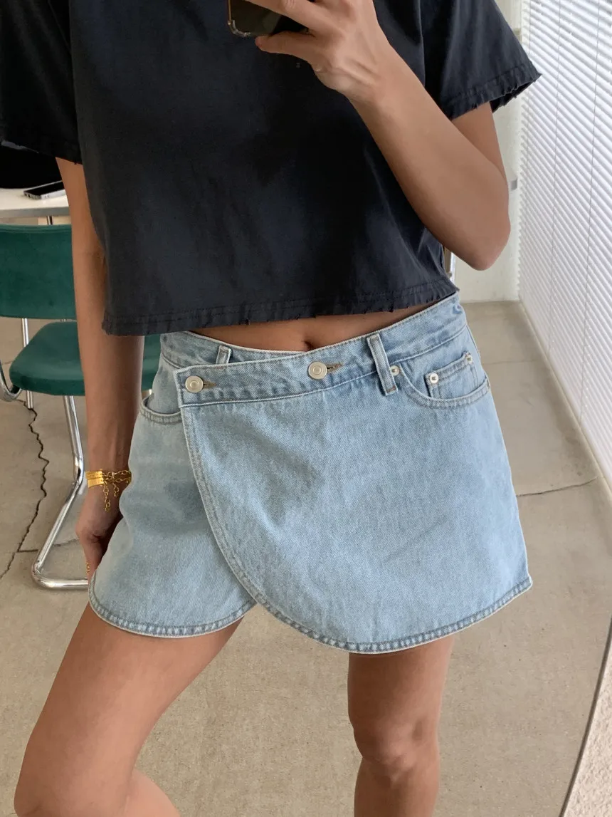 Kpop Jeans Summer Mini Denim Shorts Skirts Women Irregular Patchwork Fashion High Waist Ladies Trousers Korean Loose Woman Shorts