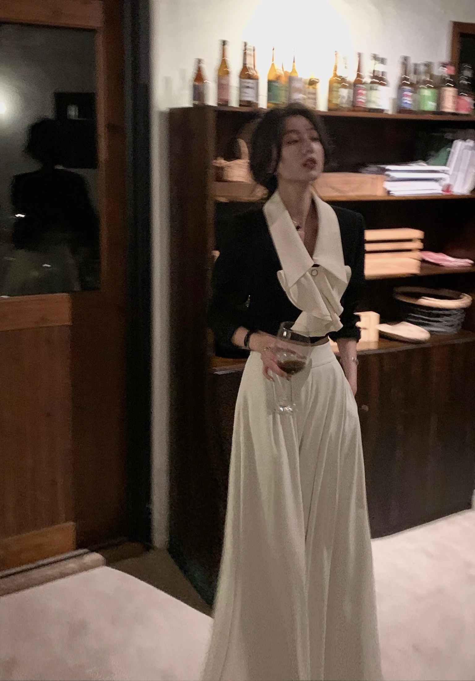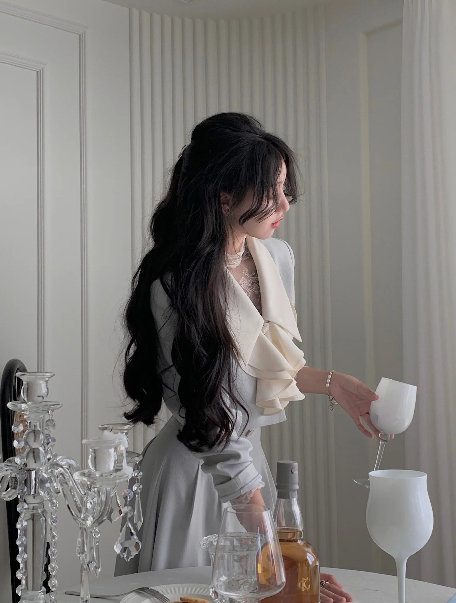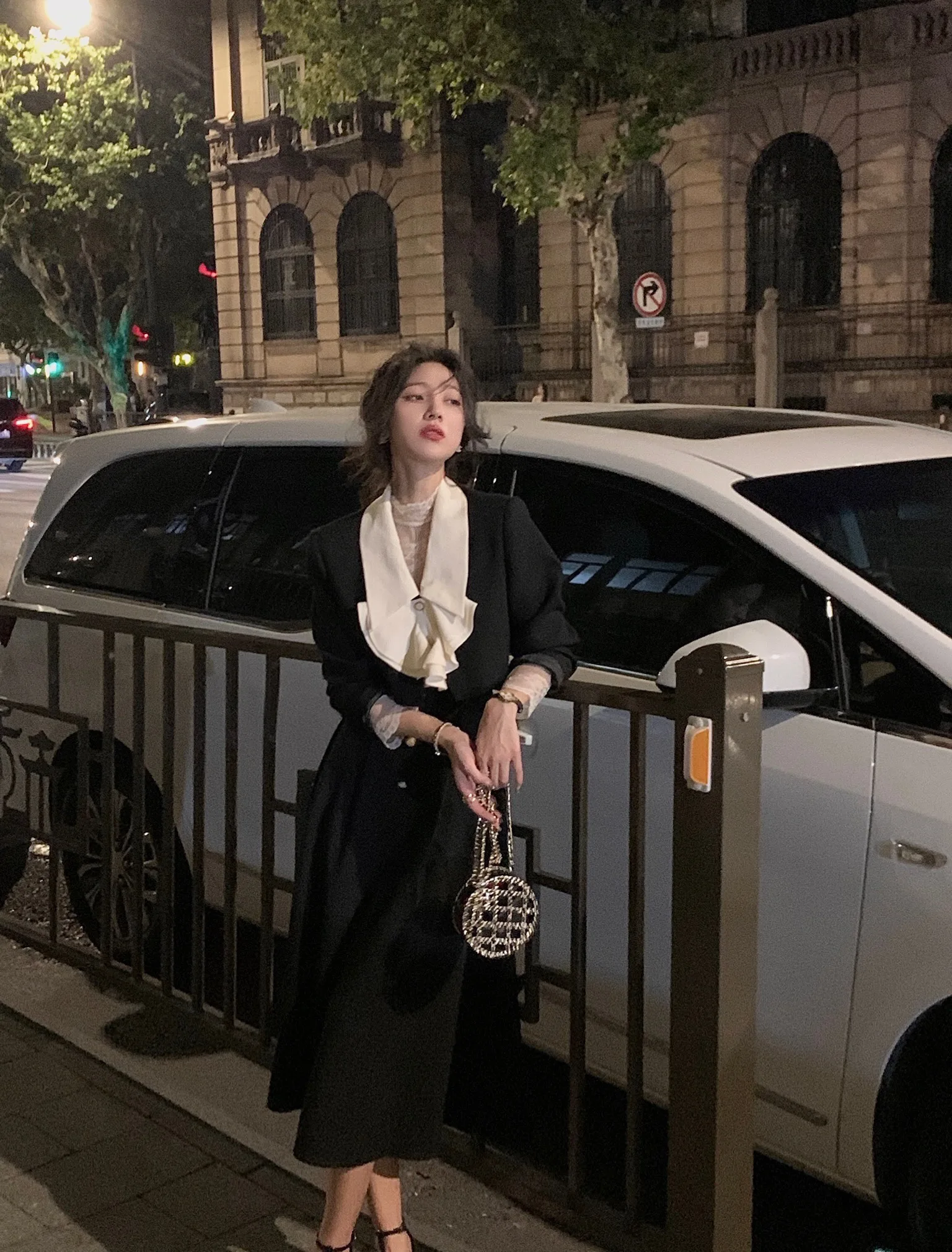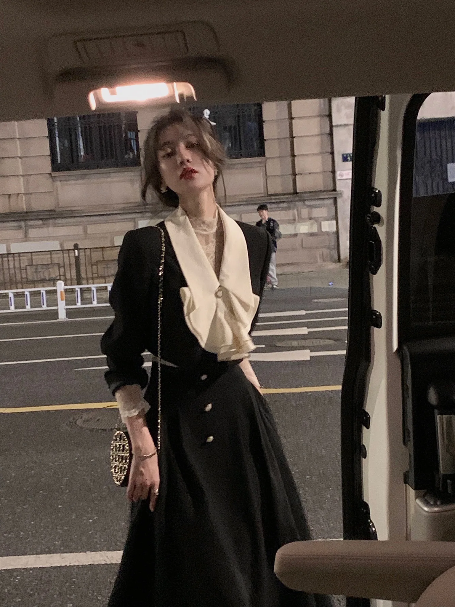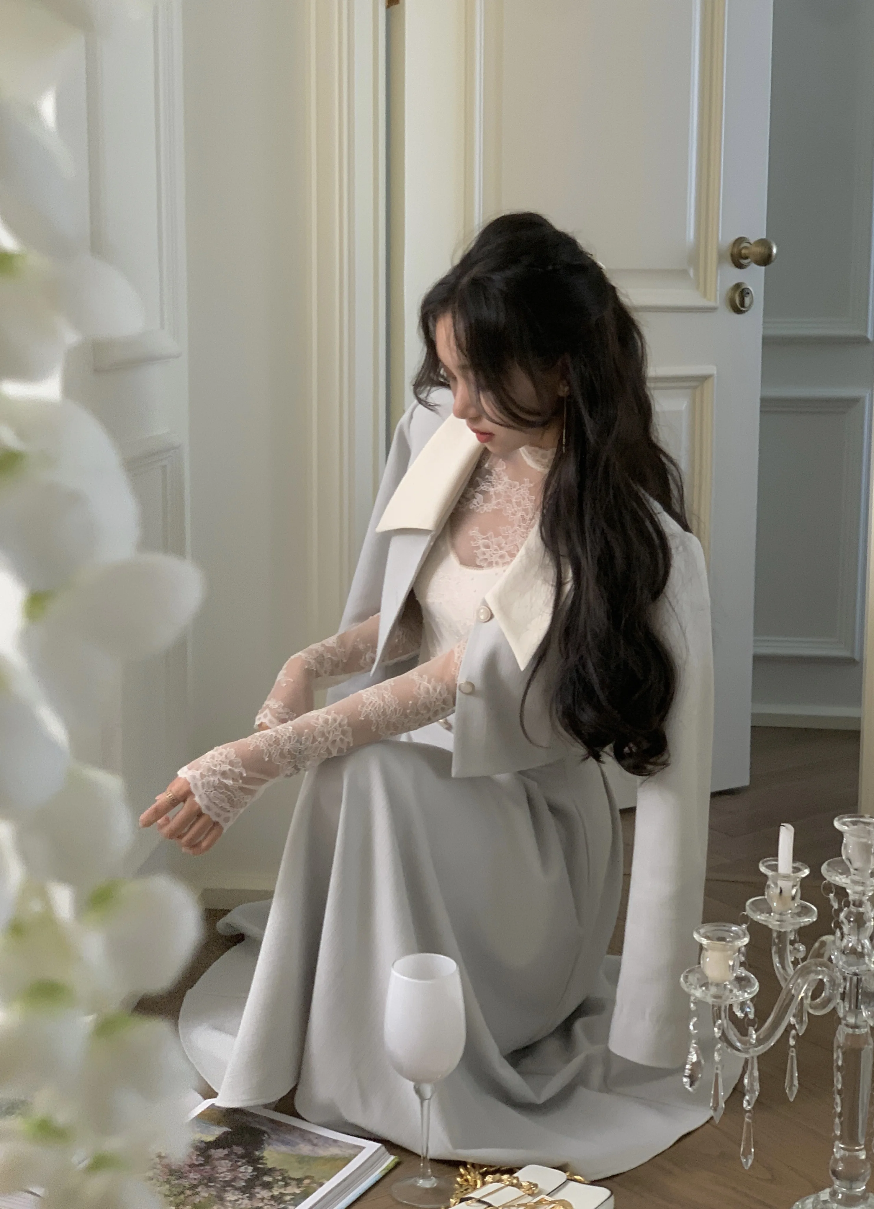 Korean Skirt Suit 2022 Autumn Elegant 2 Piece Set Office Lady Long Sleeve Short Coat + Blue Midi Skirt Outfits Woman Slim Retro