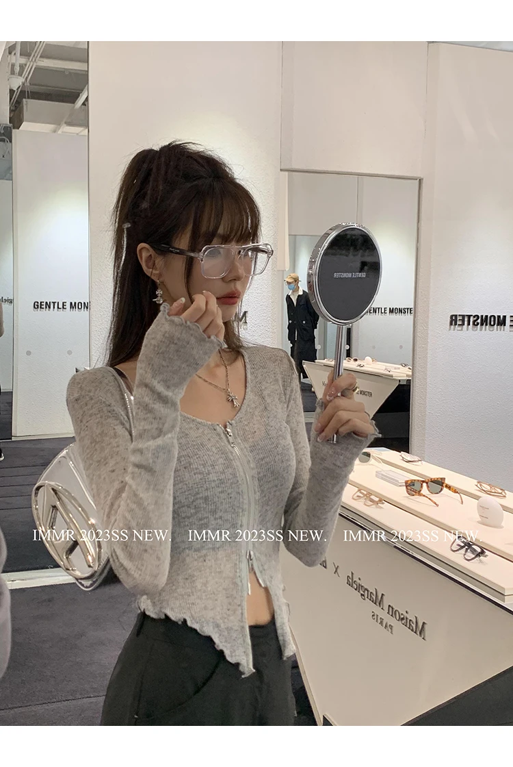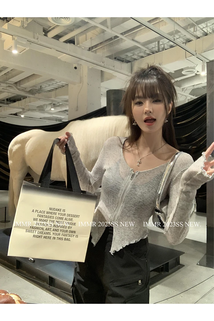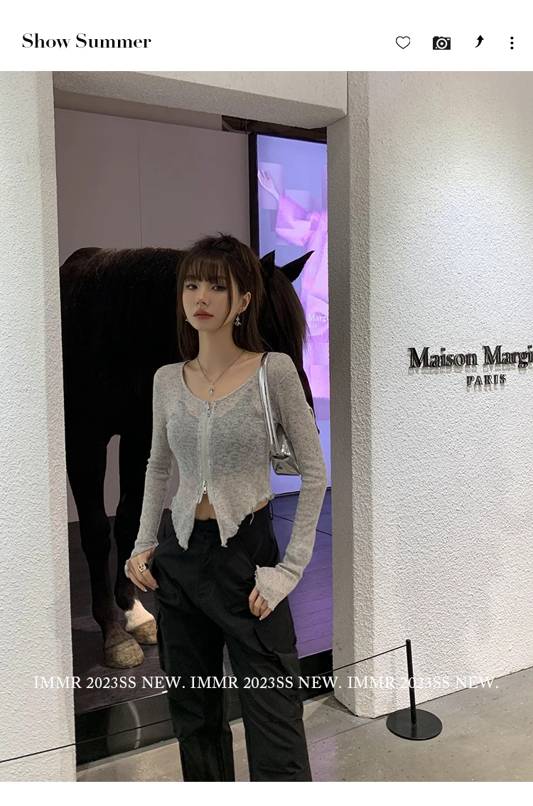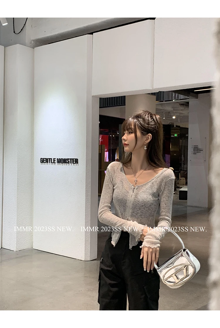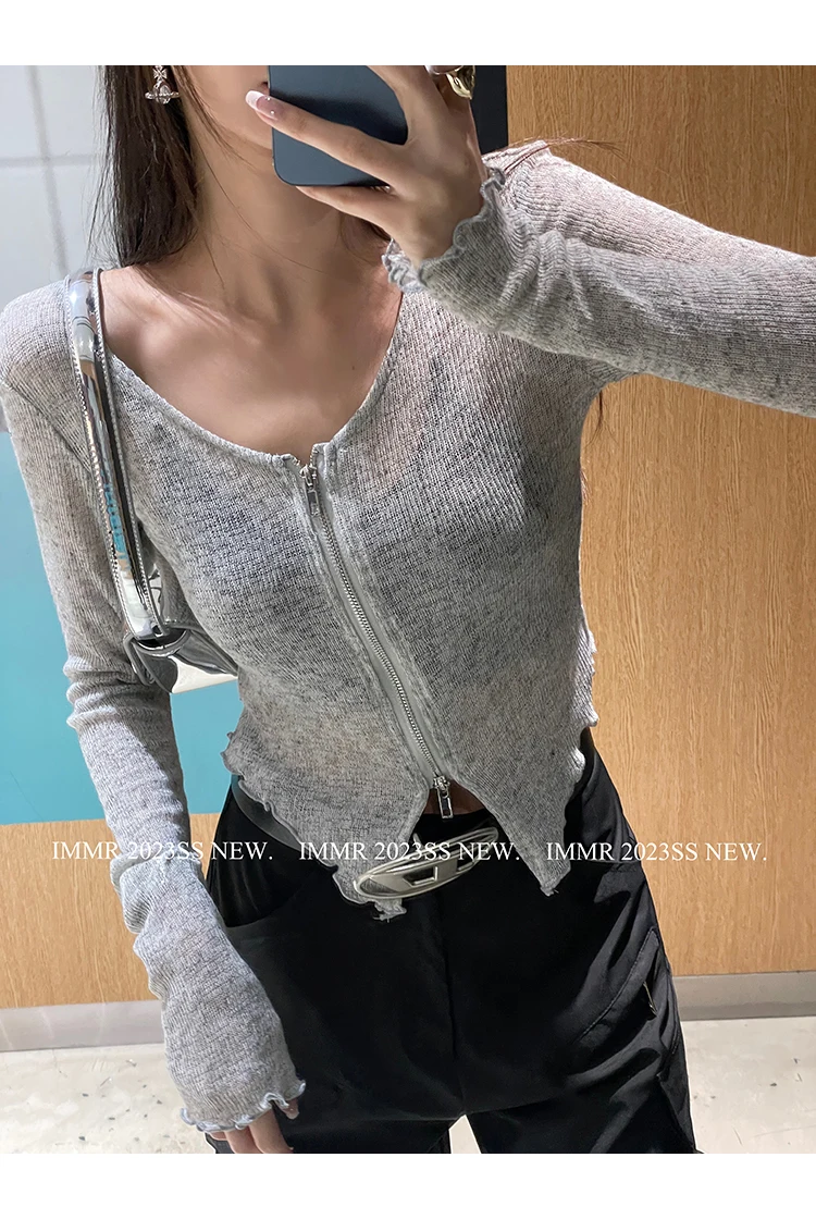 Long Sleeve Women Sunscreen Cardigan Summer Versatile Solid Color Thin Knitted Outwear Double Zipper Slightly Transparent Coats