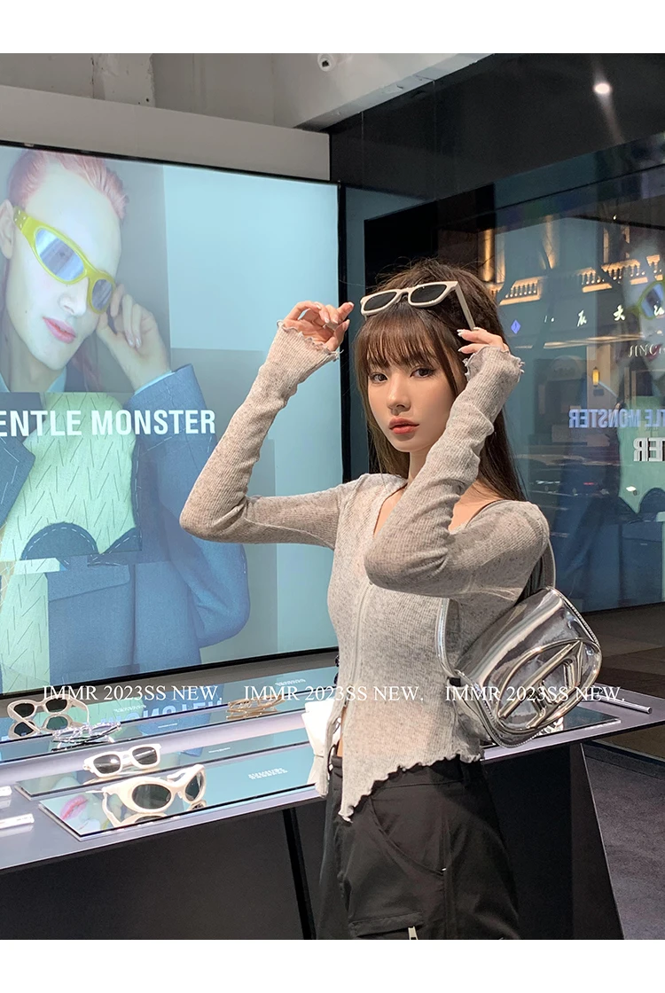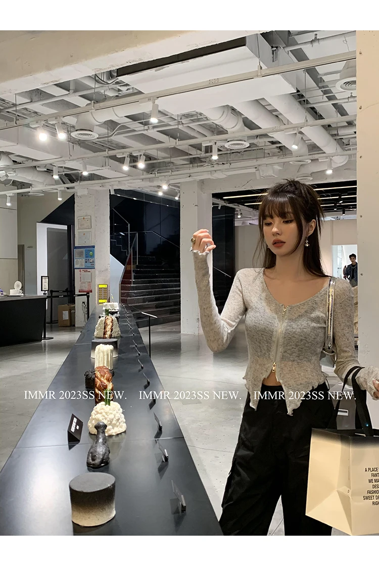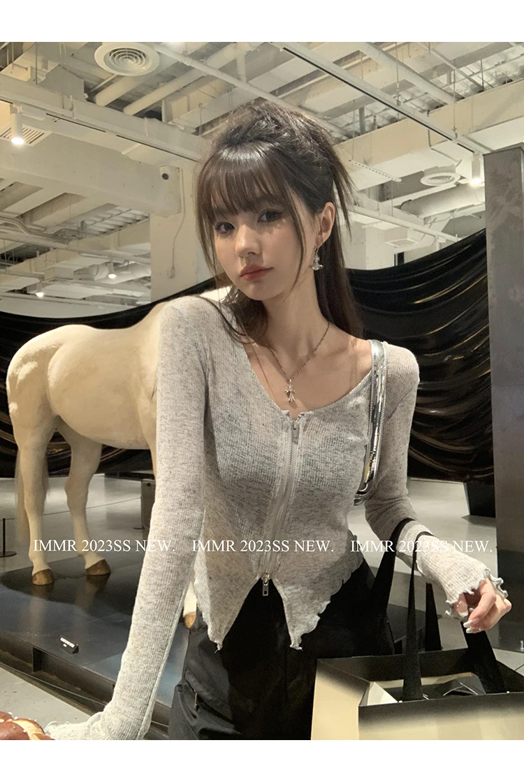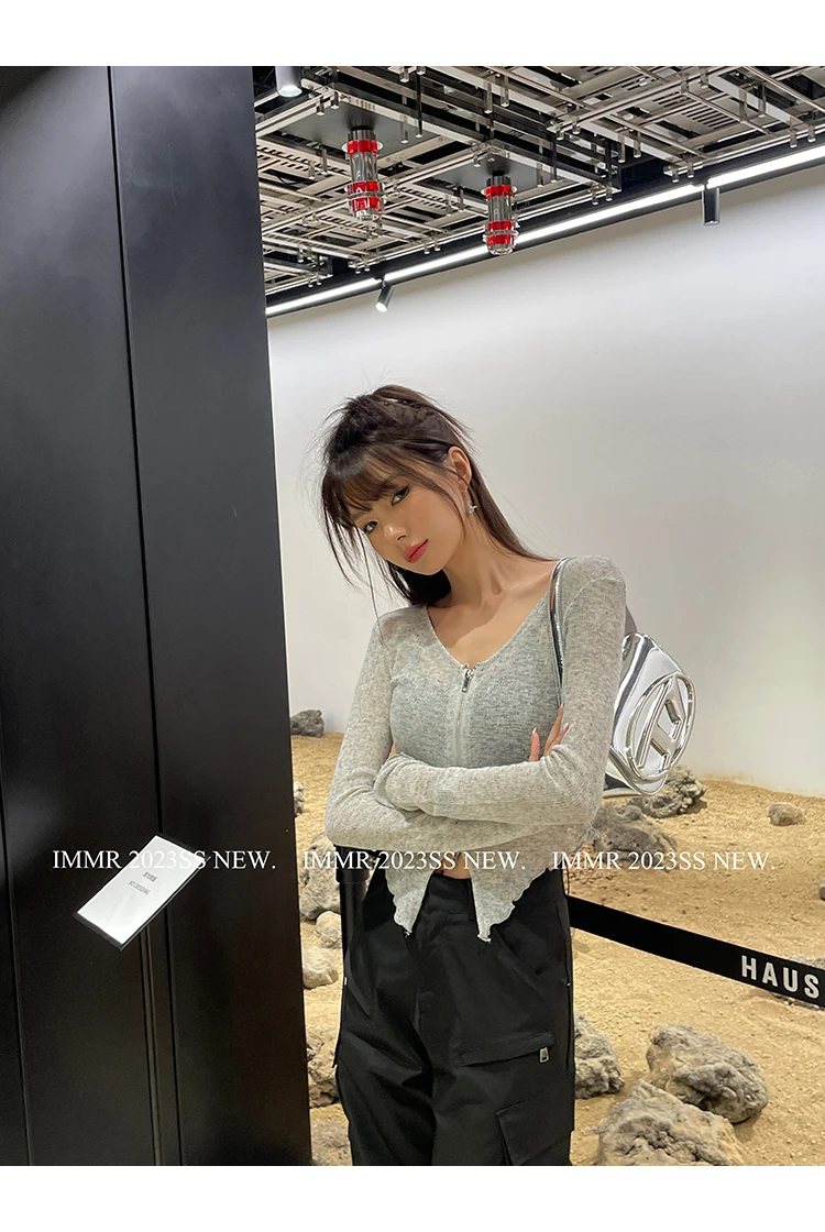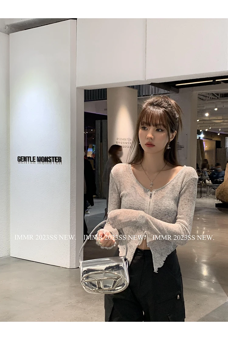 Long Sleeve Women Sunscreen Cardigan Summer Versatile Solid Color Thin Knitted Outwear Double Zipper Slightly Transparent Coats