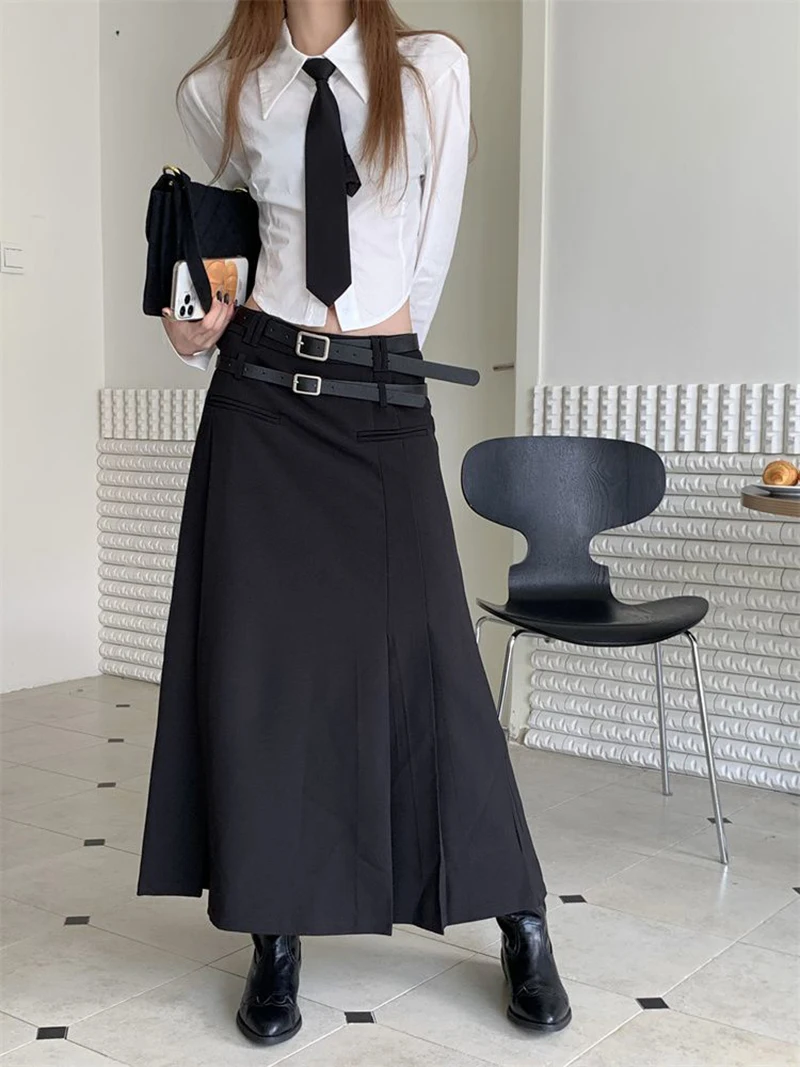 MEXZT Preppy White Crop Shirts Women Korean Fashion Jk Tie Long Sleeve Blouse Student College Retro Solid Slim All Match Tops