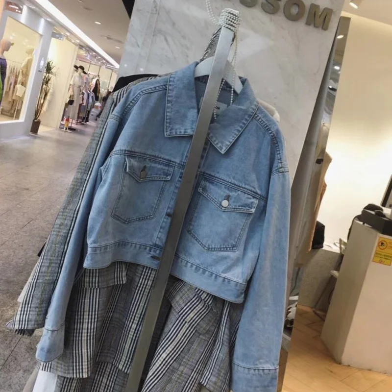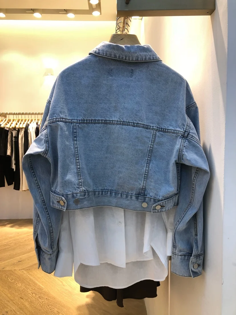 Embrace retro charm with this chic Korean-inspired vintage-style denim jacket, perfect for autumn.