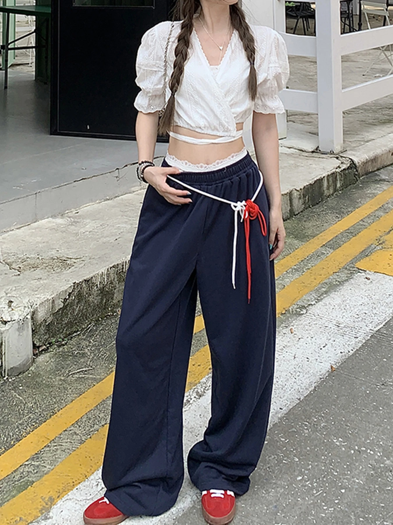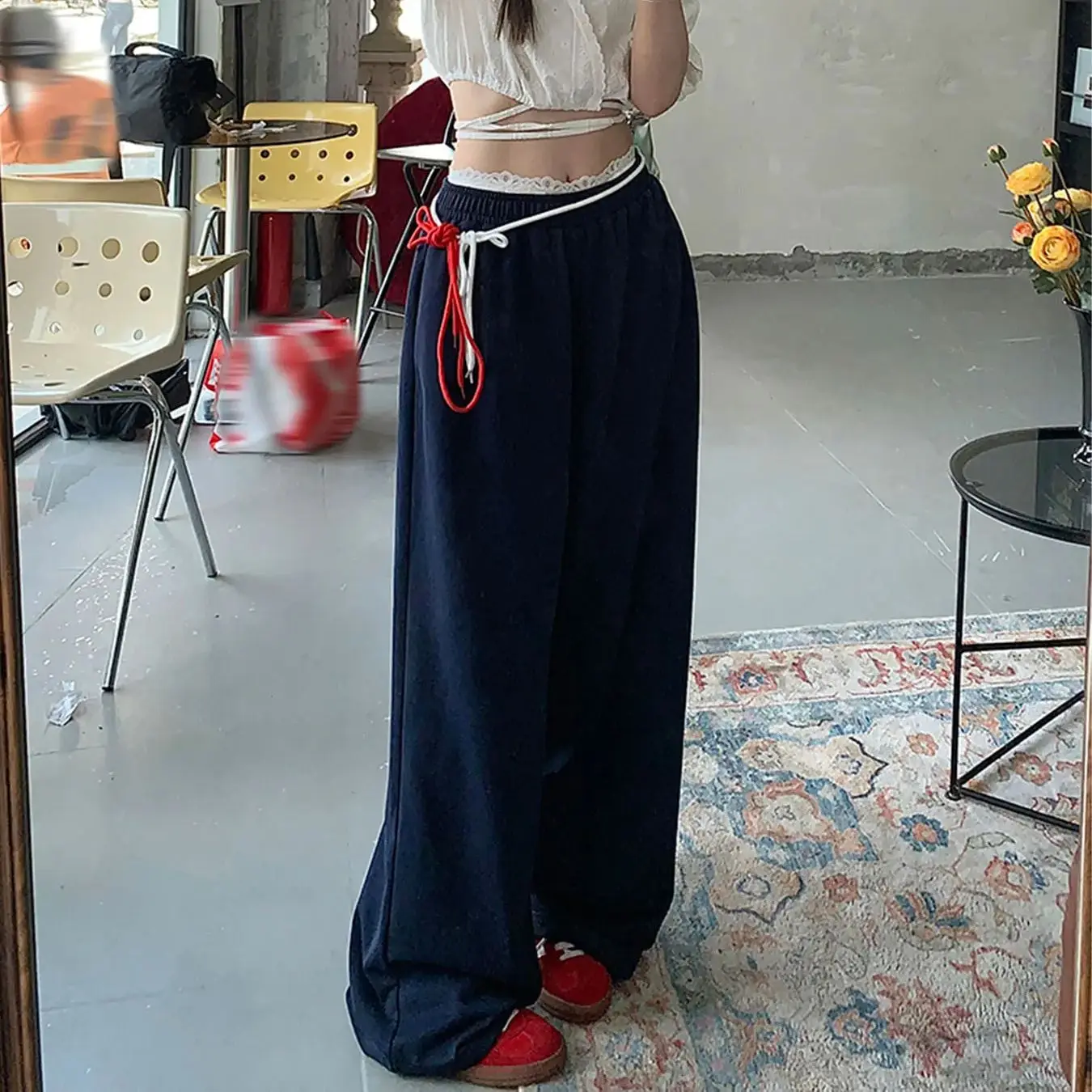 Kpop Rockmore Fashion Women Retro Solid Sweatpants Elastic Waist Wide-leg Pants Y2K Streetwear Loose Trousers Casual Joggers Baggy