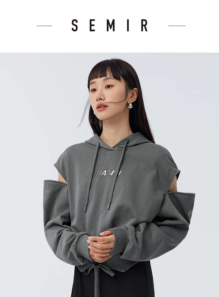 Semir 2023 Women Sweater Spring New Short Fishbone Waist Loose Top Sweet Cool Off-the-shoulder Sweater for Women