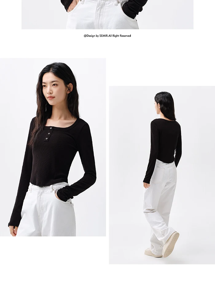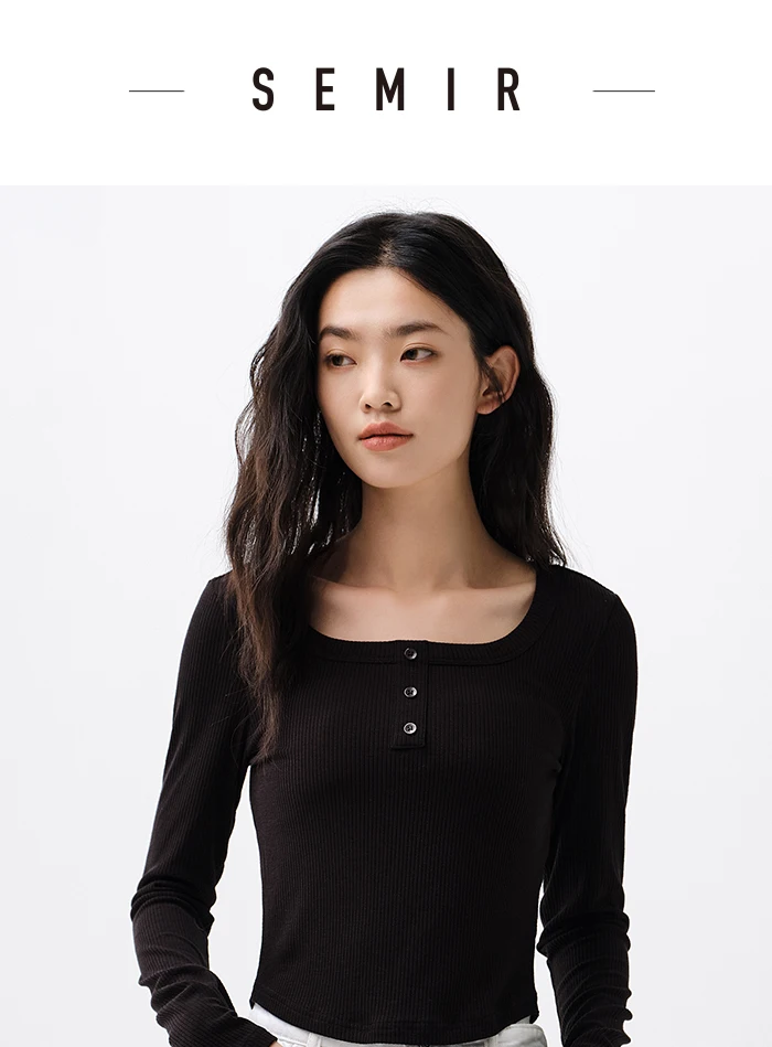 Semir 2024 Bottoming Shirt Women Daily Simple Solid Color Top Gentle And Slim Fit With Square Collar And Slimming Shirts