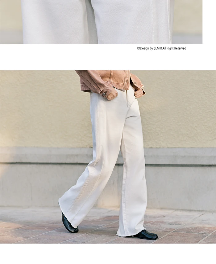 Semir 2024 Jeans Women Raw Edge Wide-Leg Pants Spring New Slimming Leg-Length Floor-Length Pants
