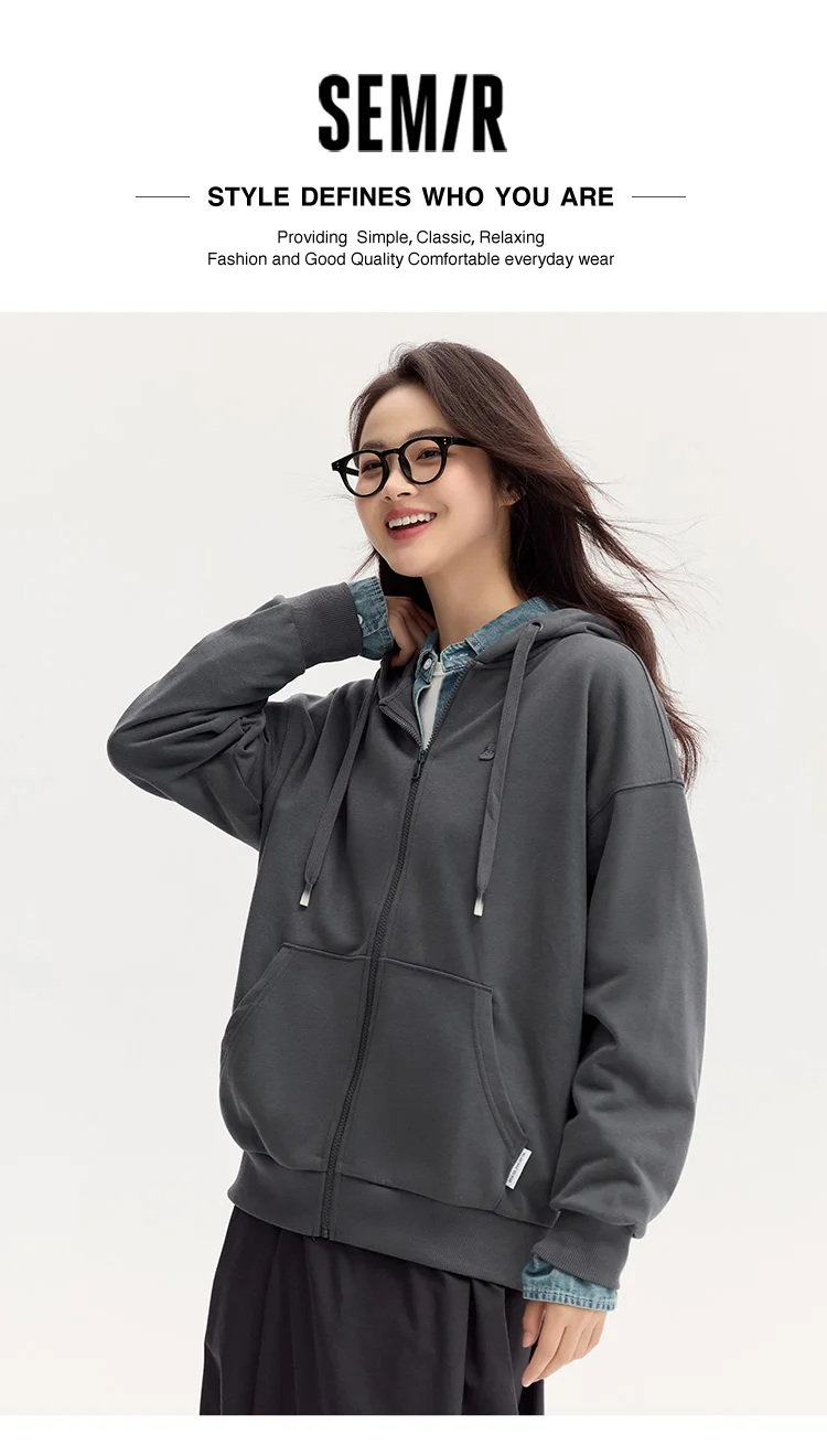 Semir Coat Women Loose Basic Hooded Jacket Versatile Temperament Women's Autumn Lazy Shoulder Leisure Style Clothes