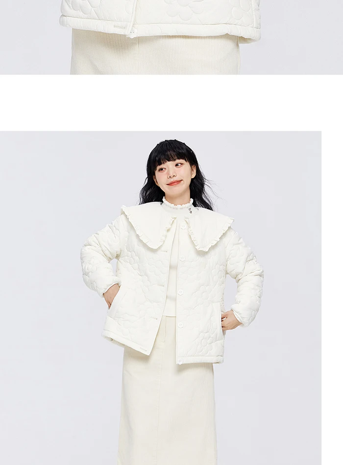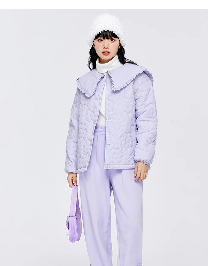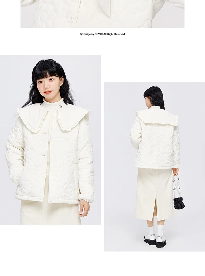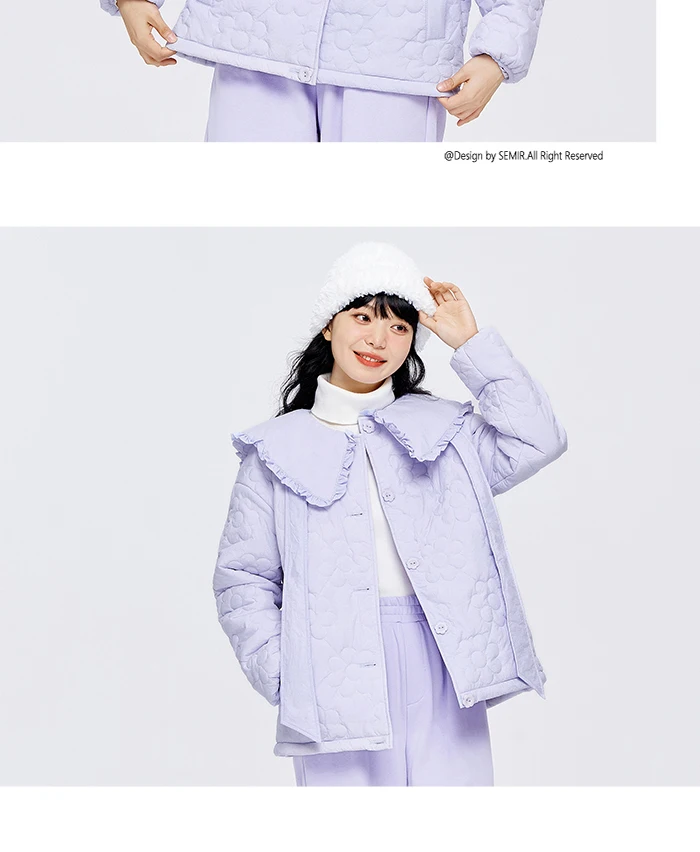 Semir Cotton Clothes Women Fungus Big Lapel Flowers 2023 Winter New Loose Jacket