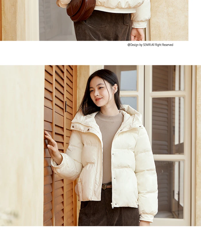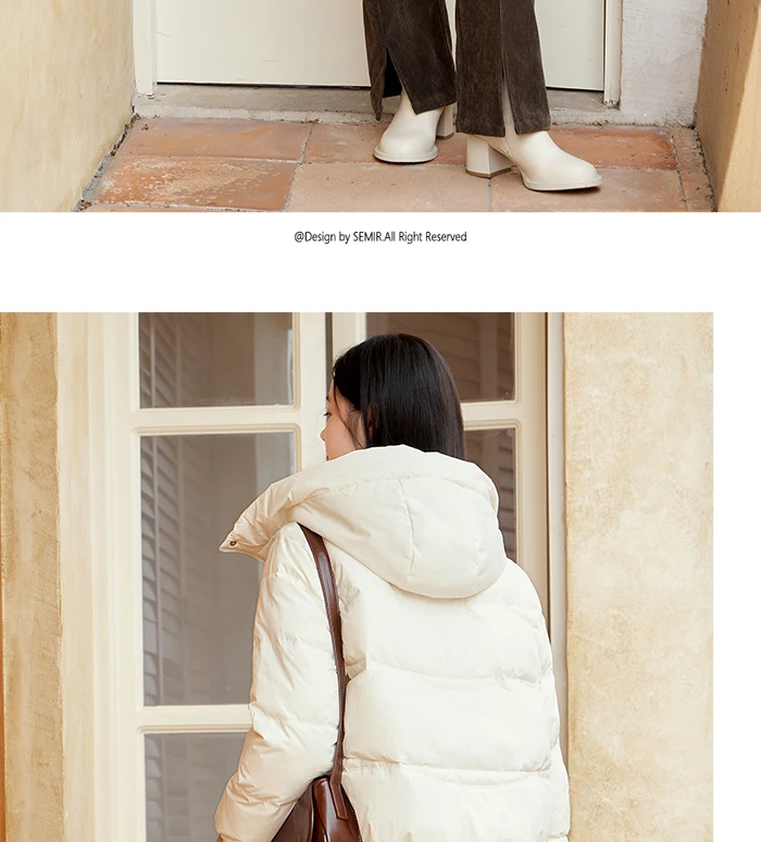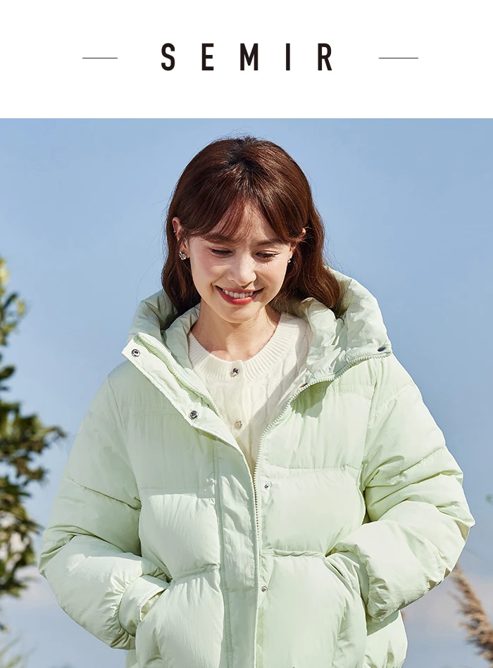 Semir Cotton Coat Women Three-Proof Hooded Bread Coat Gentle Sweet 2023 Winter New Loose Solid Color Versatile Thick Coat