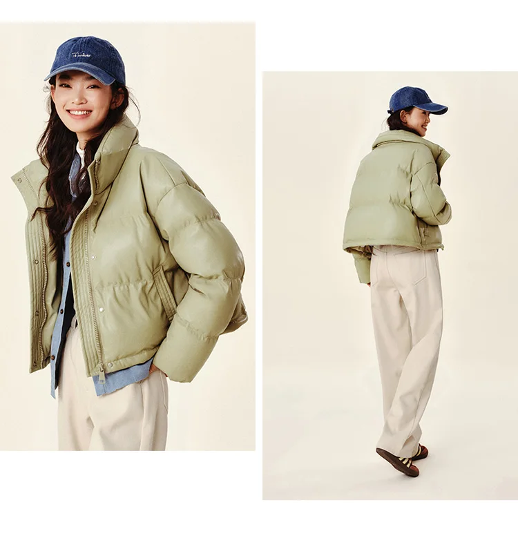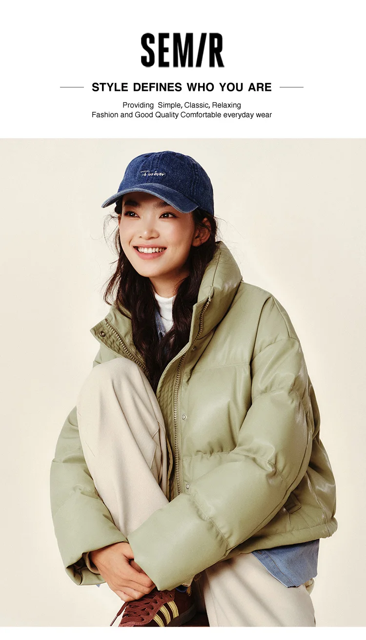 Semir Down Jacket Women Short Stand-Up Collar Petite Elegant Gentle 2024 New Winter Loose Imitation Leather Casual Down Jacket