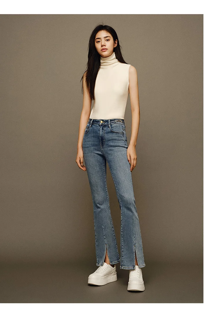 Semir Jeans Women Split Long Pants Fashion New Winter 2023 Flared Pants