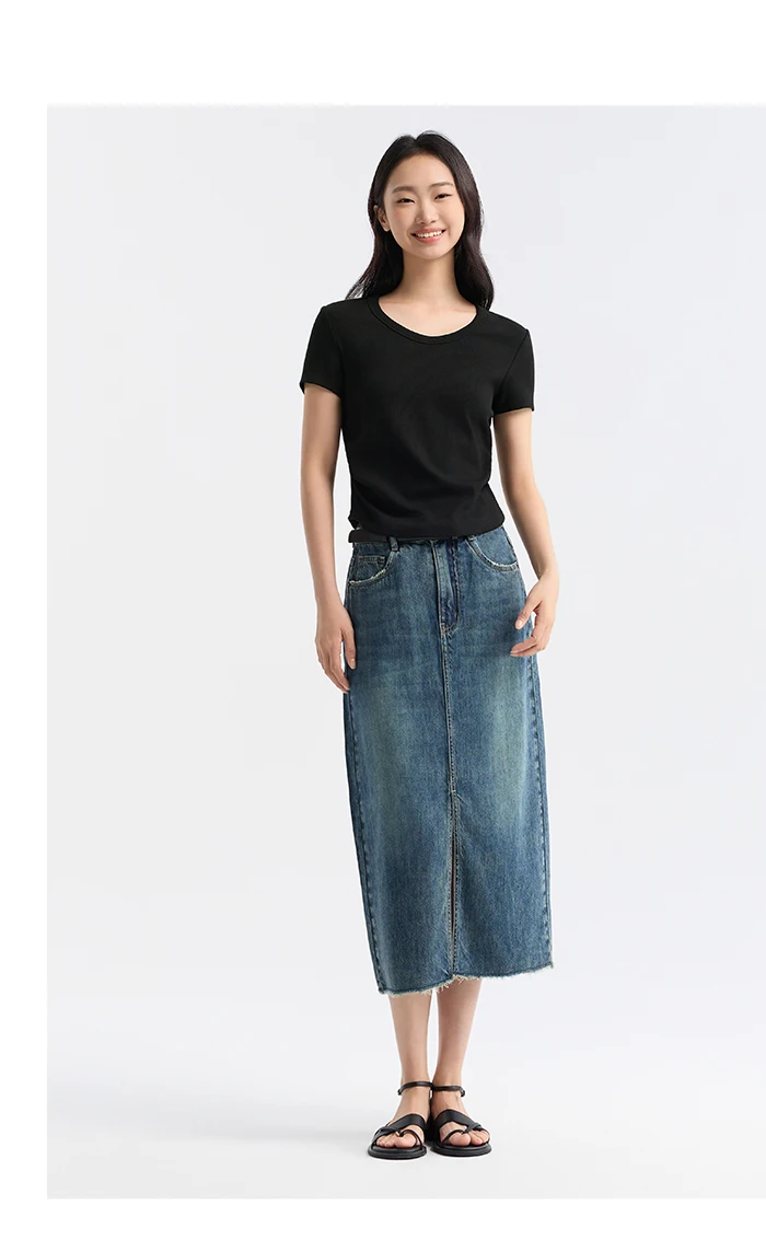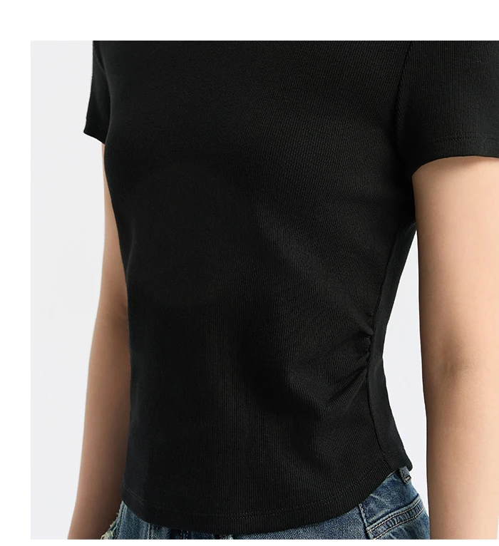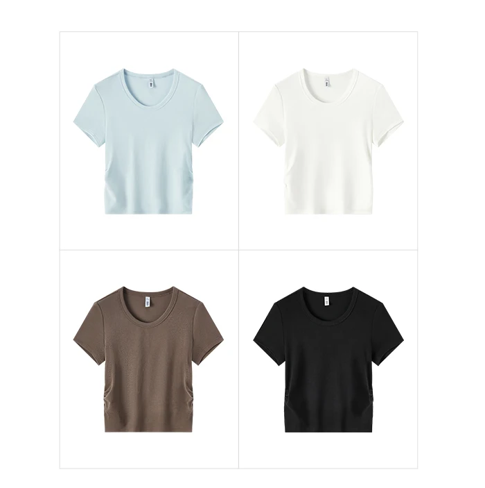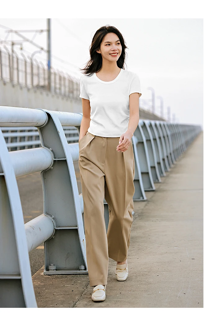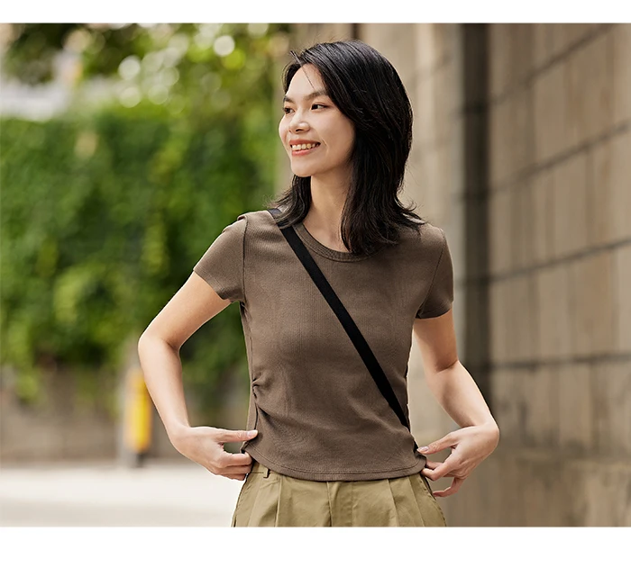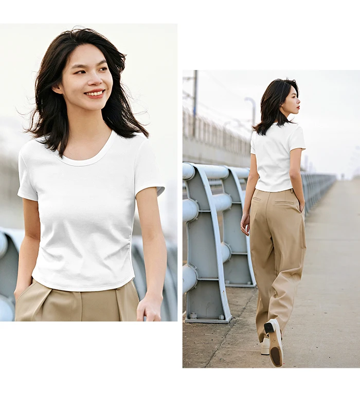 Semir Short Sleeve T-Shirt Women Short Careful Machine Solid Colour Tight 2024 New Summer Large Round Neck Positive Shoulder Pul