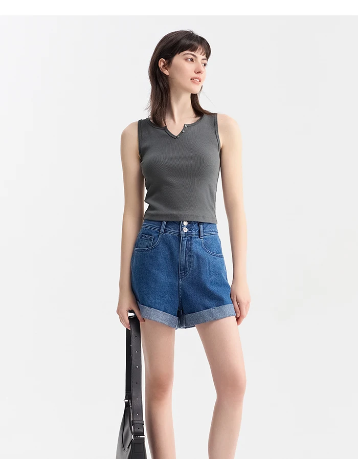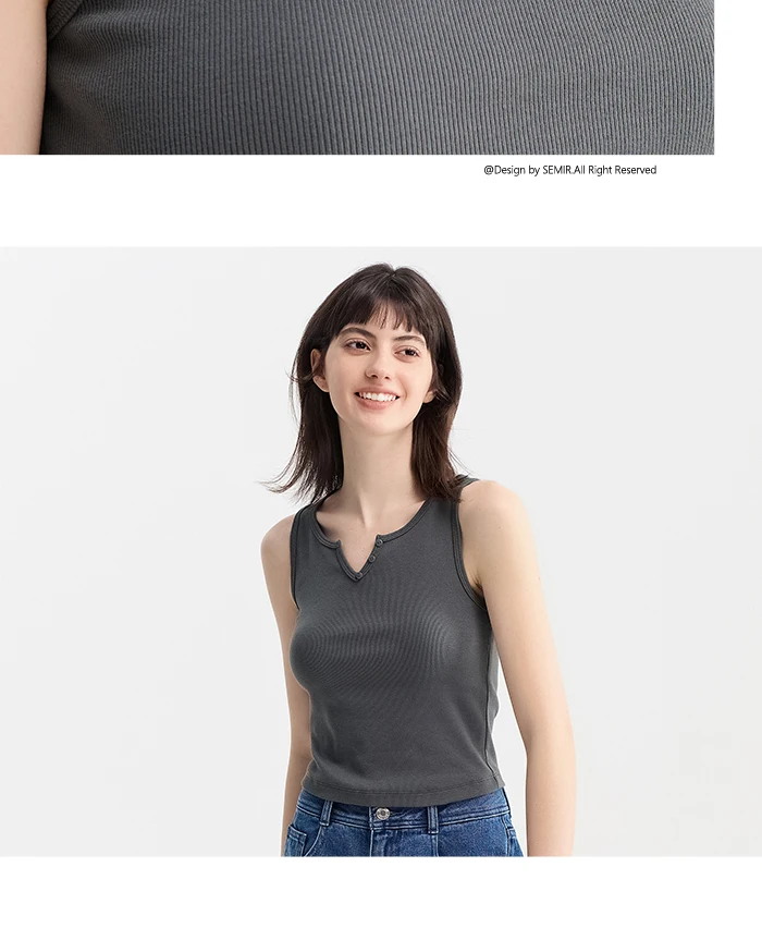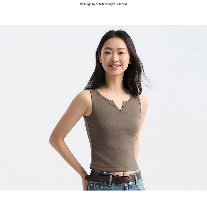 Semir Vest Female Short Knitted Inside Ride High Ladies 2024 Summer New Tight Solid-Coloured Blouse Hundred Temperament