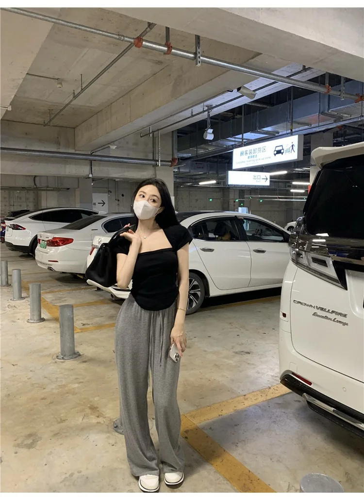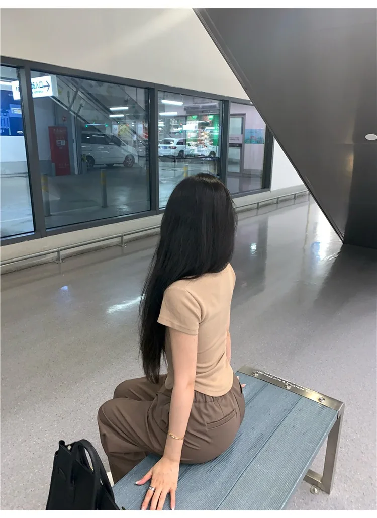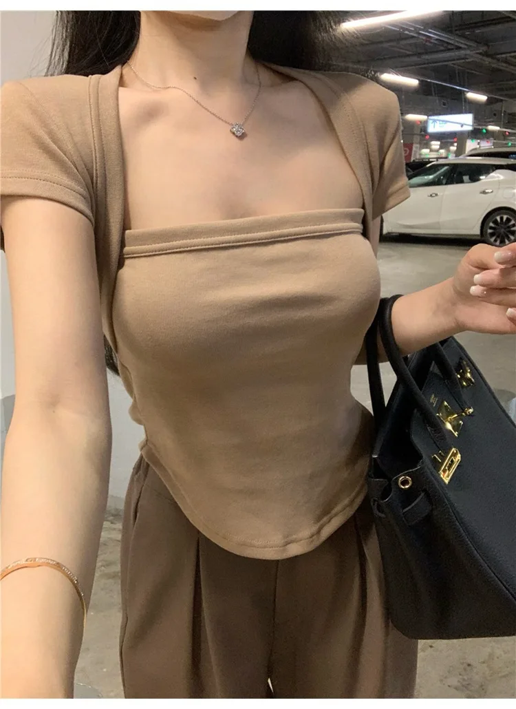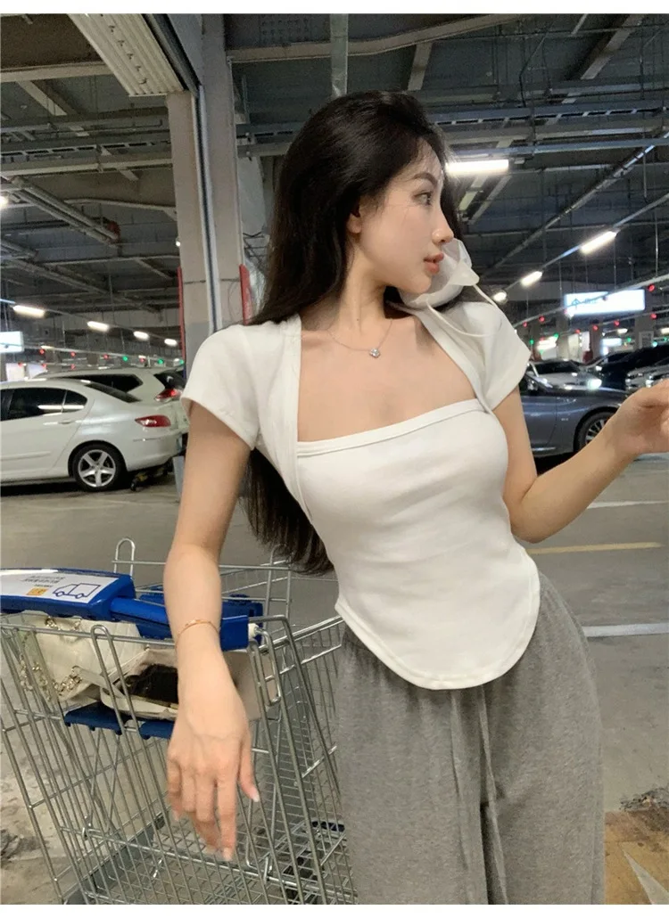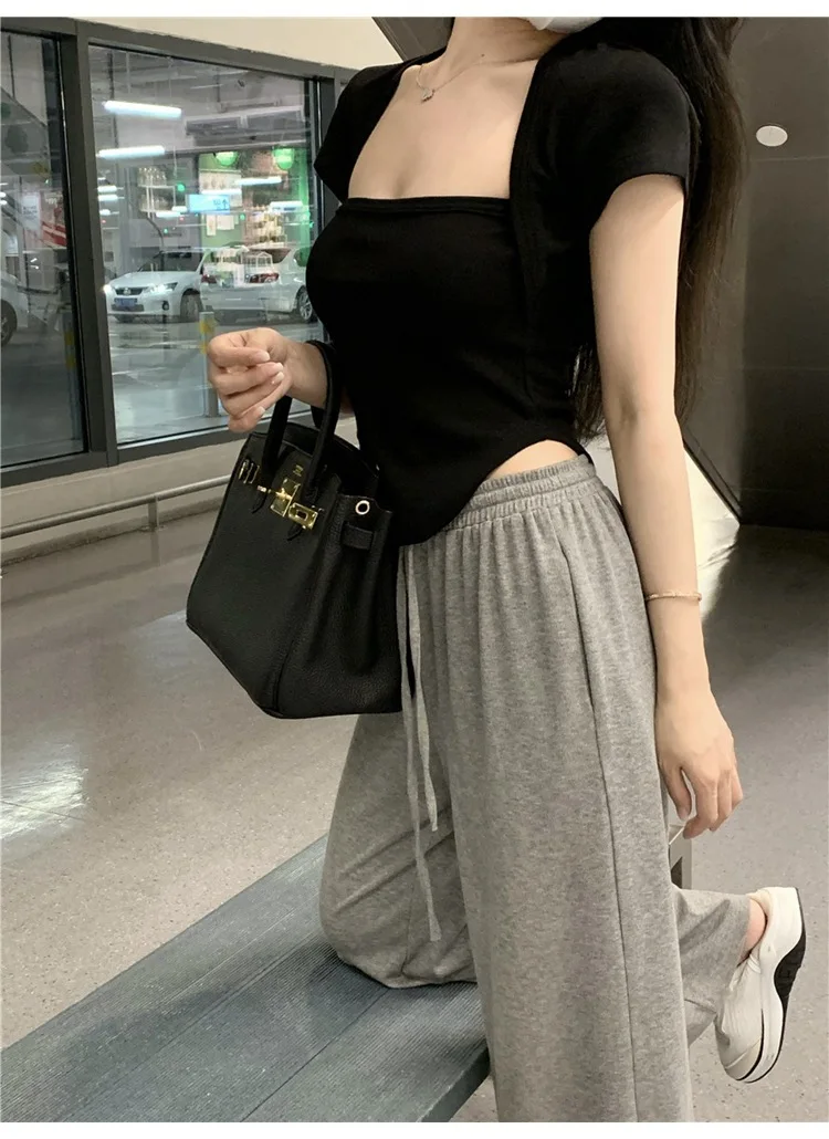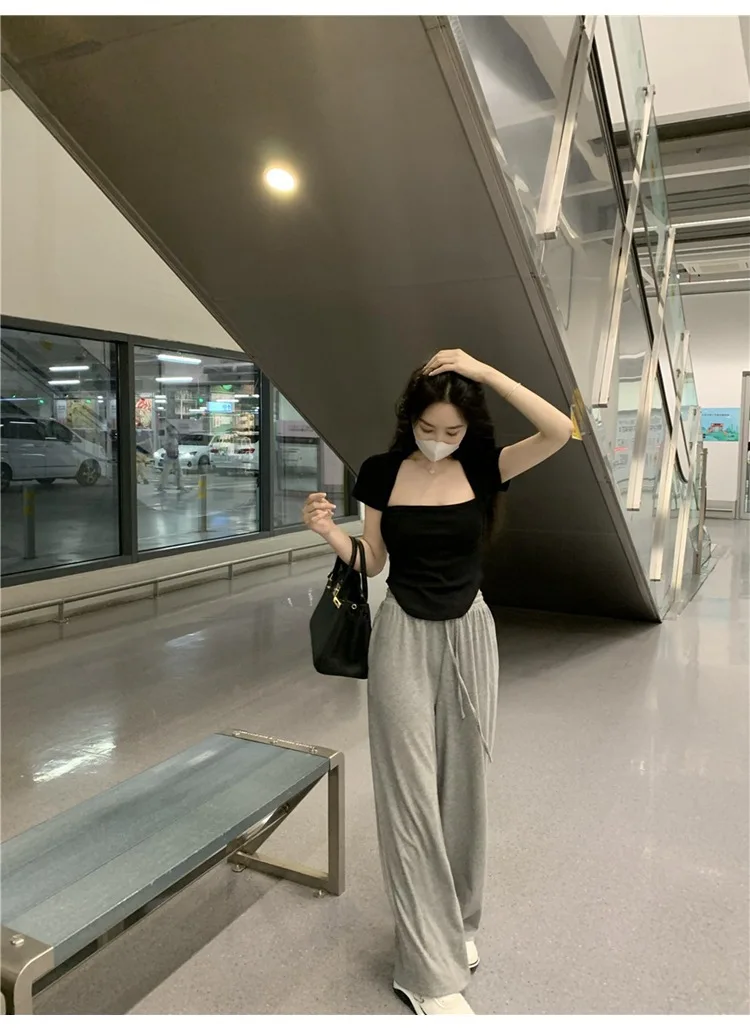 Sexy Square Neck Slim New Top Women 2024 Summer Fashion Short Sleeve Tee Korean Popular Trendy Crop Top Female