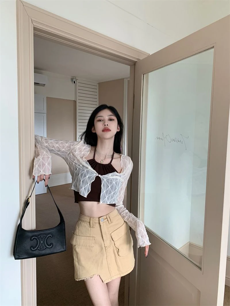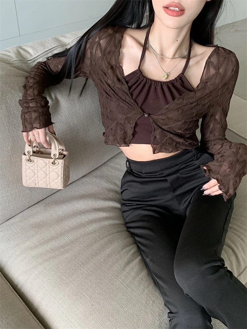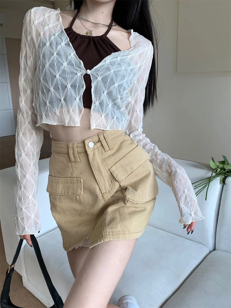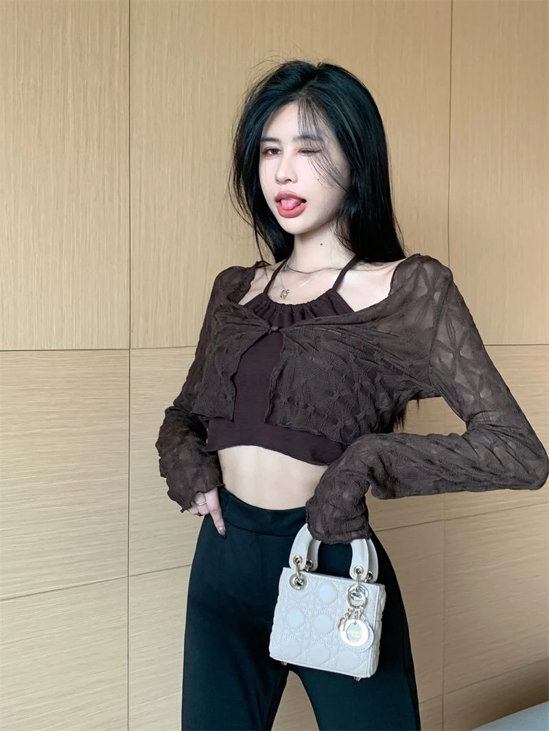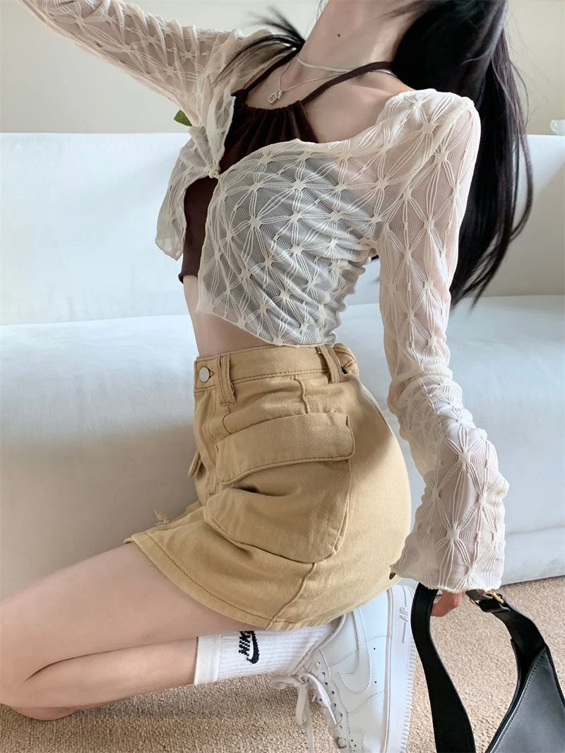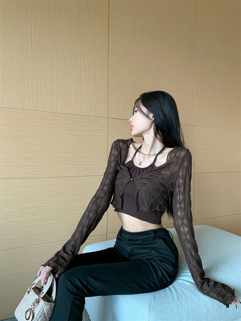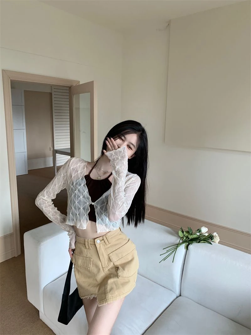 Sheer Shirt Women Solid Chic Slim Fit Sweet Lace Thin Blouse Korean Fashion All Match Long Sleeve Tops Ladies Summer New