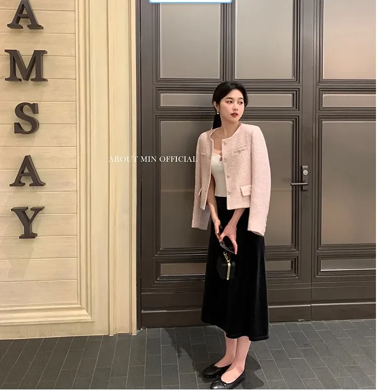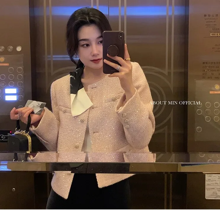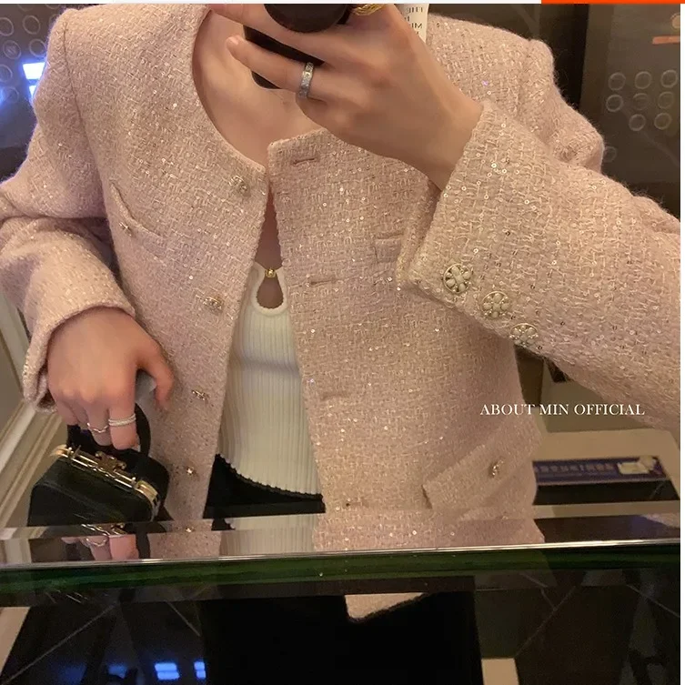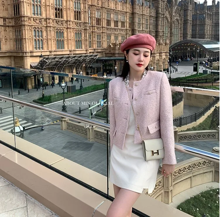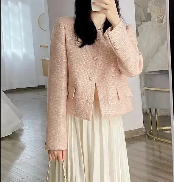 Small Fragrance Runway Fall Winter French Tweed Wool Sweet Pink Jackets Coat Women's Chic High End Female Outerwear Suit