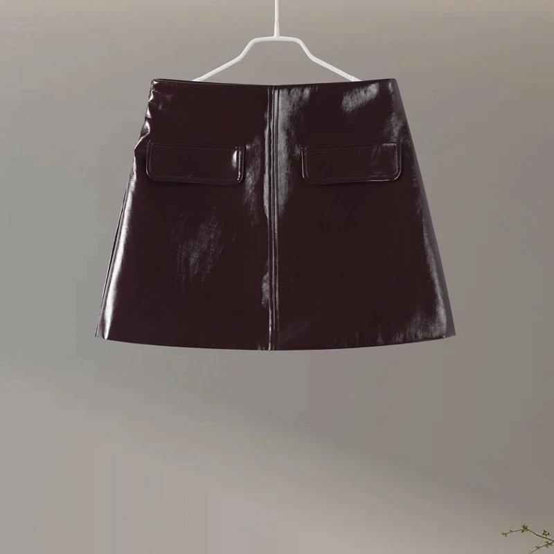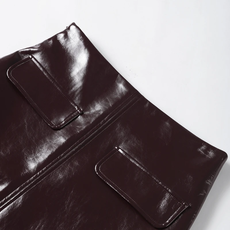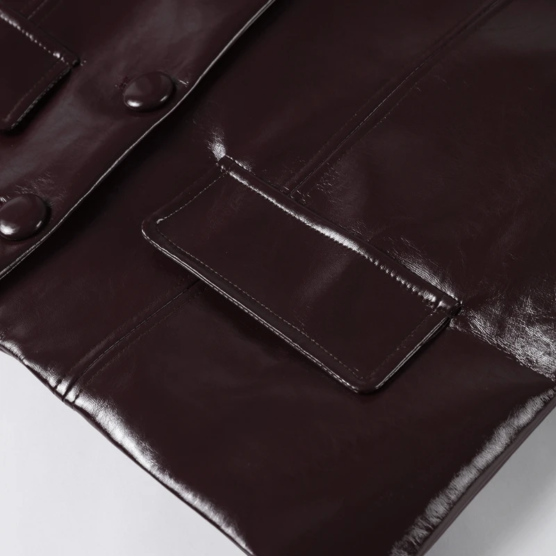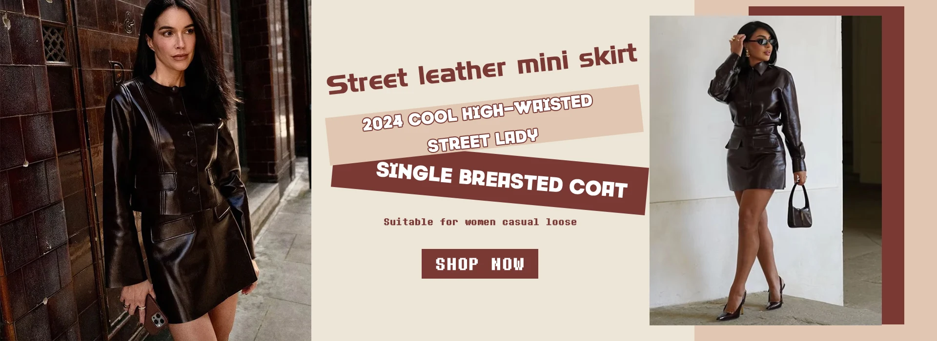 Street Leather Mini Skirts Suits Women Casual Loose Fashion Single Breasted Coat Female 2024 Cool High Waist Streetwears Lady
