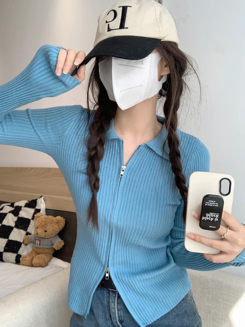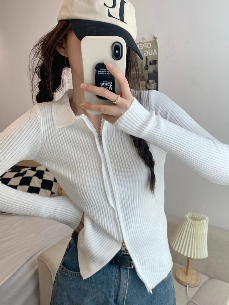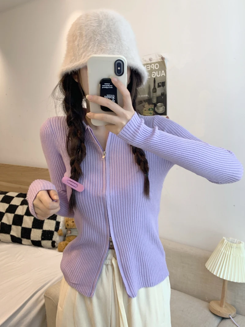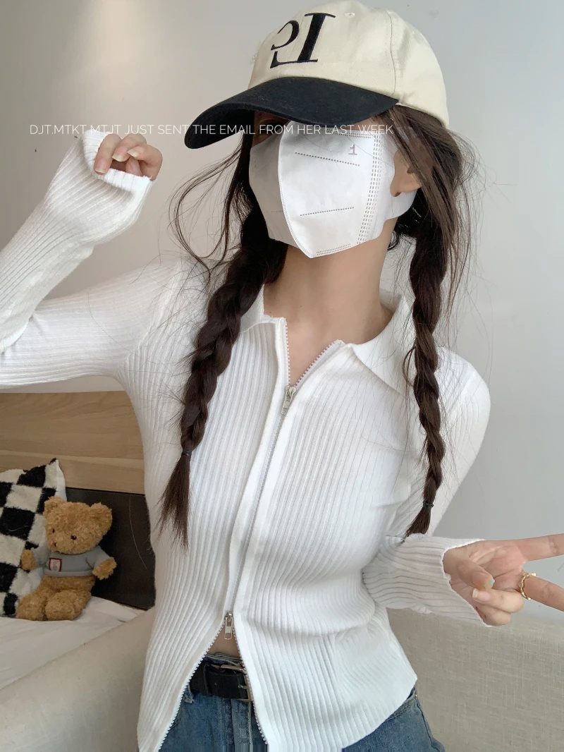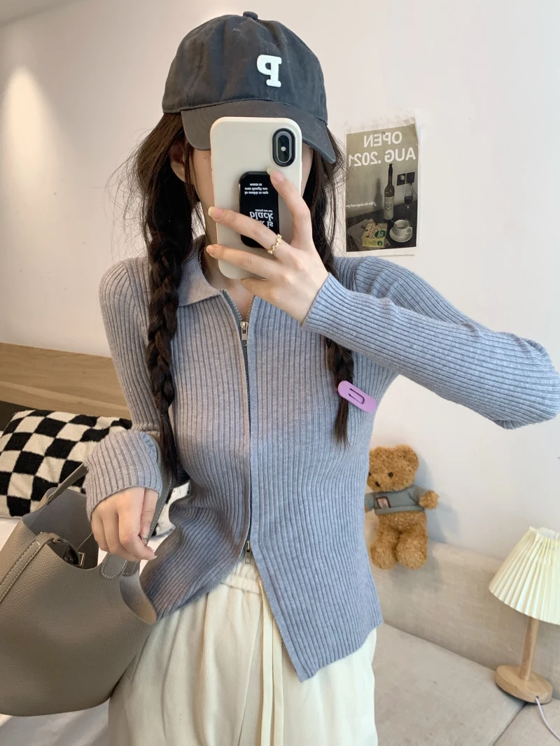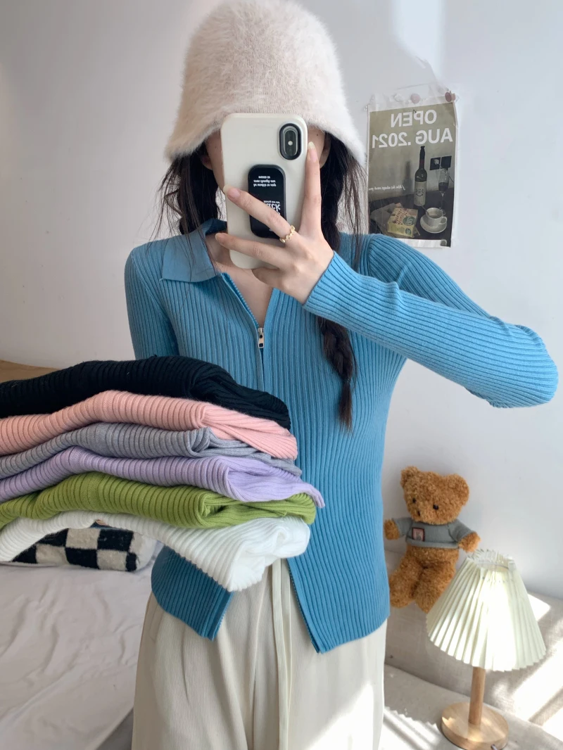 Sweater Cardigans Women Slim Y2k Hotsweat College Young Fashion 2022 Autumn New Design Zipper Cropped Girls Sexy Kpop Korean Ins