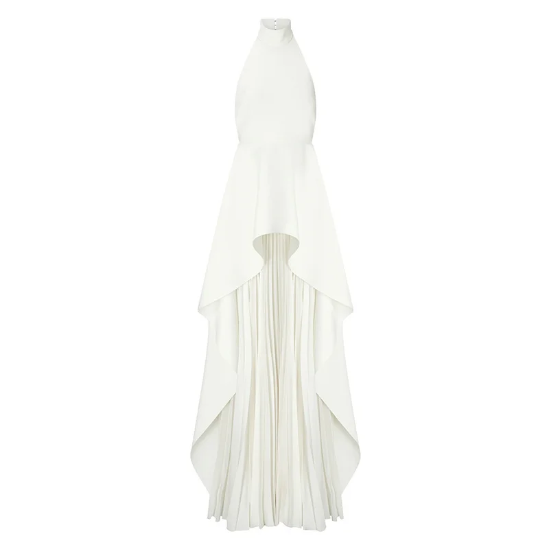 TWOTWINSTYLE Sexy Two Piece Set Women Halter Sleeveless Open Back Top High Waist Pleated Maxi Skirt Slim Women's Suit Summer New