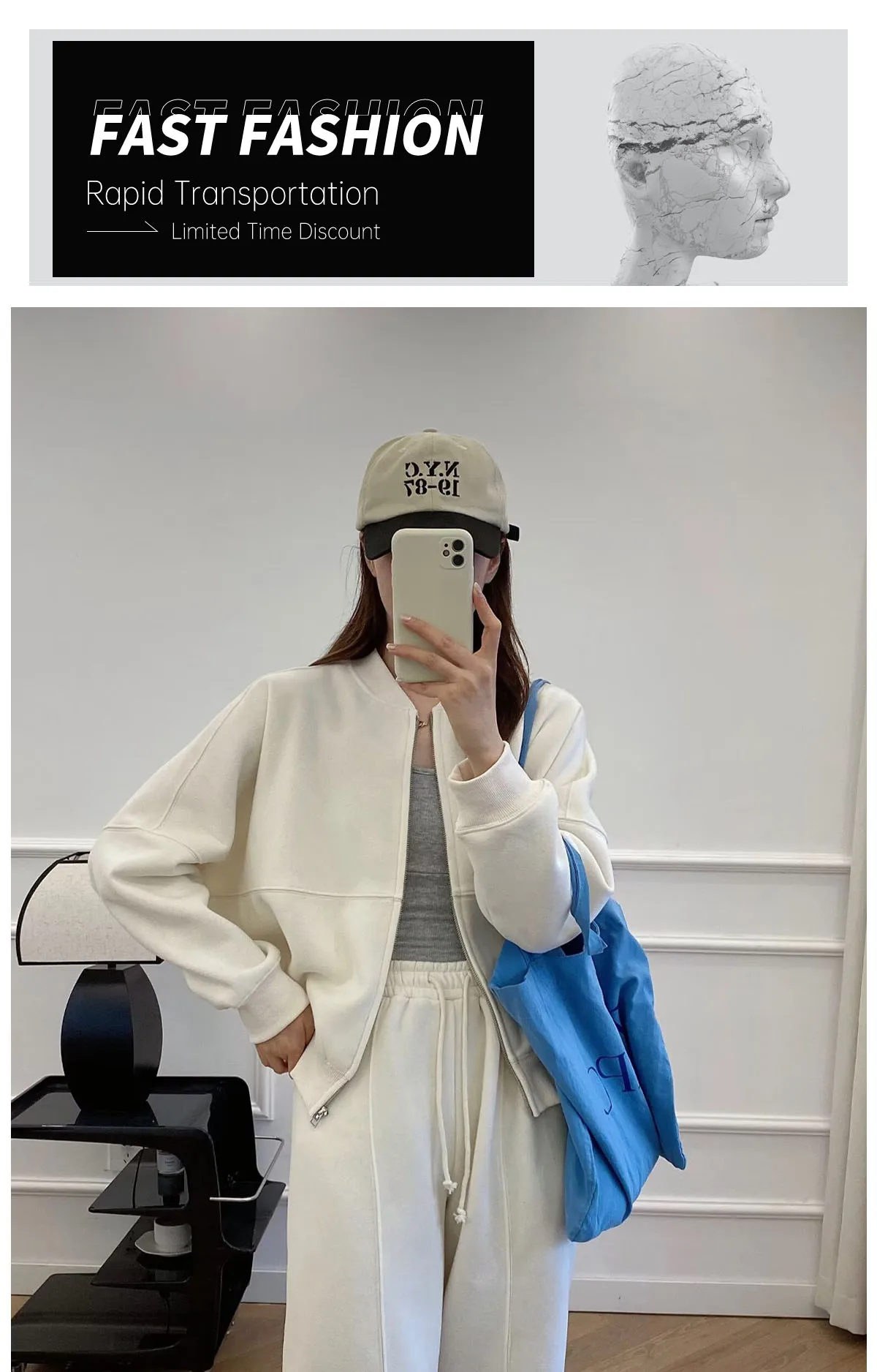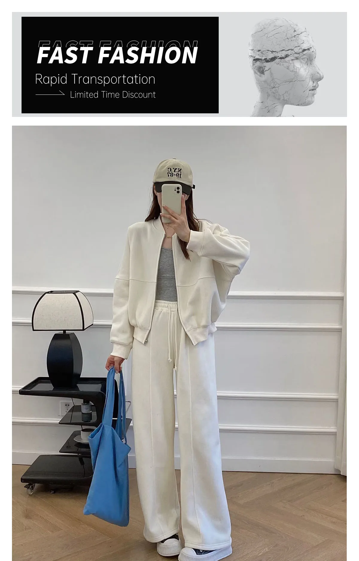 UNIZERA 2023 Winter New Product Women's Fashion and Casual Versatile Loose Zipper Jacket Coat Plush Slow Running Pants Set