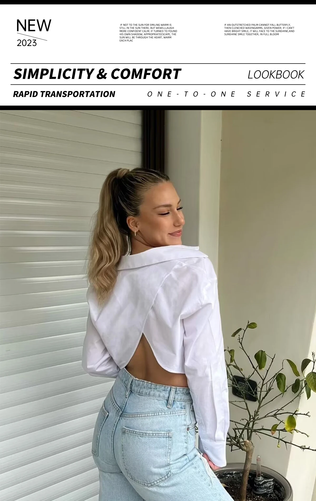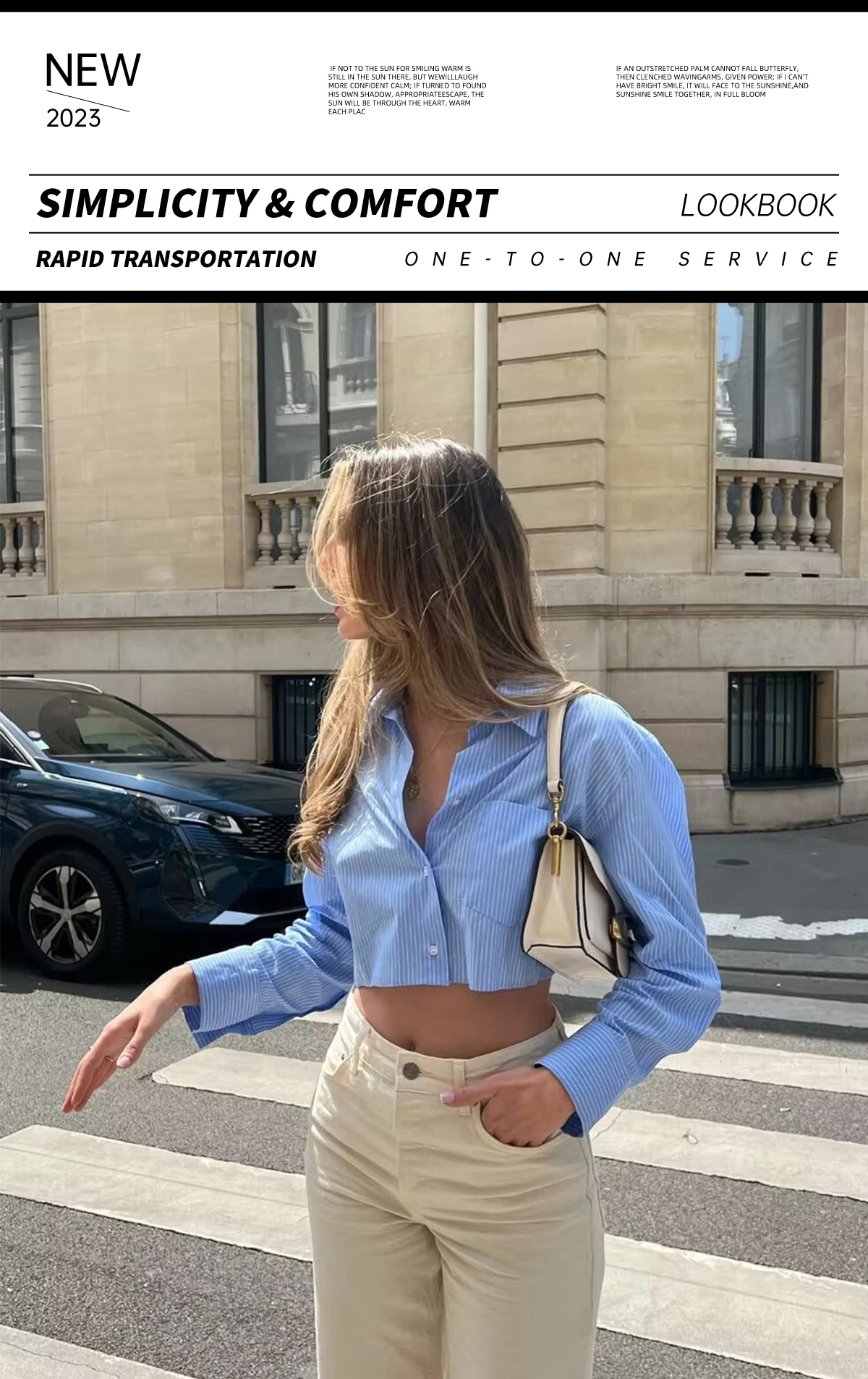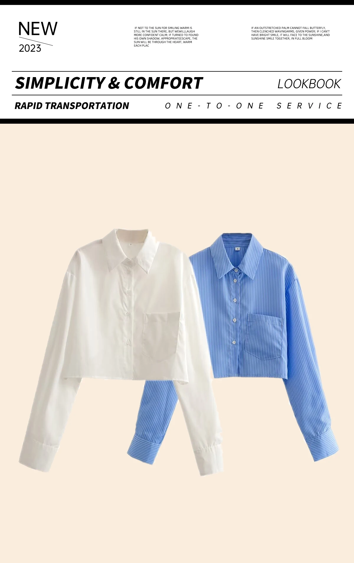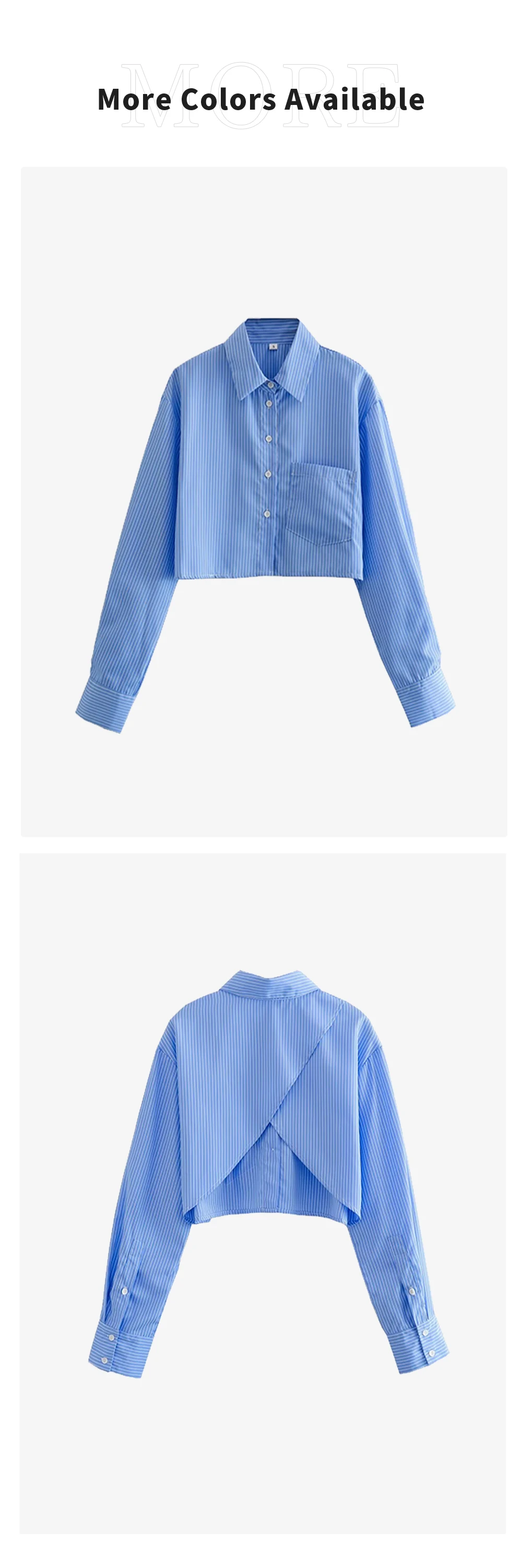 Kpop UNIZERA2024 Spring New Product Women's Versatile Slimming Back Split Open Open Open Back Lapel Long Sleeve Short Shirt