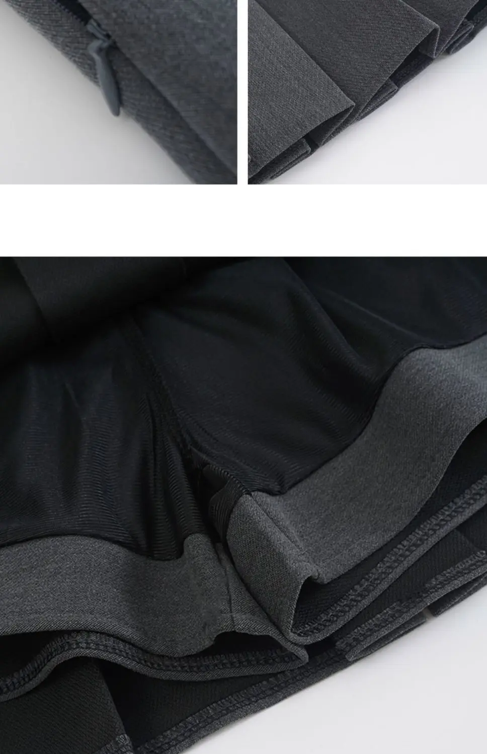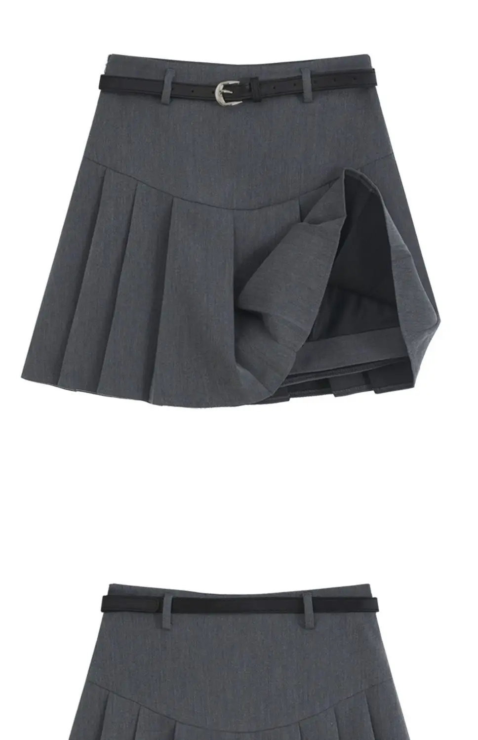 Yitimoky Chic Pleated Skirts for Women High Waisted Gray Black Fashion Solid Mini Skirts Spring Summer A Line Skirt with Belt