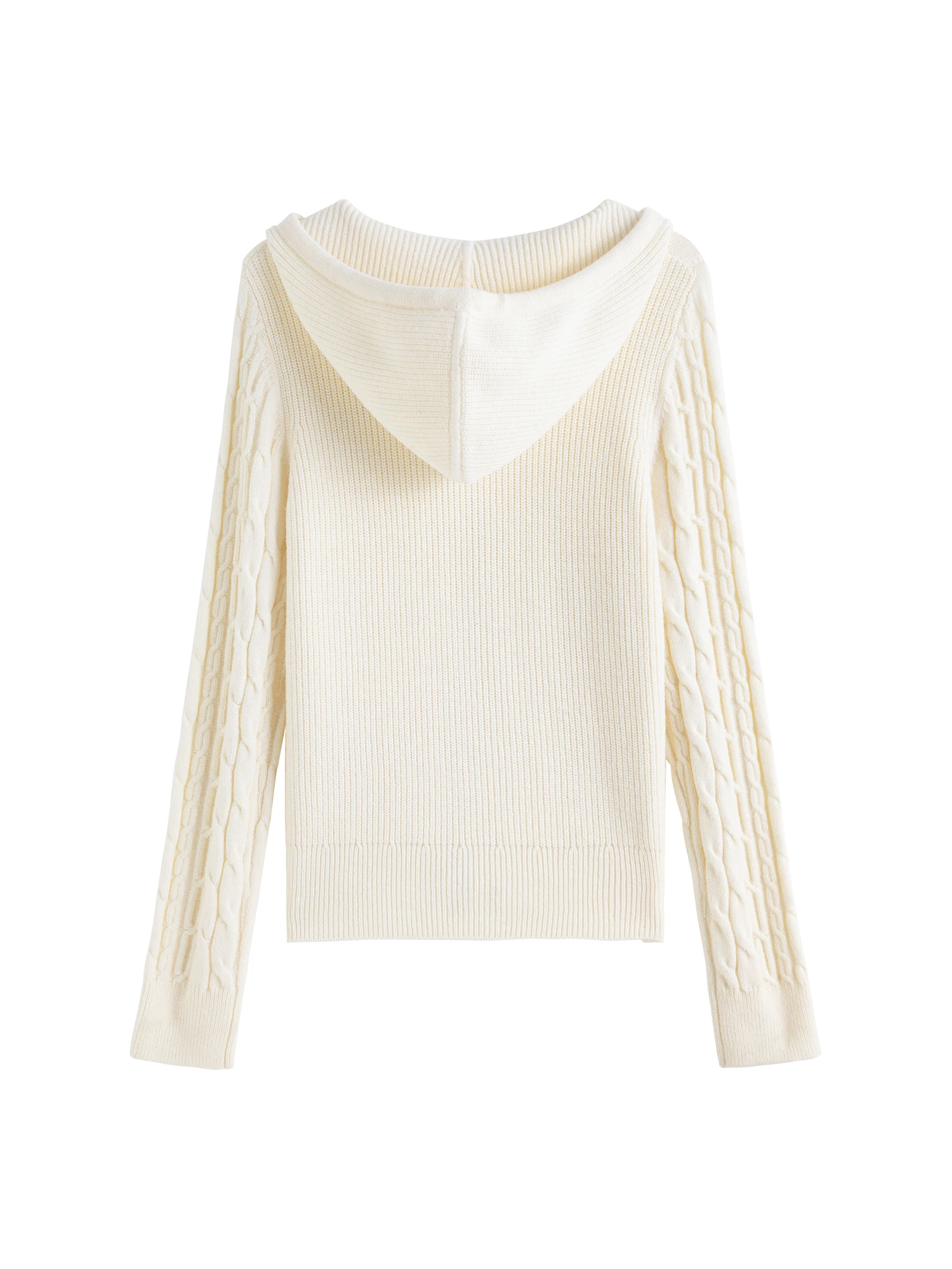 ZIQIAO 8.4% Wool Petite Size Beige Knit Cardigan Casual Coat For Women New 2024 AW Hooded White Warm Cozy Sweater Top 24ZQ94087